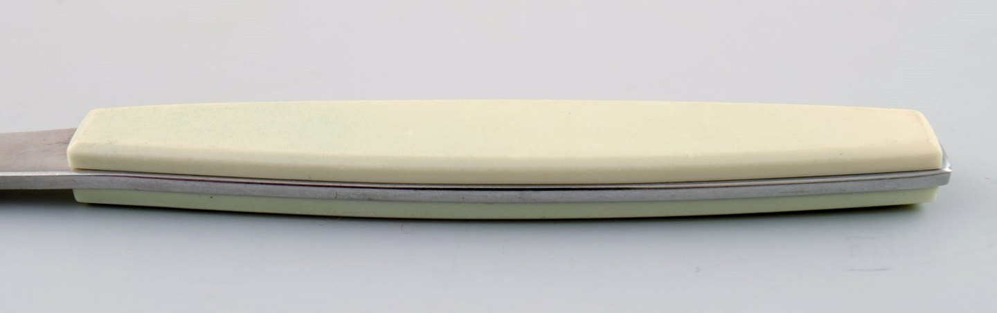 2 stk. Frokostkniv. Henning Koppel strata bestik af rustfrit stål og hvid plast. 2 stk. på lager. Fremstillet hos Georg Jensen. I flot stand. Dansk design 1970´erne. 18 cm. lange.