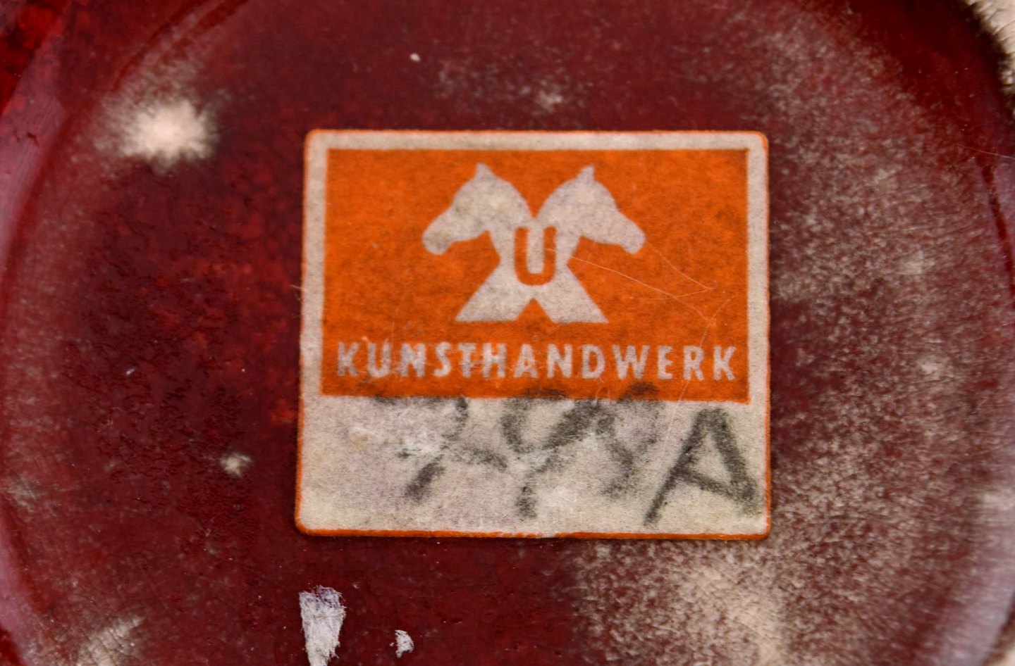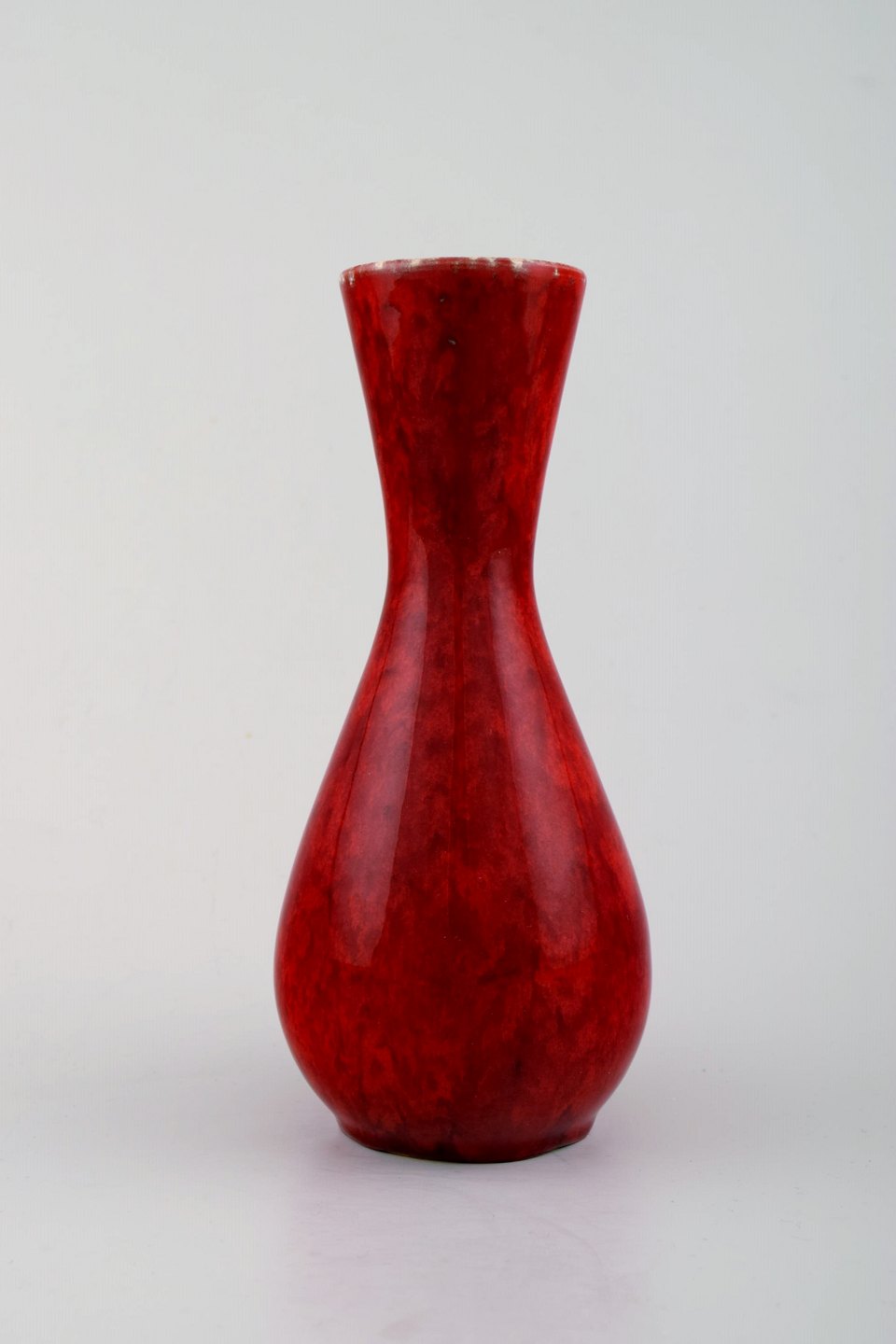 Richard Uhlemeyer, tysk keramiker. Keramikvase, smuk krakeleret glasur i røde nuancer. Tyskland, 1950´erne. Måler 21 cm. x 9 cm. I perfekt stand. Stemplet.