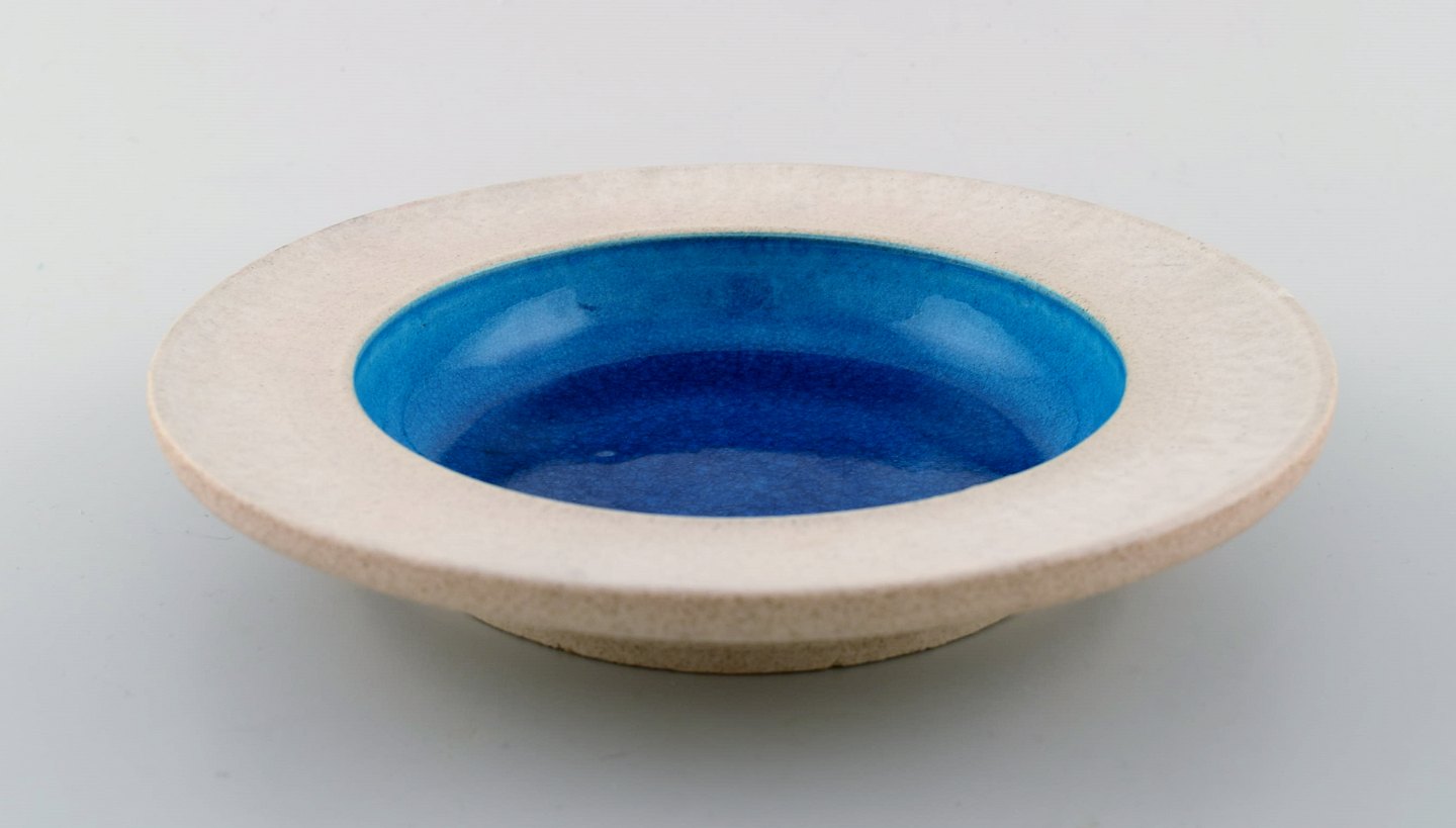Kähler, HAK, glaseret stentøjs fad, 1960'erne. Designet af Nils Kähler. Turkis glasur. 20 cm. i diameter. 3,5 cm. højt. Stemplet. I perfekt stand.