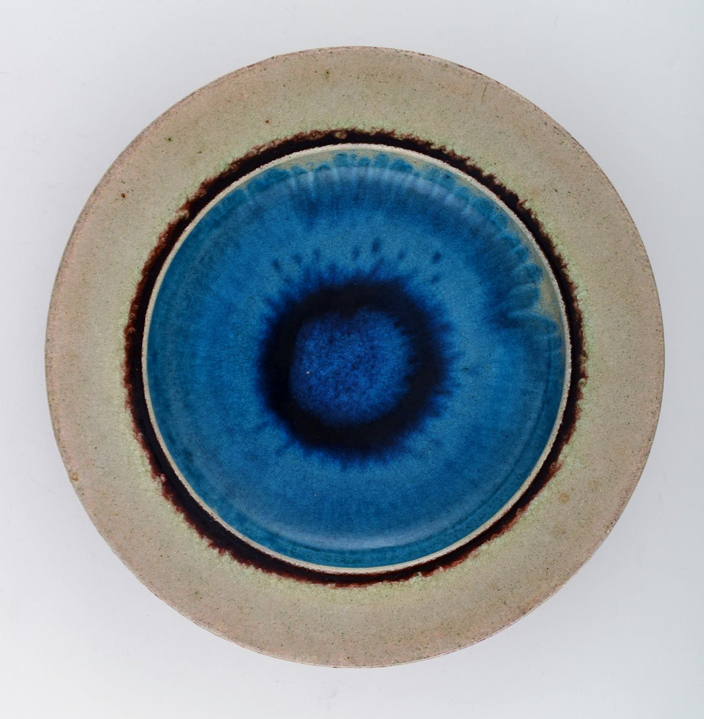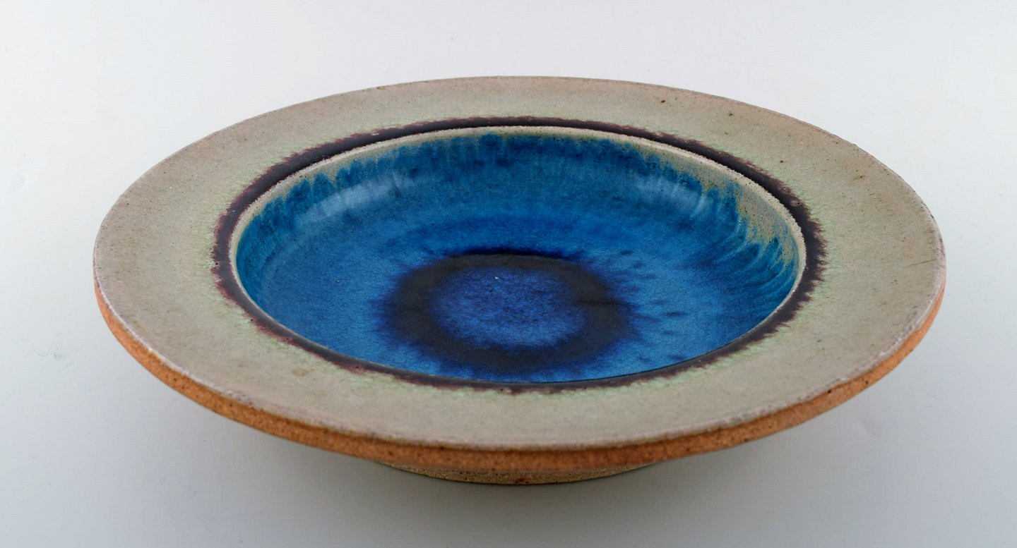 Kähler, HAK, glaseret stentøjsfad, 1960'erne. Designet af Nils Kähler. Turkis glasur. 31 cm. i diameter. 5,5 cm. højt. Stemplet. I perfekt stand.