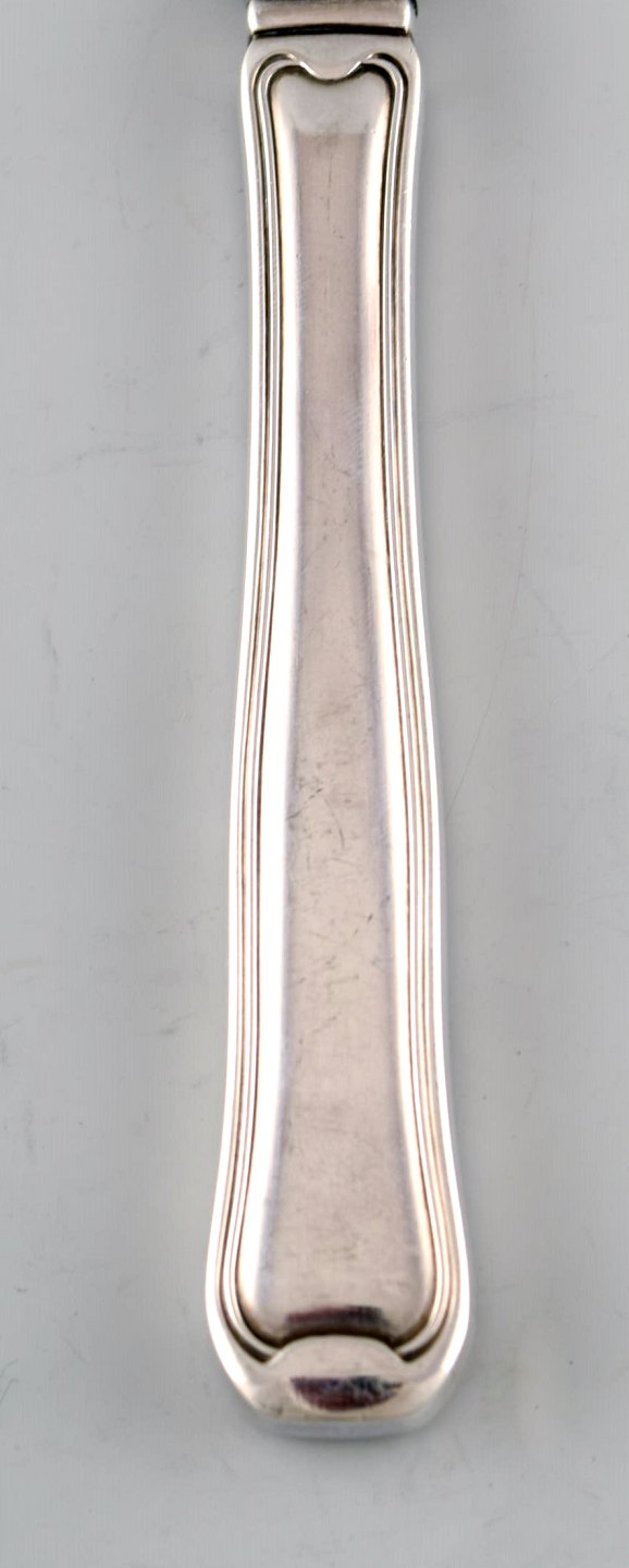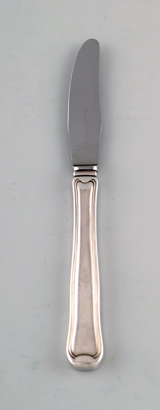 Georg Jensen dobbeltriflet frokostkniv. 10 stk. på lager. Stemplet Georg Jensen efter 1945 sterling Danmark. I flot stand. Måler 19,5 cm.