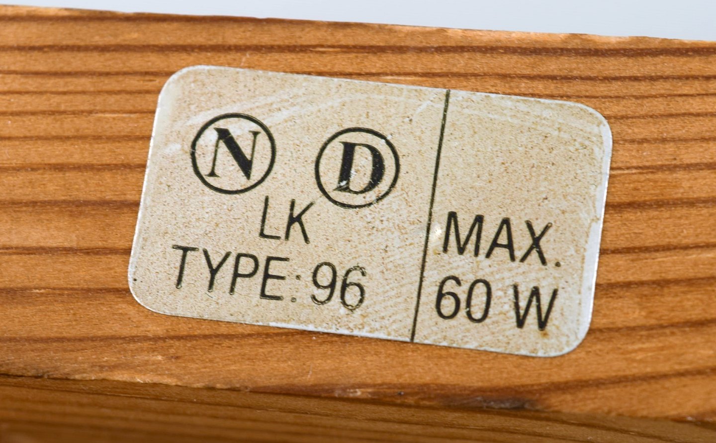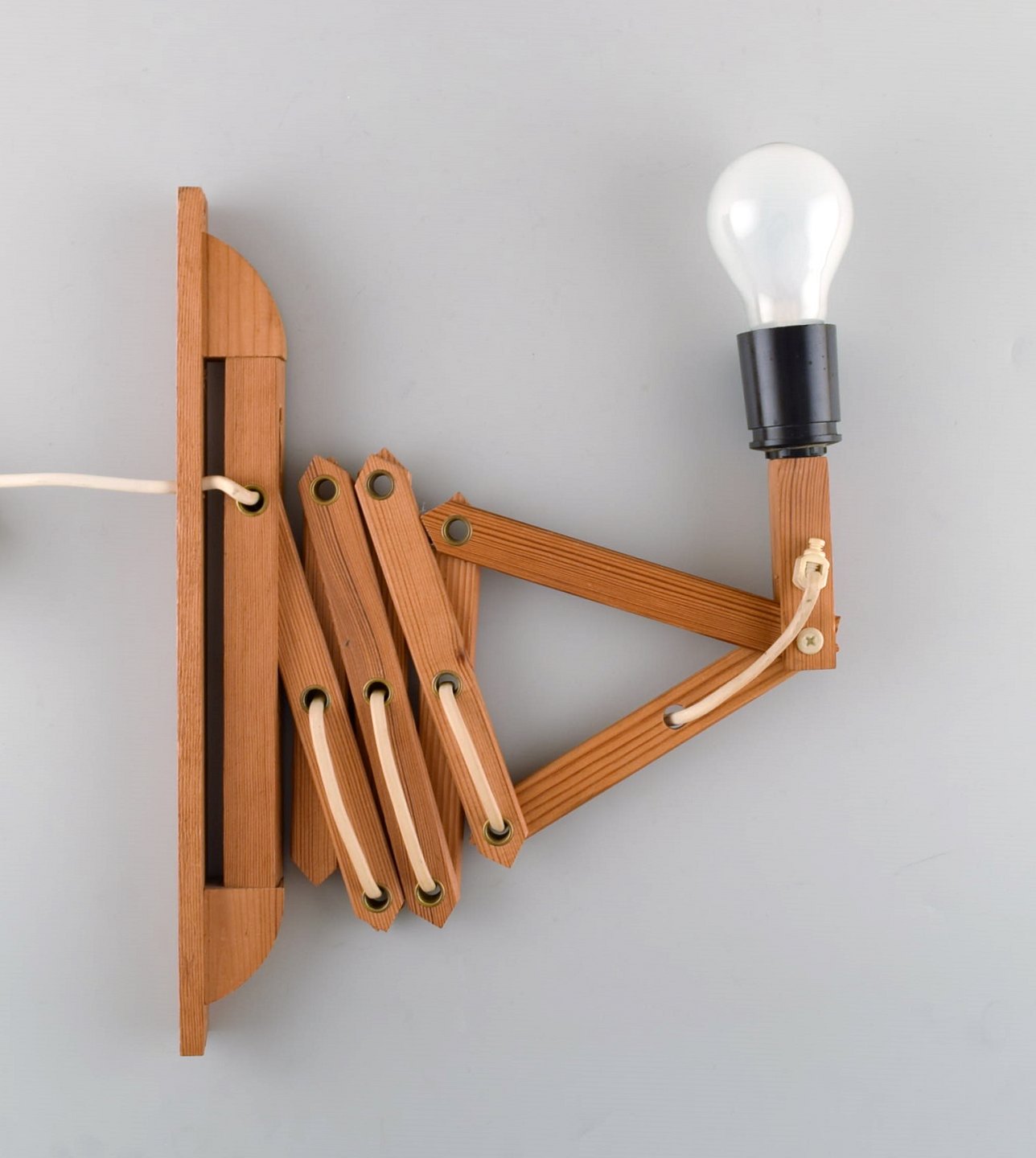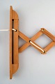 Erik Hansen for Le Klint. Opadvendt sakselampe i lys eg. Højde 35 cm. Total længde 67 cm. I flot stand.