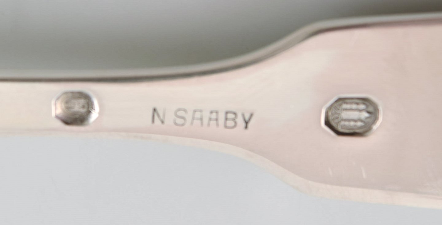 2 stk. Musling tretårnet dansk serveringsske Måler 22,5 cm. I flot stand. Stemplet: SAABY