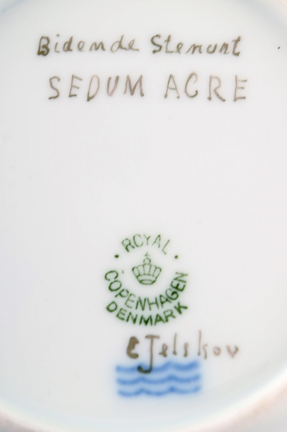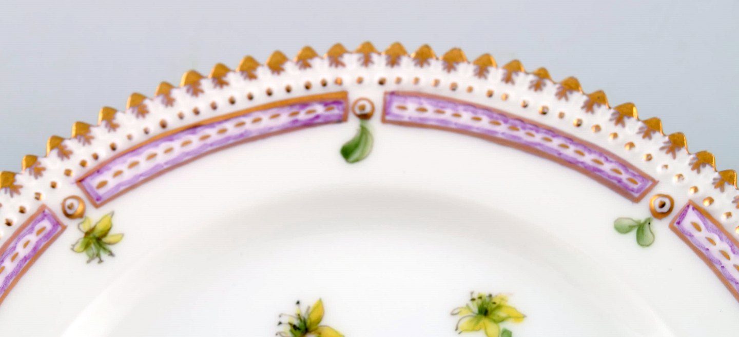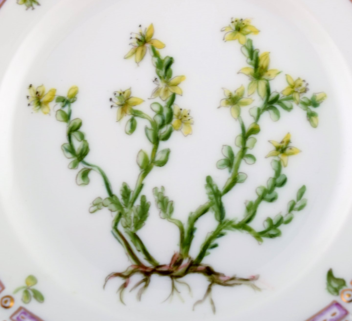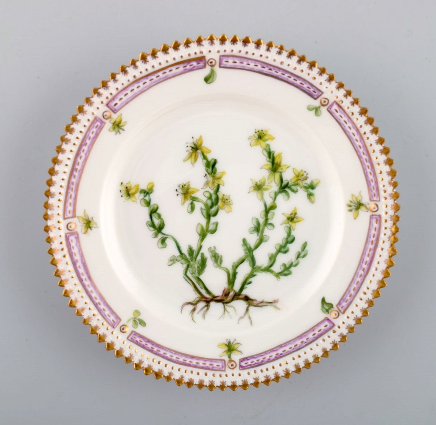 Royal Copenhagen. 'Flora Danica' kagetallerken af porcelæn, dekoreret med blomster i farver og guld.