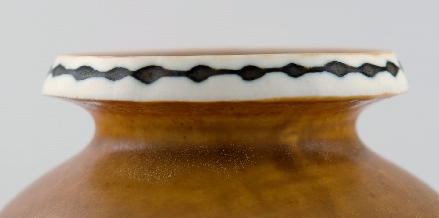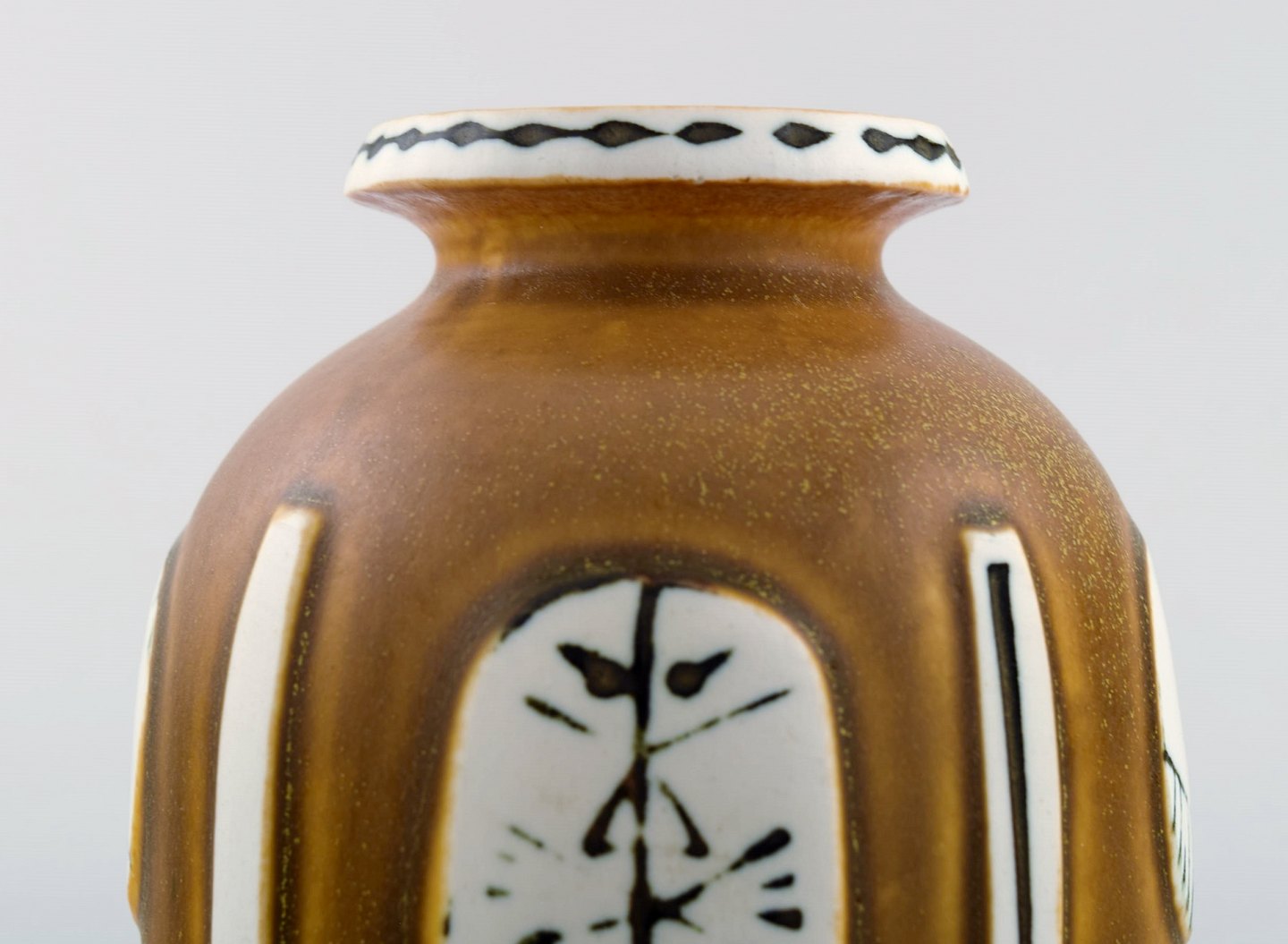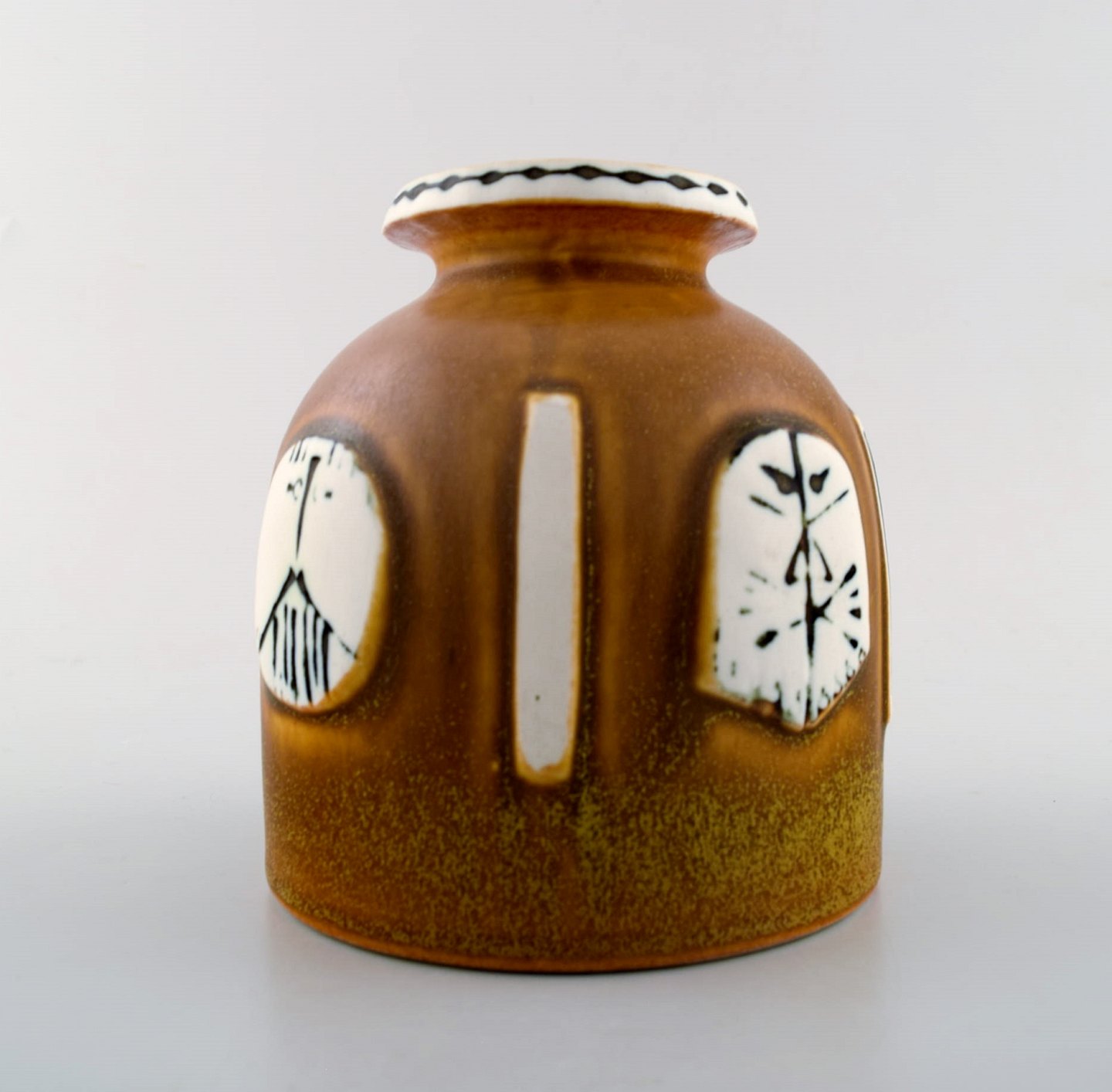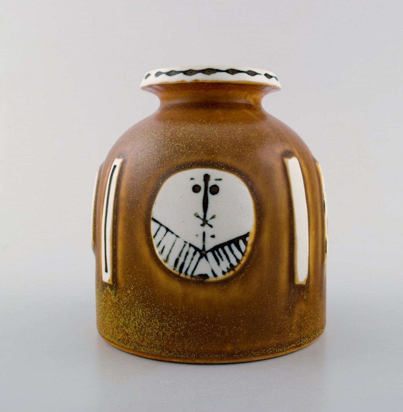 Lisa Larson for Gustavsberg, Sverige. Vase i keramik dekoreret med ansigter. Måler 11,5 x 10,5 cm. Stemplet. I perfekt stand.