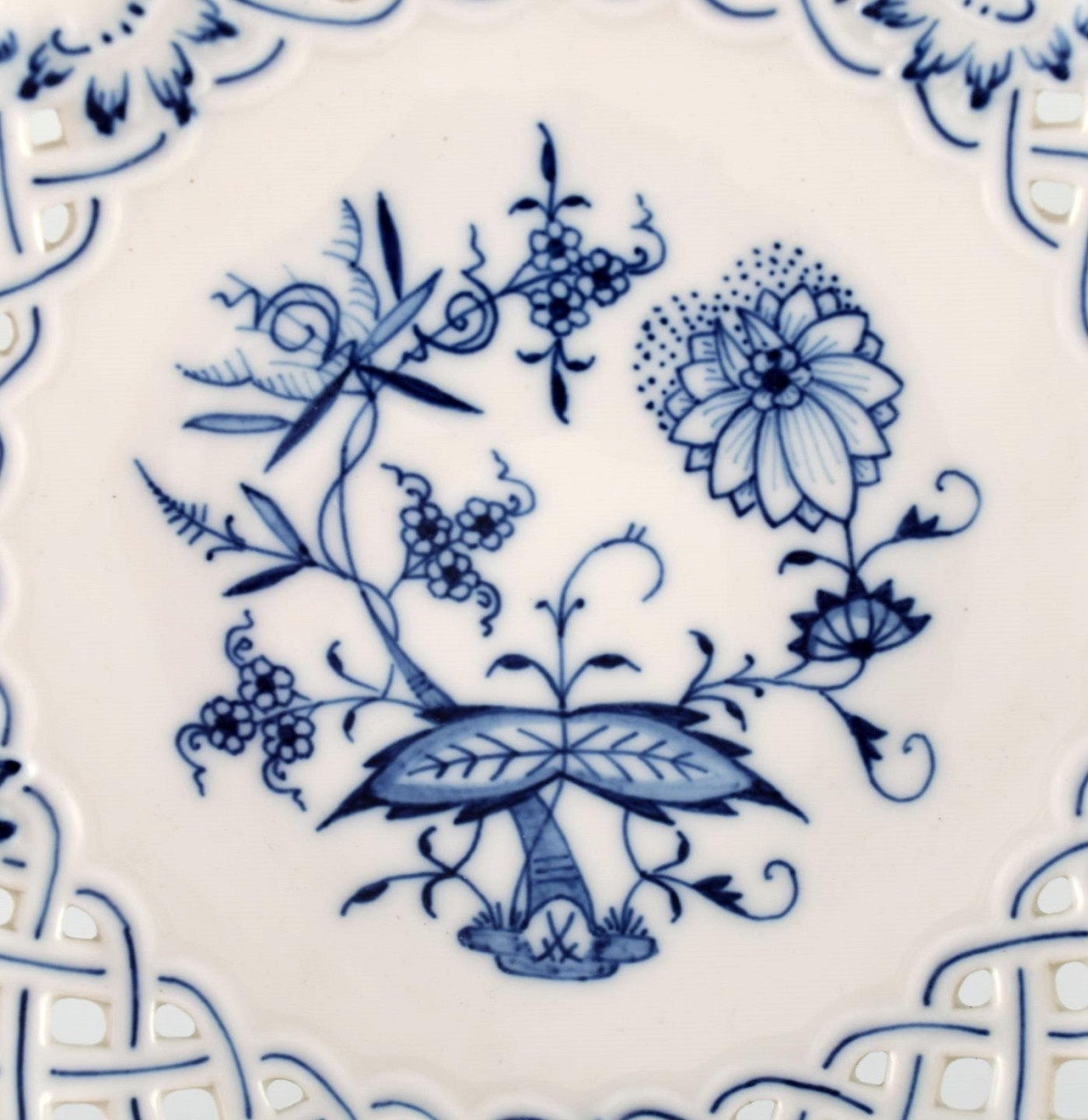 Meissen løgmønstret gennembrudt opsats, 1900-tallet. I perfekt stand. 1. Sortering. Måler : 19 cm. x 16 cm. Stemplet.