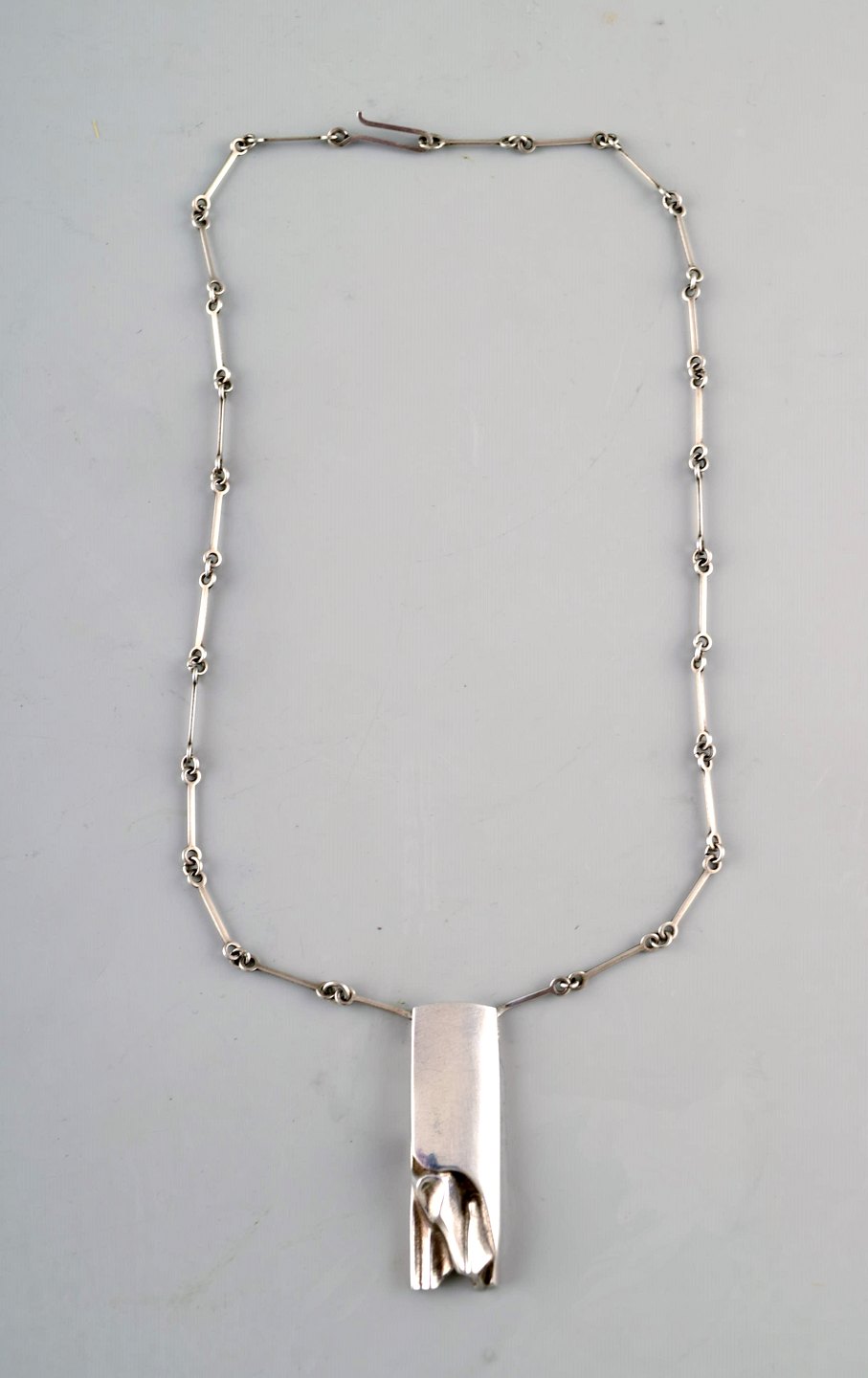 Lapponia. Halskæde med vedhæng af sterlingsølv, organisk form. 1984. Måler: Kæde: 41 cm. Vedhæng: 4,2 cm x 1,4 cm. Stemplet: Lapponia, 925, G8: 1984. I flot stand.