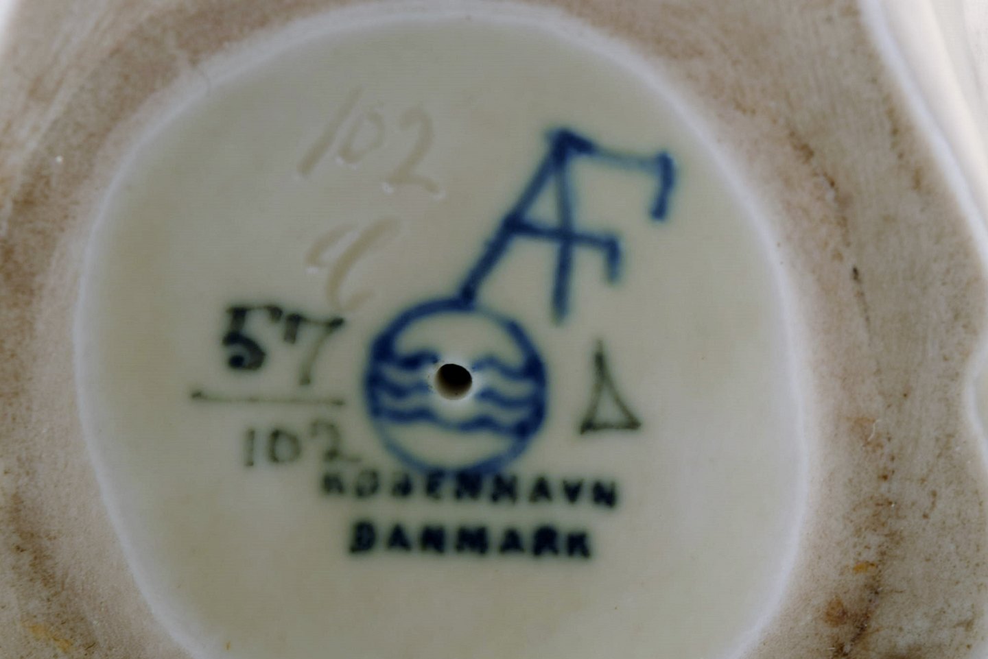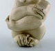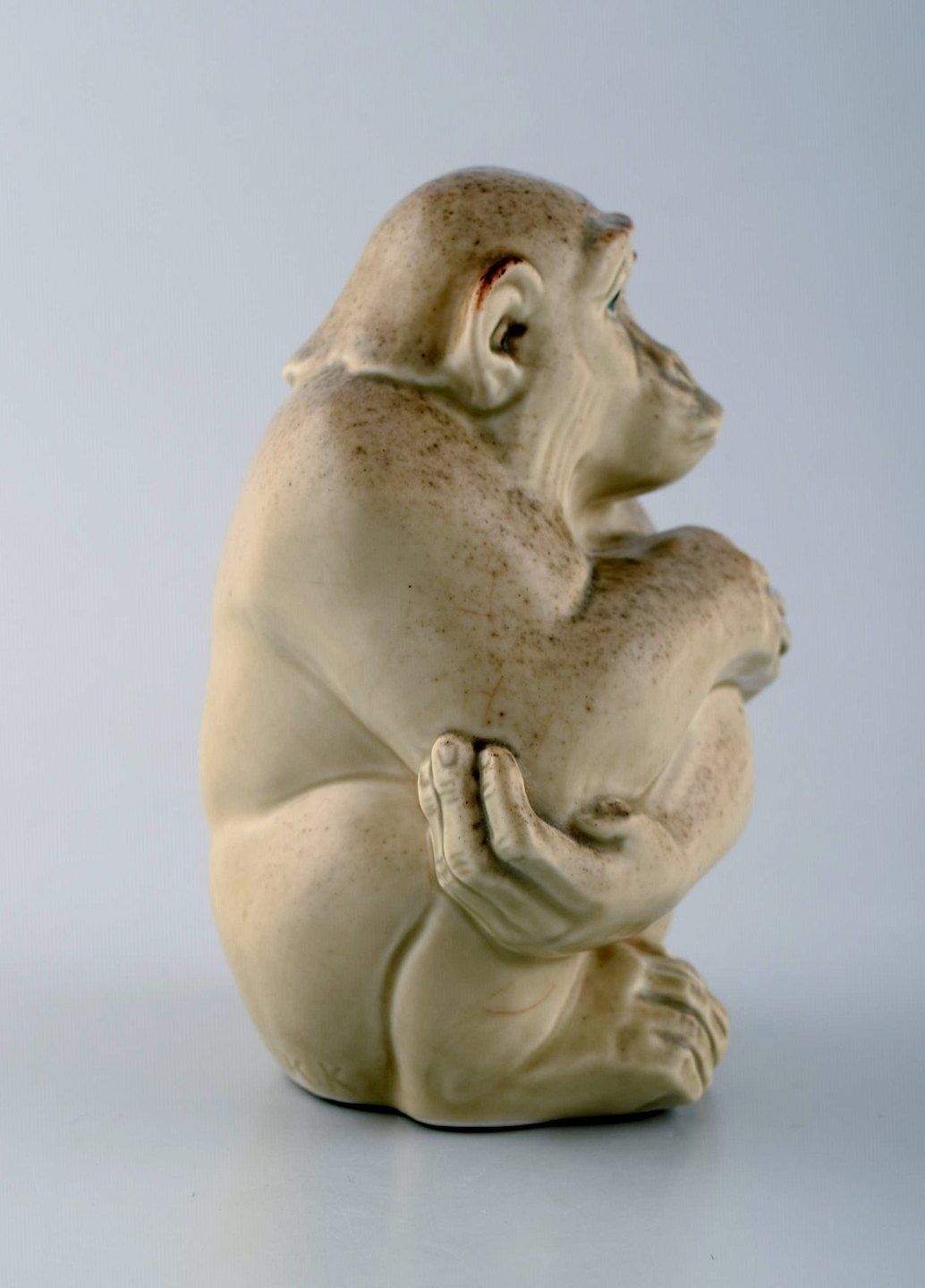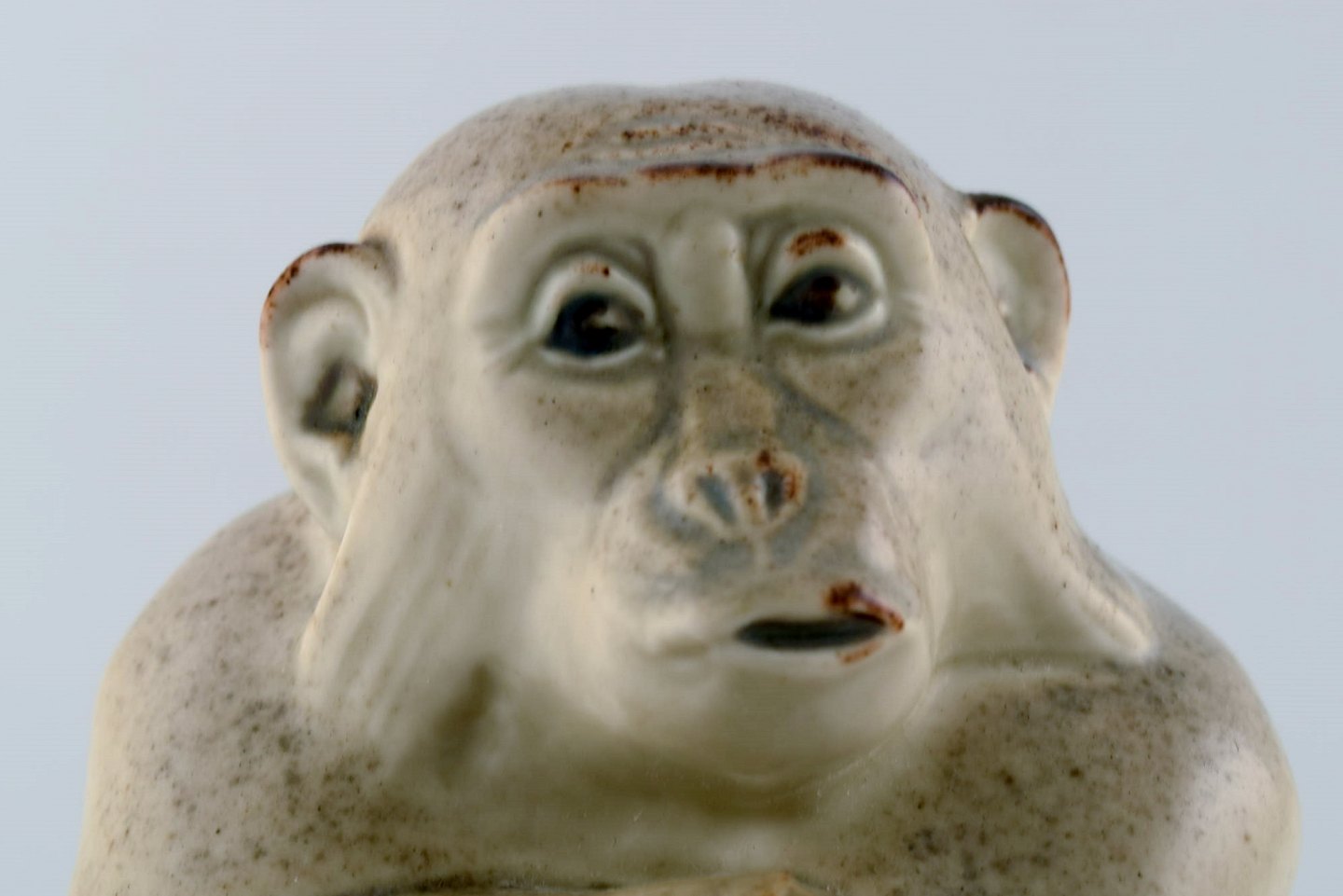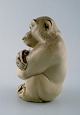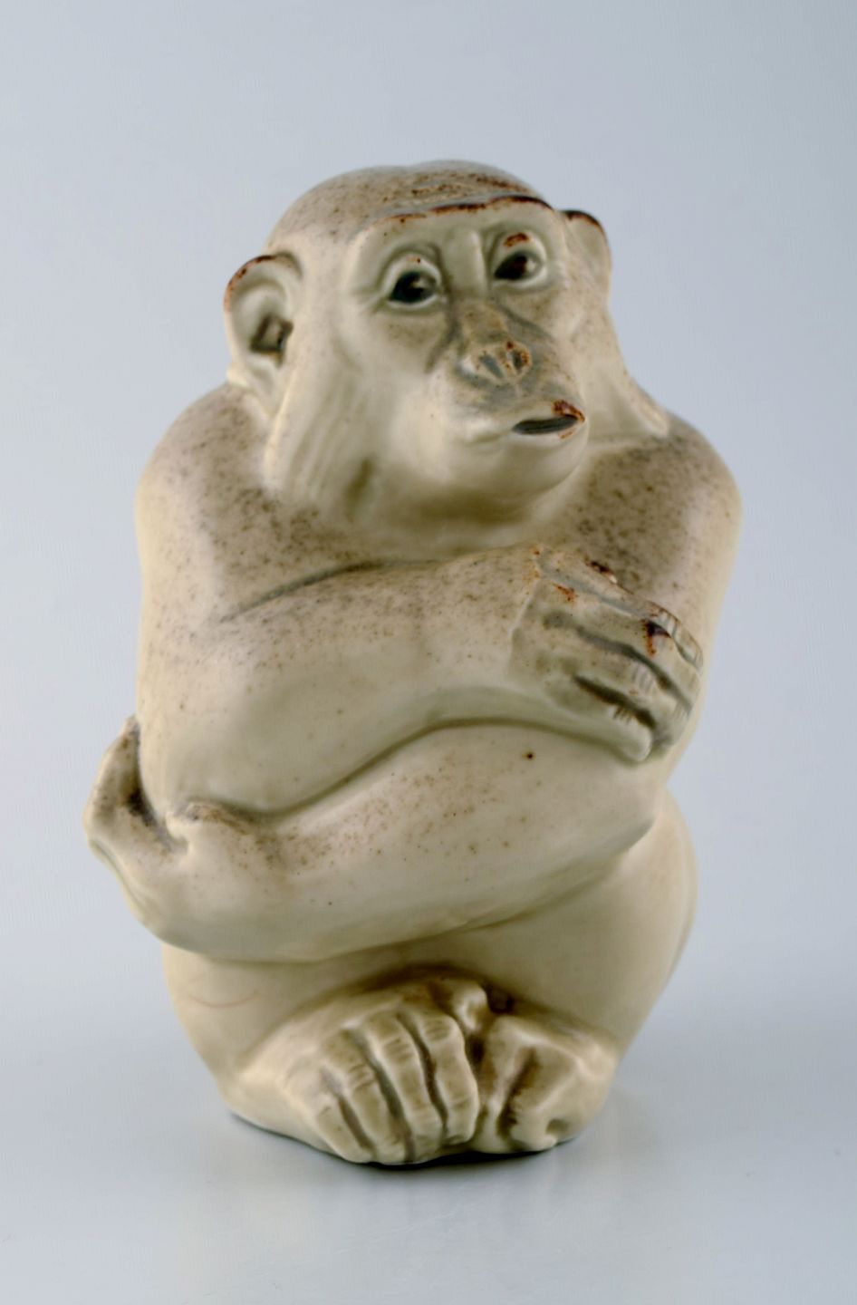 Sjælden Knud Kyhn for Aluminia/Royal Copenhagen, stentøjsfigur, abe. Lys krakkeleret glasur. 1. sortering. Perfekt stand. 1920/30´erne. Måler 14 cm. x 7,5 cm. Stemplet : Kyhn på siden samt Aluminia 57102.