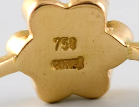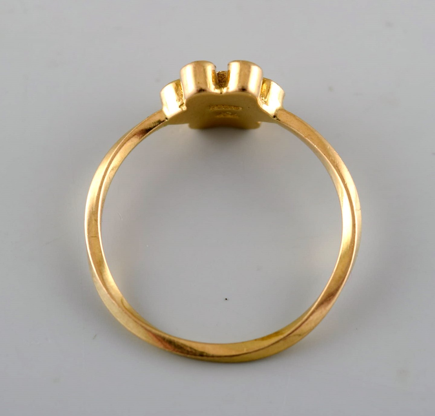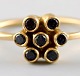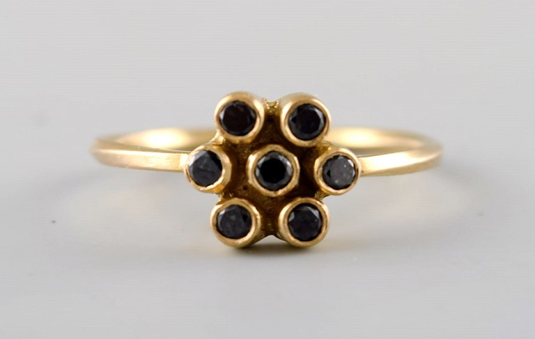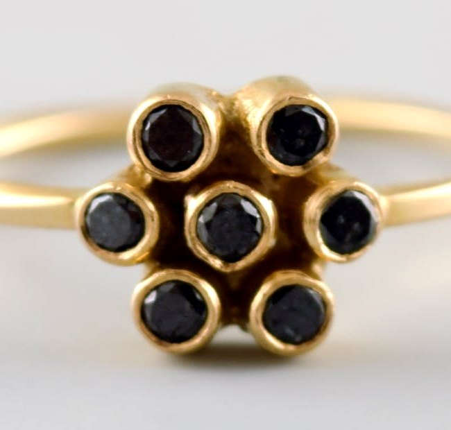 Carré ring af 18 kt. guld i form af en blomst. Prydet med 7 sorte diamanter.