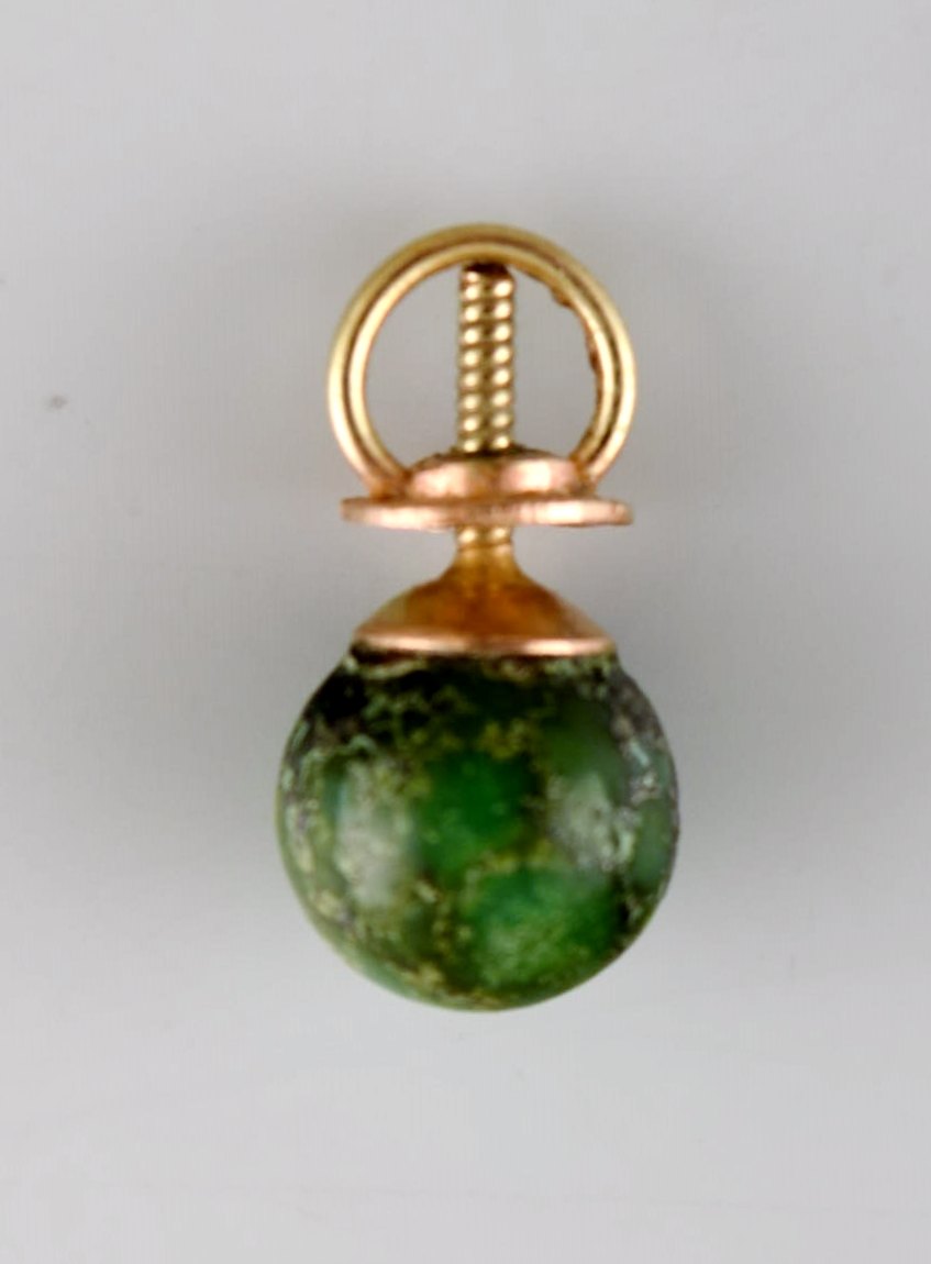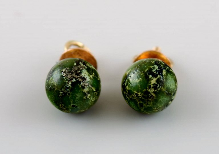 Danske 14K guld ørestikker med grønne sten. Midt 1900-tallet. I flot stand. Stemplet. Måler: 13 mm x 7 mm.