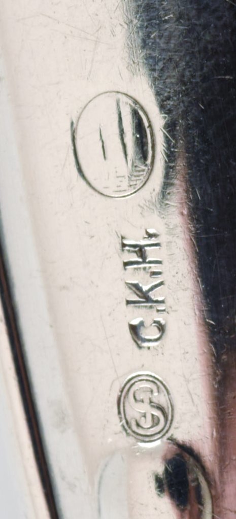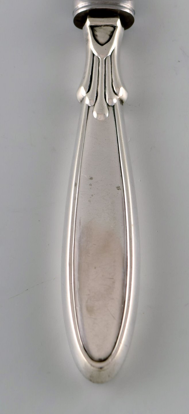 Christian Knudsen Hansen, Præsident lagkagekniv i tretårnet sølv. 1950'erne. I flot stand. Måler: 28 cm. Stemplet: CKH samt tre tårne.