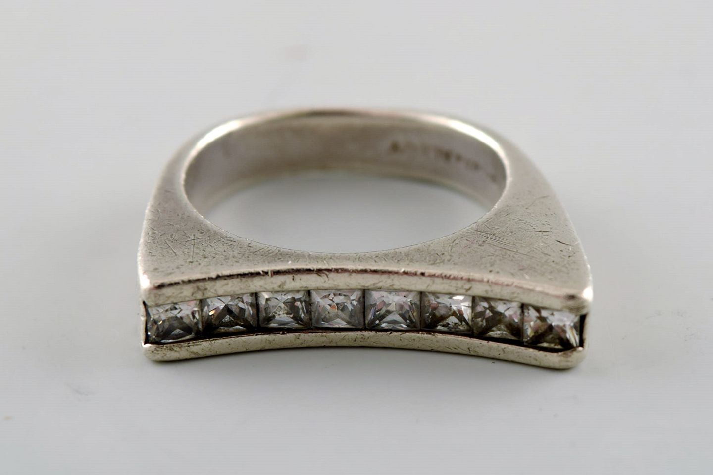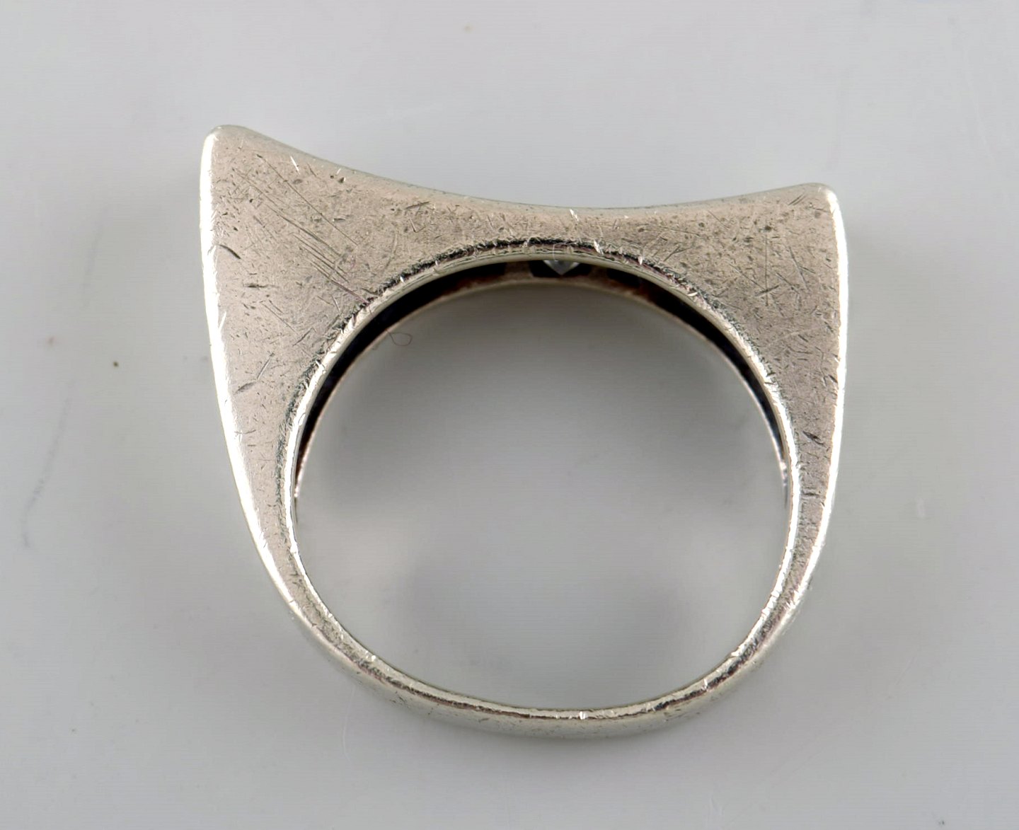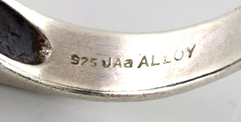 Dansk alliancering i sterlingsølv med sten. Klassisk design. 1970/80'erne. I flot stand. Måler: 17 mm. Vores sølvsmed kan ændre til alle størrelser for kr. 300.- Stemplet: JAa / Alloy.