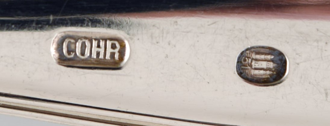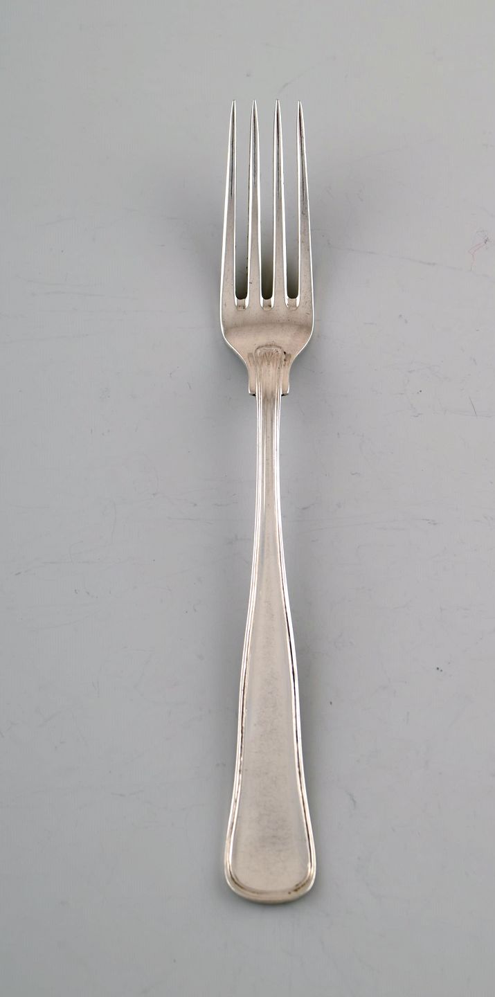 Cohr dobbeltriflet frokostgaffel, bestik af tretårnet sølv. 1950'erne. 6 stk. på lager. Måler 18 cm. Stemplet. I flot stand.