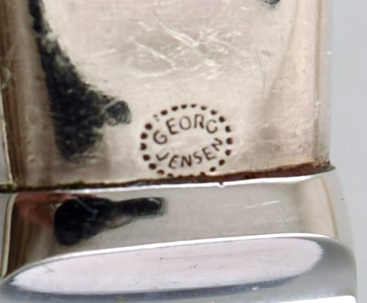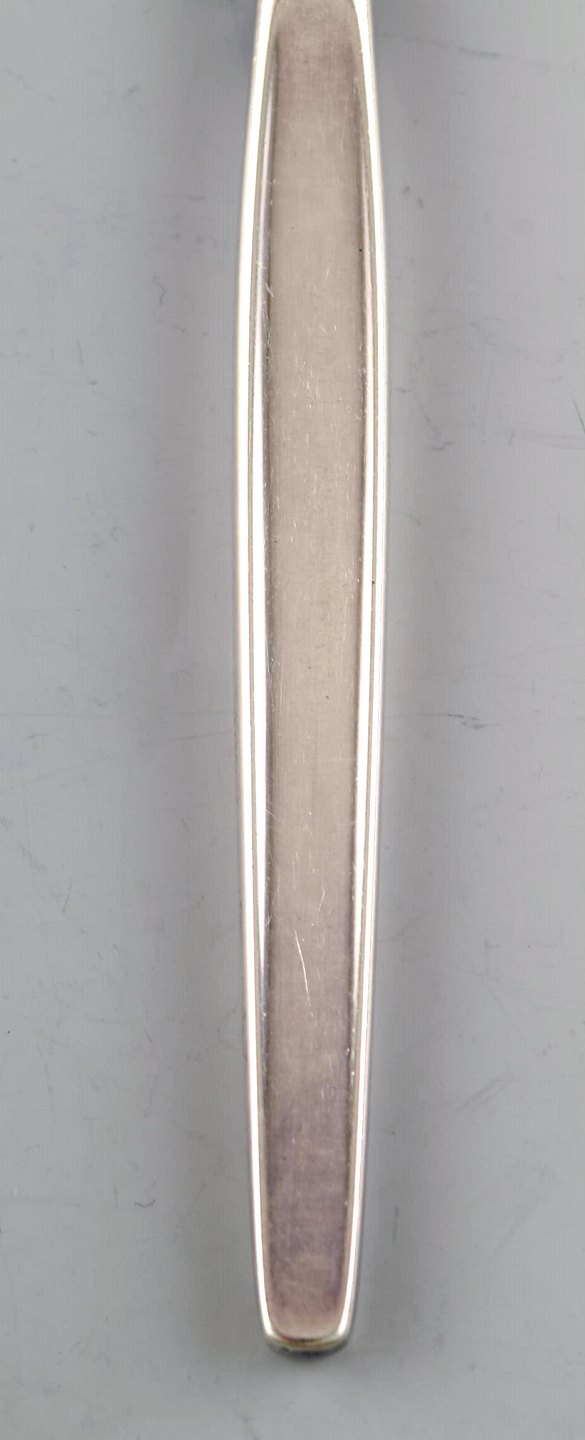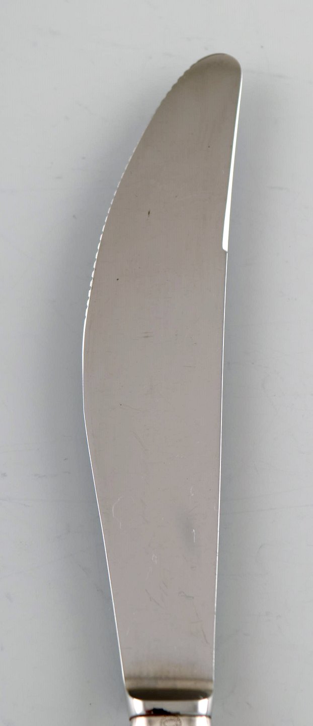 Georg Jensen Sterlingsølv Cypress middagskniv. Måler 22,5 cm. I perfekt stand. Stemplet. Designet af Tias Eckhoff 1952-1953 For Georg Jensen Sølvsmedie, Danmark. Cypresmønstret nr. 99. 4 stk på lager.