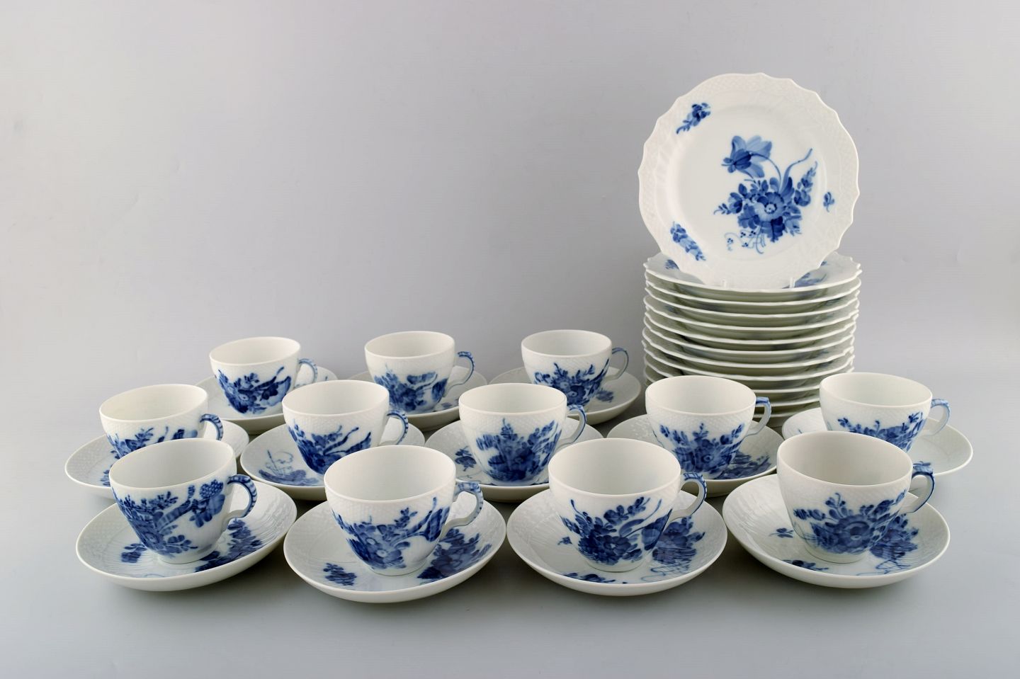 12 personers kaffeservice Kgl. Blå blomst svejfet Kongelig porcelæn. Royal Copenhagen.