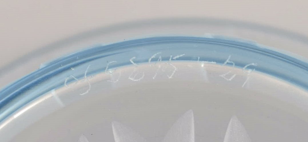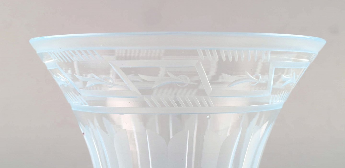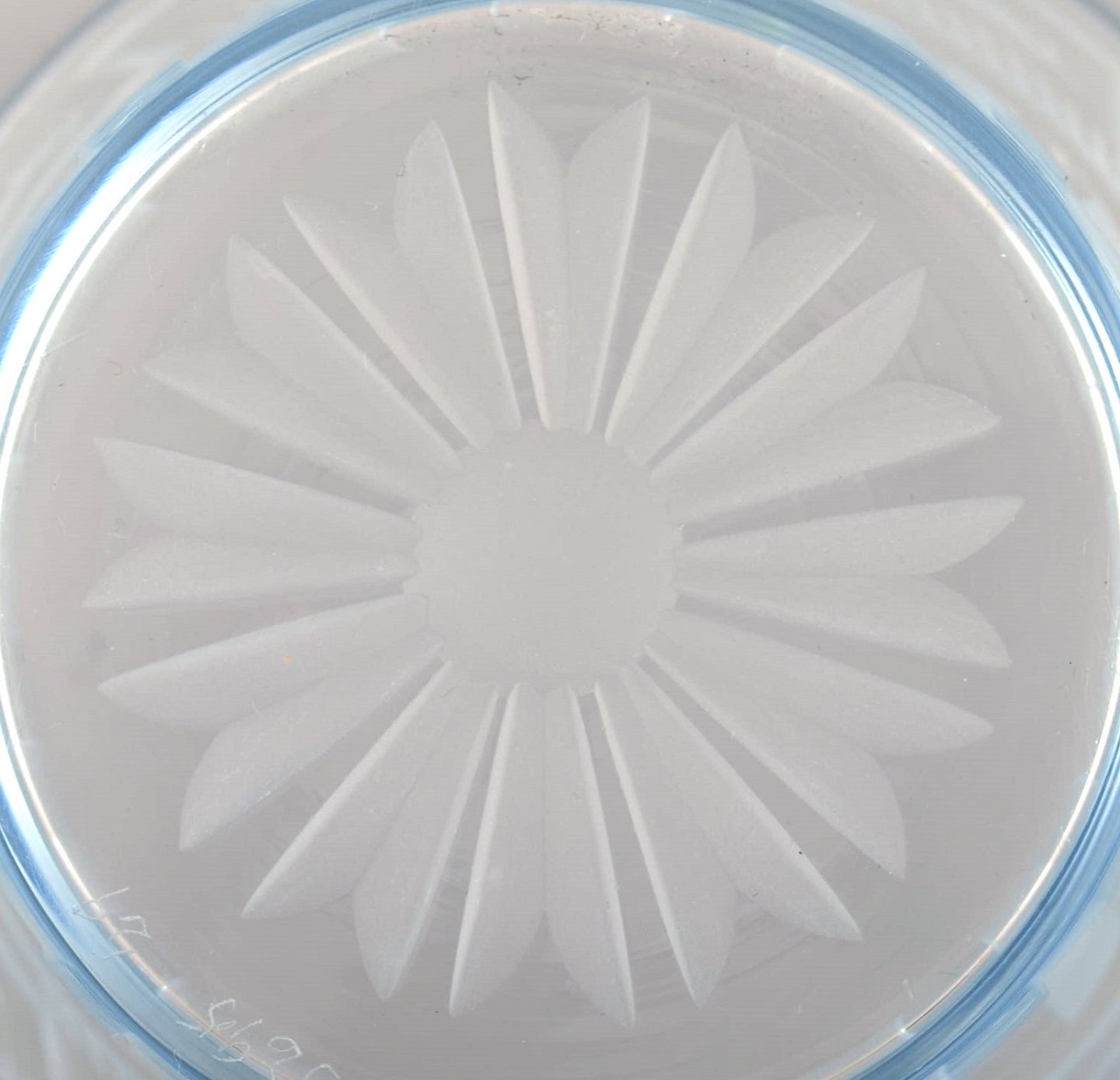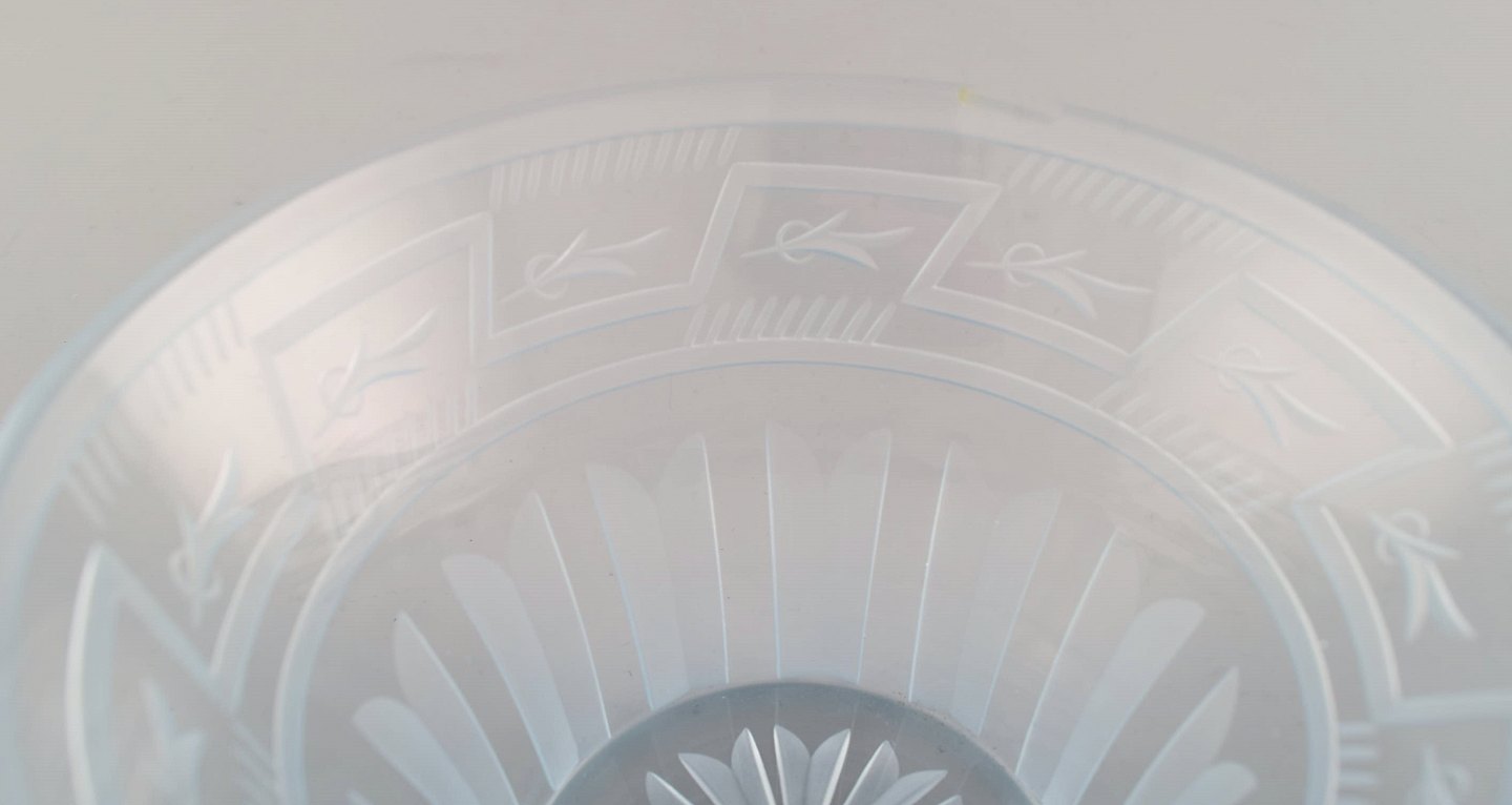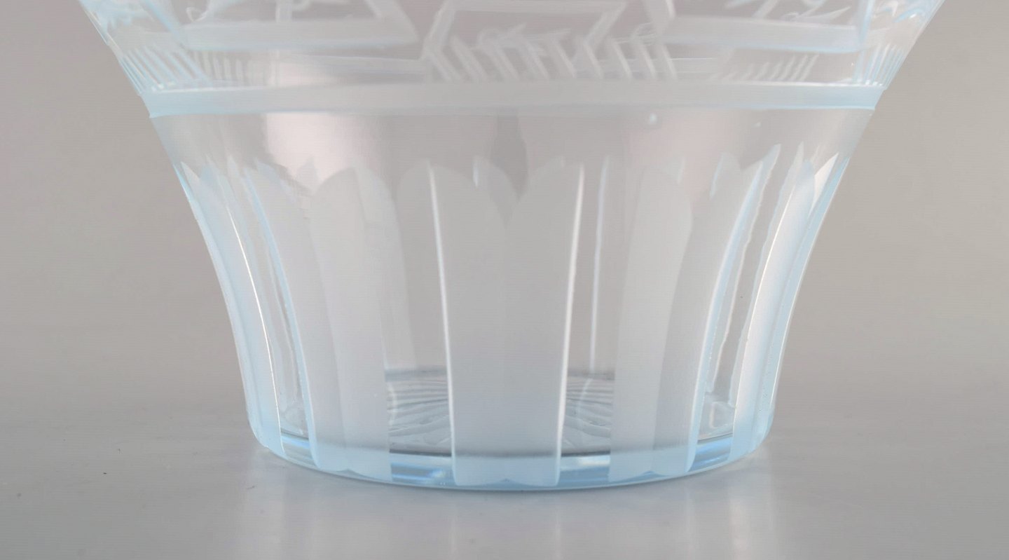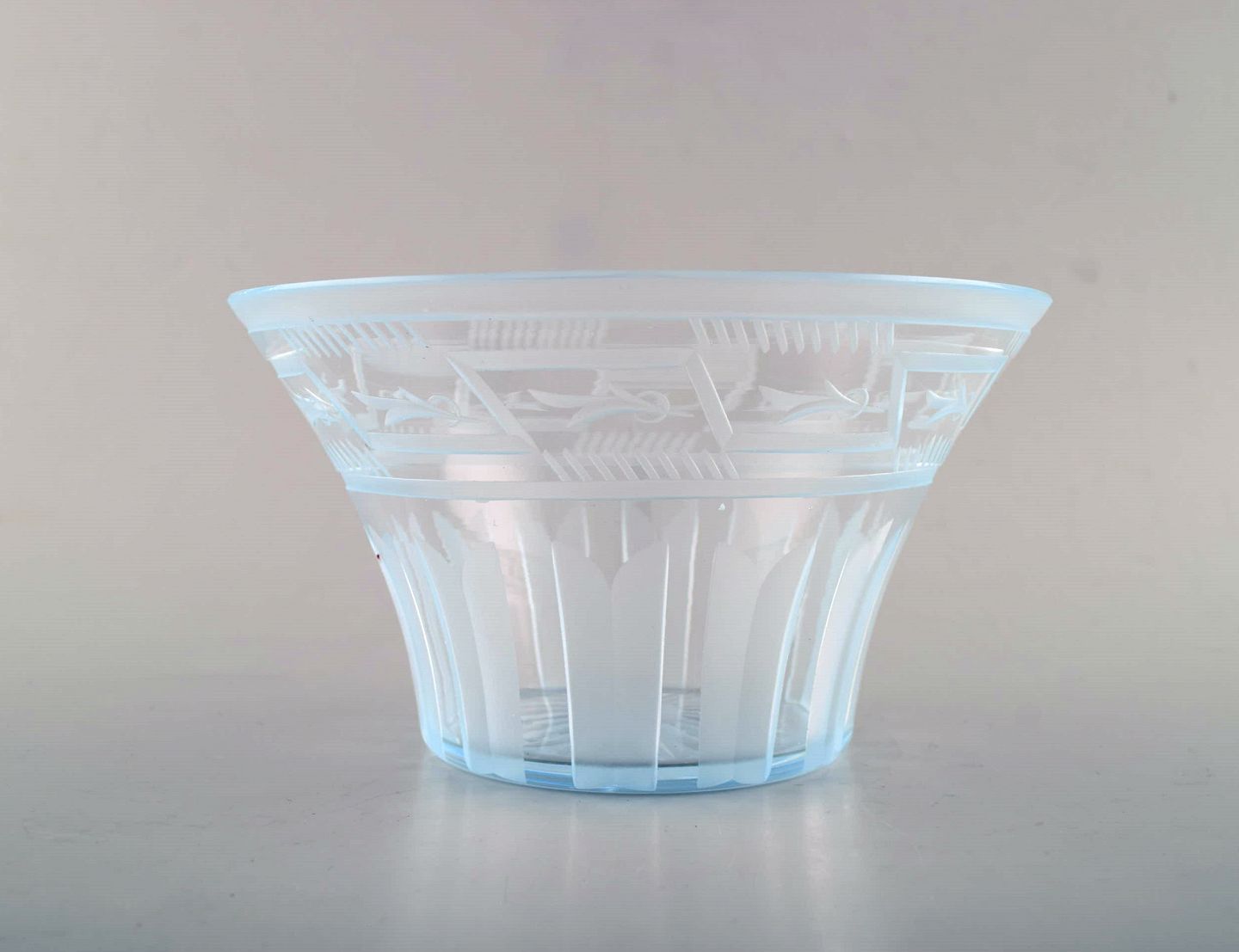 SIMON GATE for Orrefors, Art deco skål i satinslebet lyseblåt kunstglas. 1929.