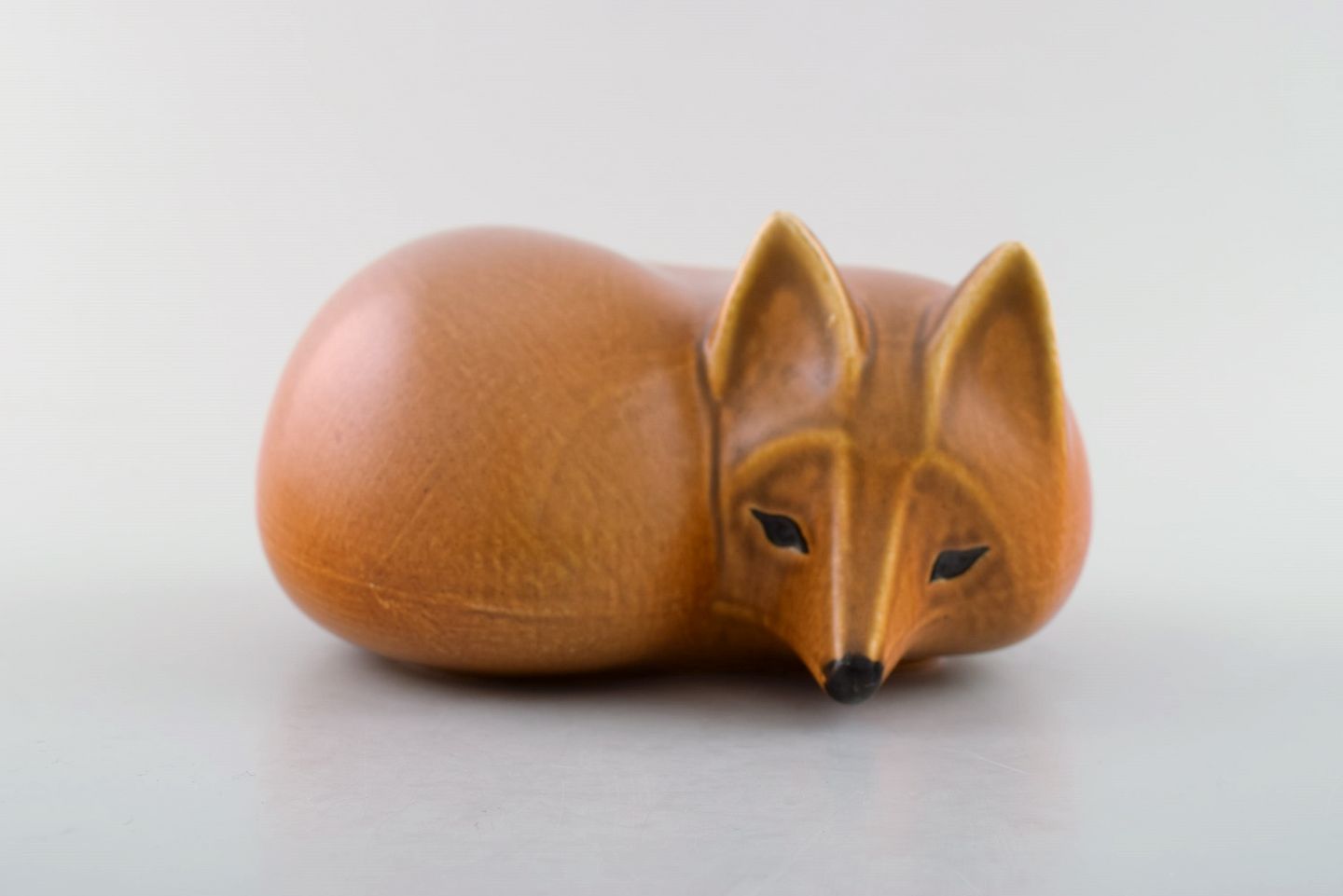 Lisa Larson for Gustavsberg 1977, stor rød ræv fra serien Skansen. Måler: 16 cm. x 8 cm. Stemplet. I perfekt stand.