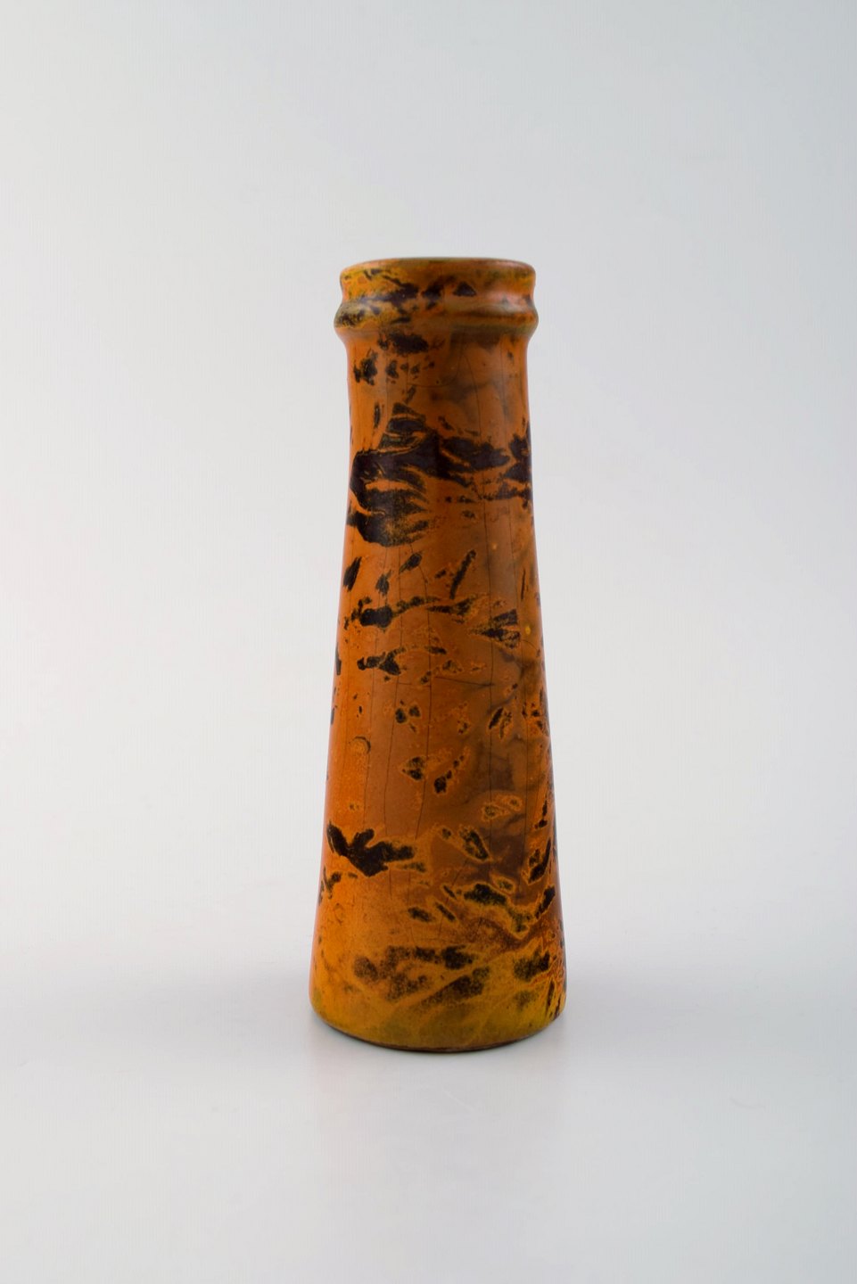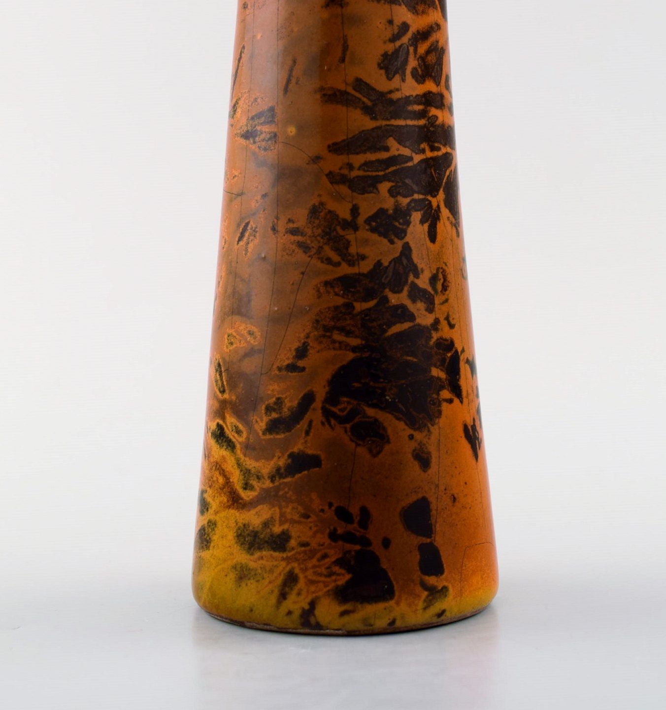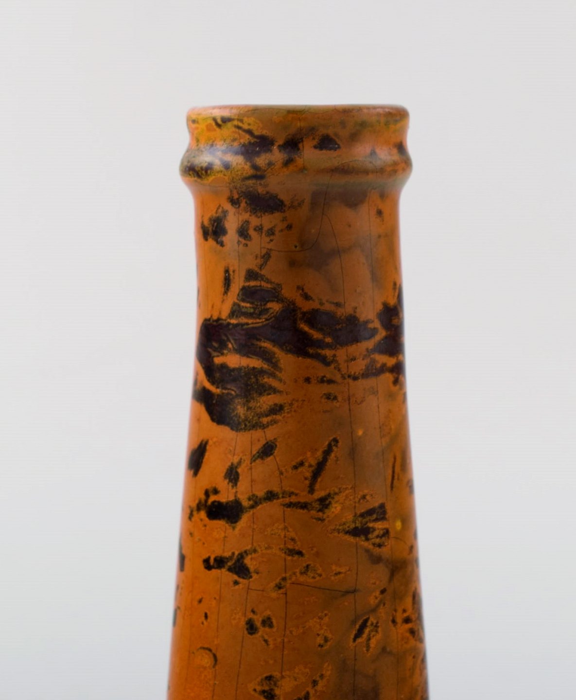 Smuk glasur i orange og brune nuancer.