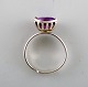 Alton, Falköping. Svensk modernistisk sterlingsølvring med violet sten. Dateret 1978.