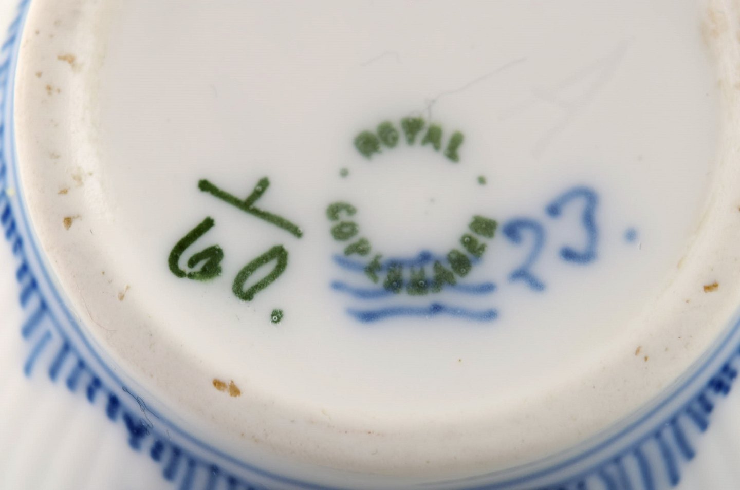 Royal Copenhagen Musselmalet Riflet stor flødekande # 1/60.