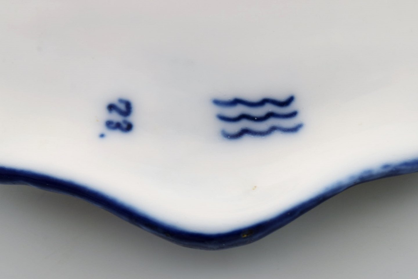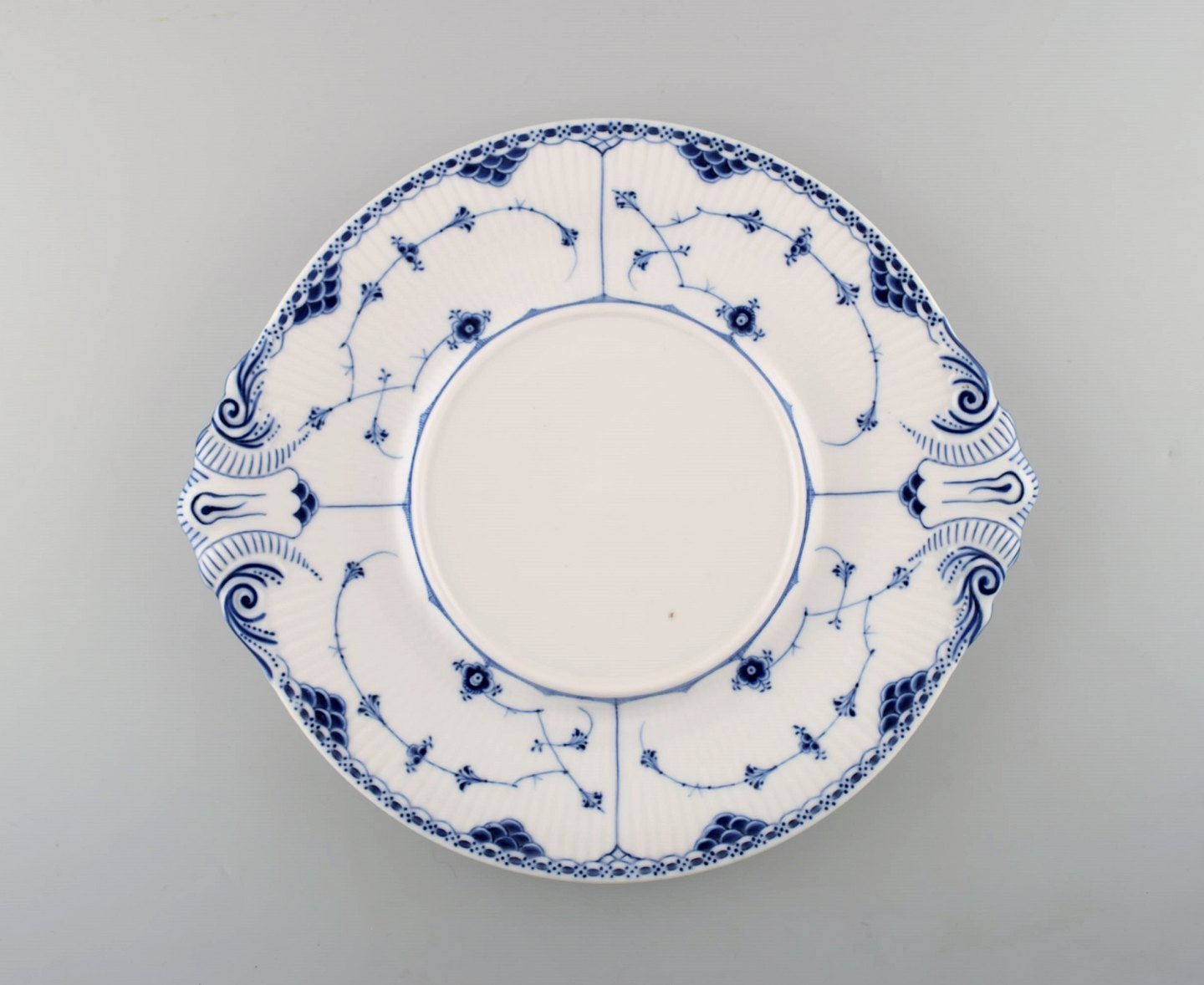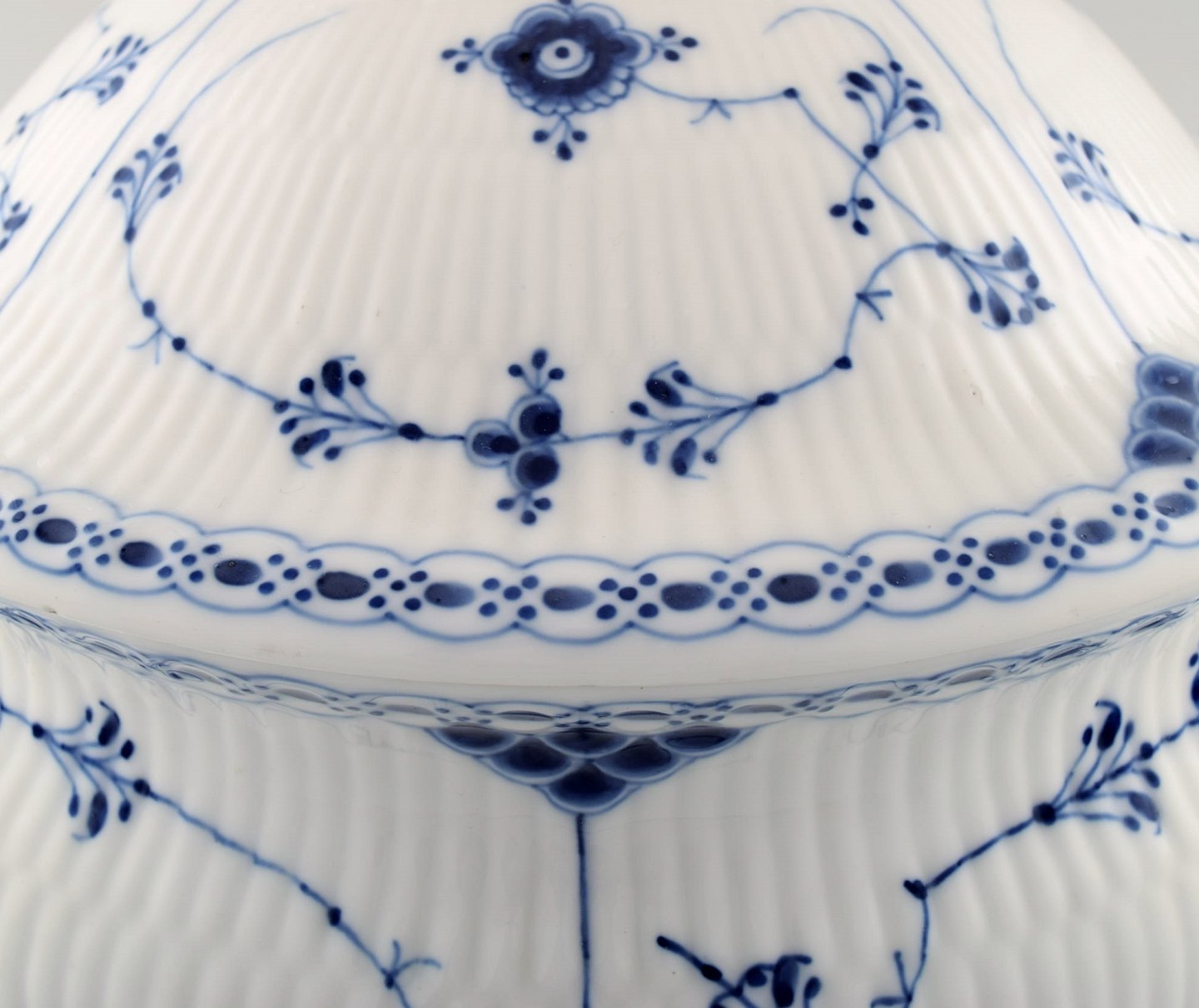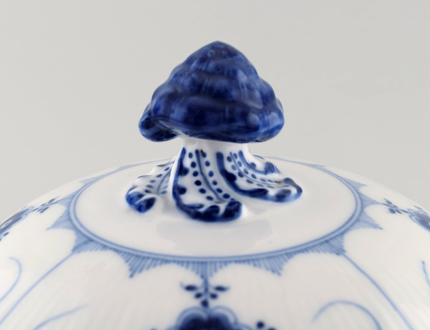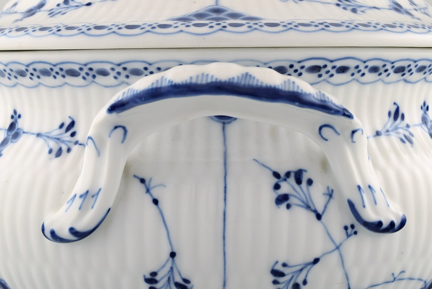 Royal Copenhagen Musselmalet Halvblonde stor lågterrin # 1/602 med underfad. Stemplet ca. 1900. Terrin måler: 30 x 25 cm. Underfad måler: 39 x 34 cm. 1. sortering. I flot stand.