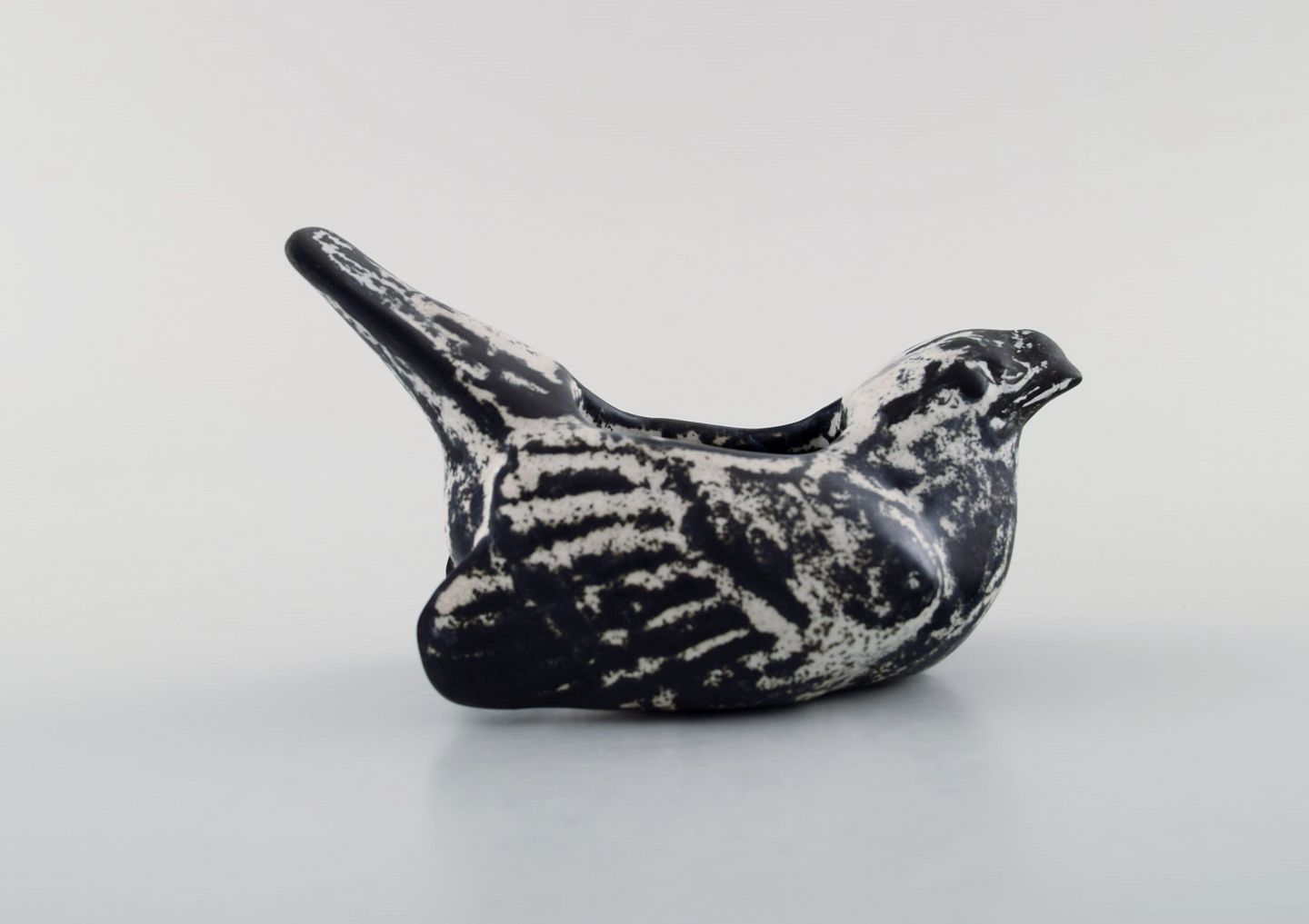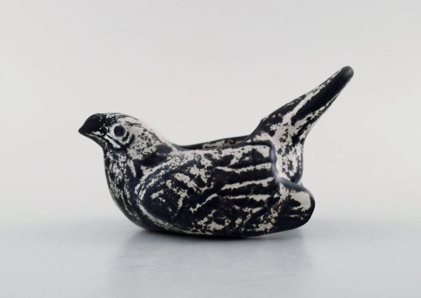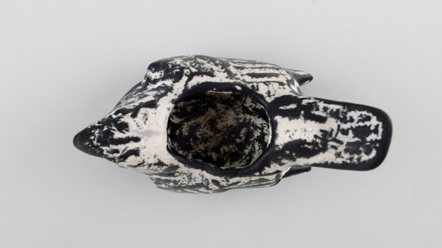 Kähler, HAK, Keramik fugl i smuk gråsort dobbeltglasur. 1930´erne. Stemplet. Måler : 12 x 7 cm. I perfekt stand.