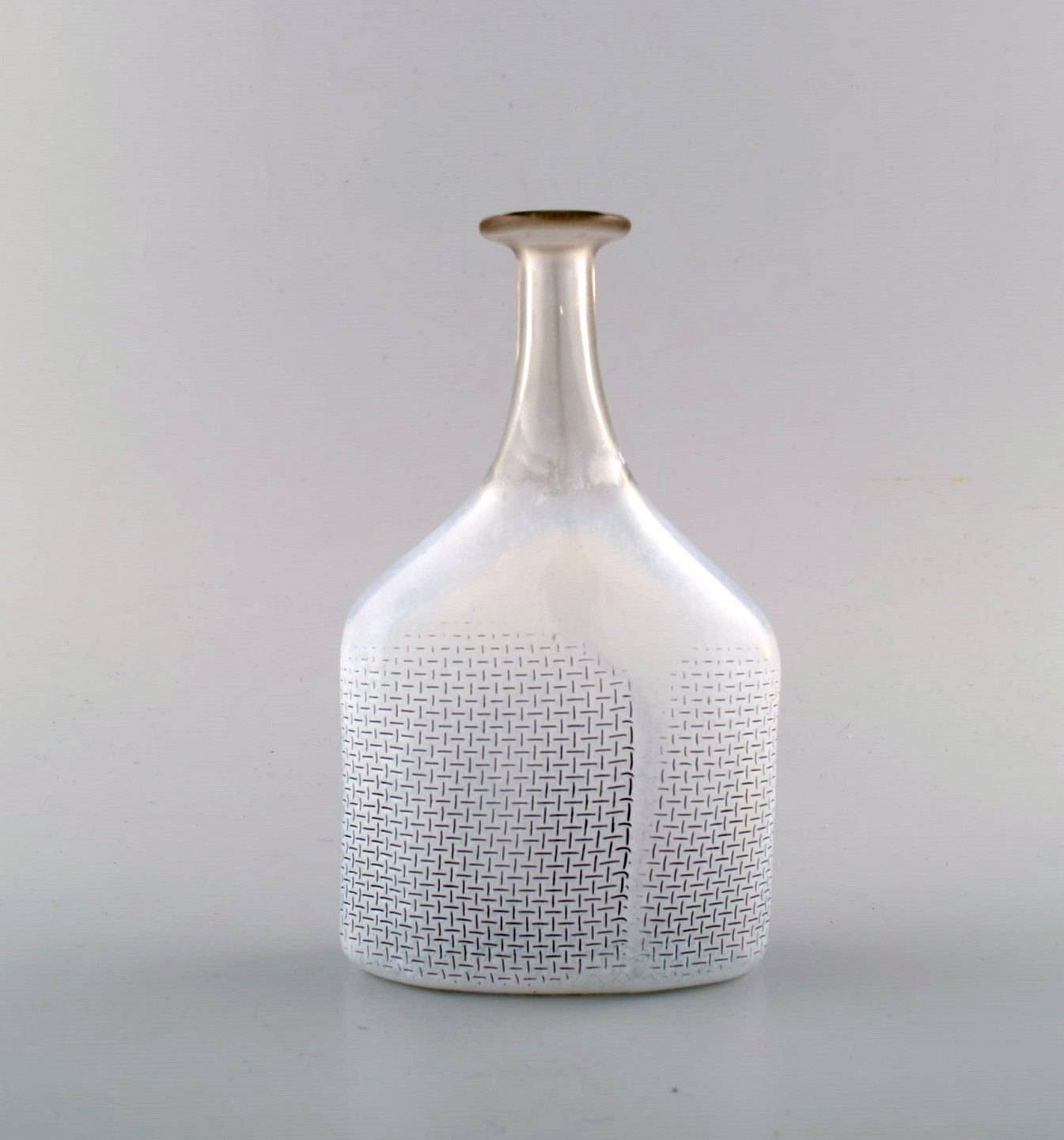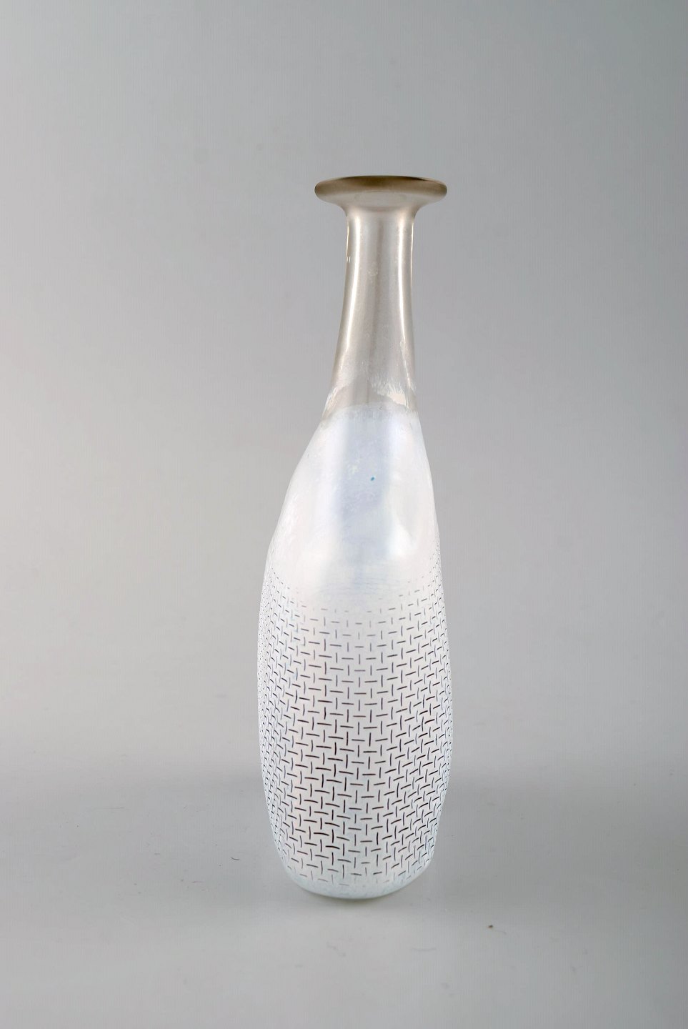 Bertel Vallien for Kosta Boda. Vase / flaske i lyseblåt mundblæst kunstglas. Svensk design 1980'erne. Måler: 16 x 9,5 cm. I perfekt stand. Signeret.