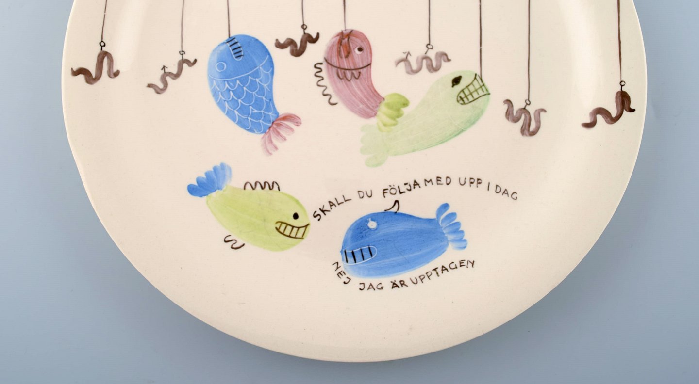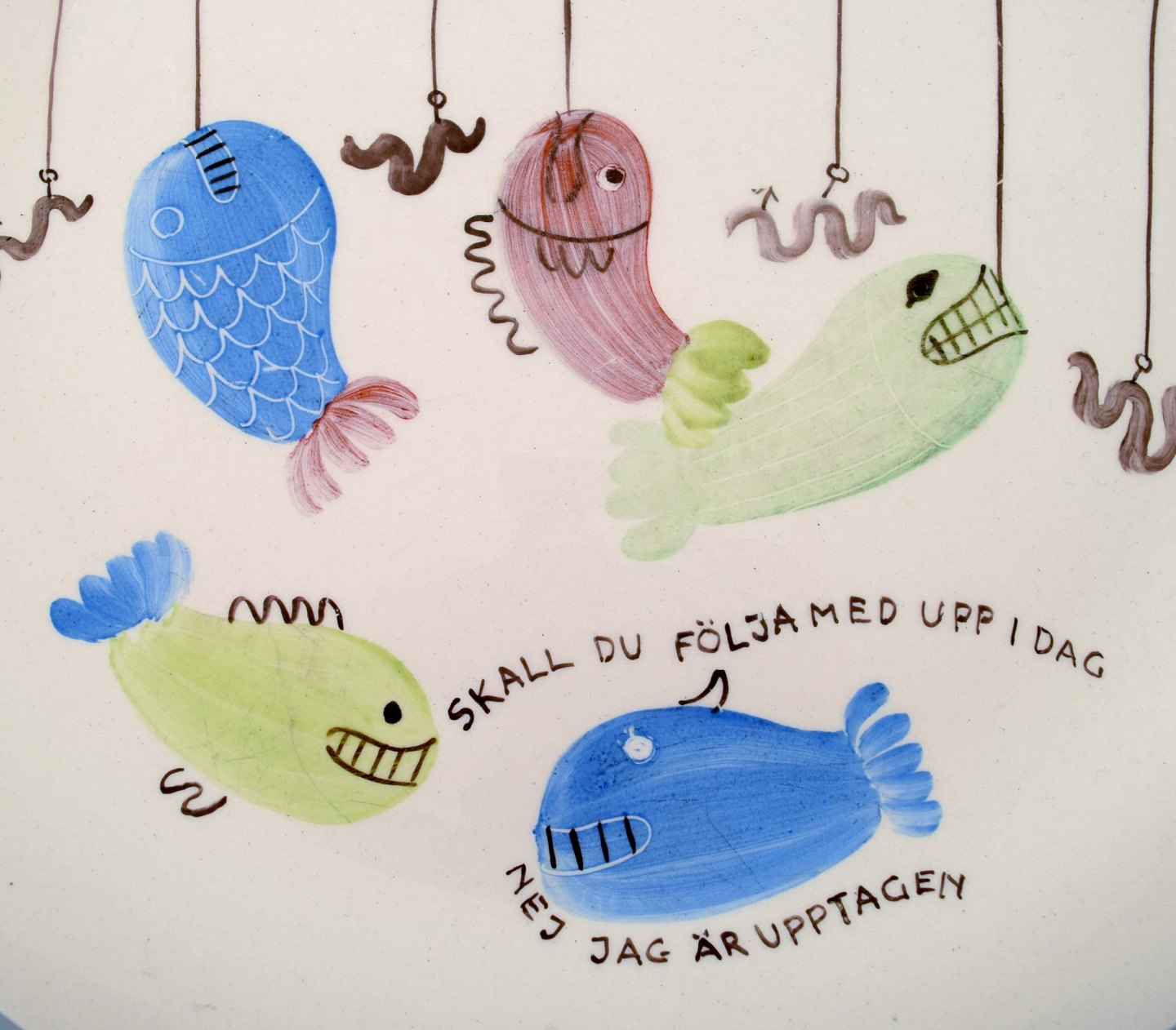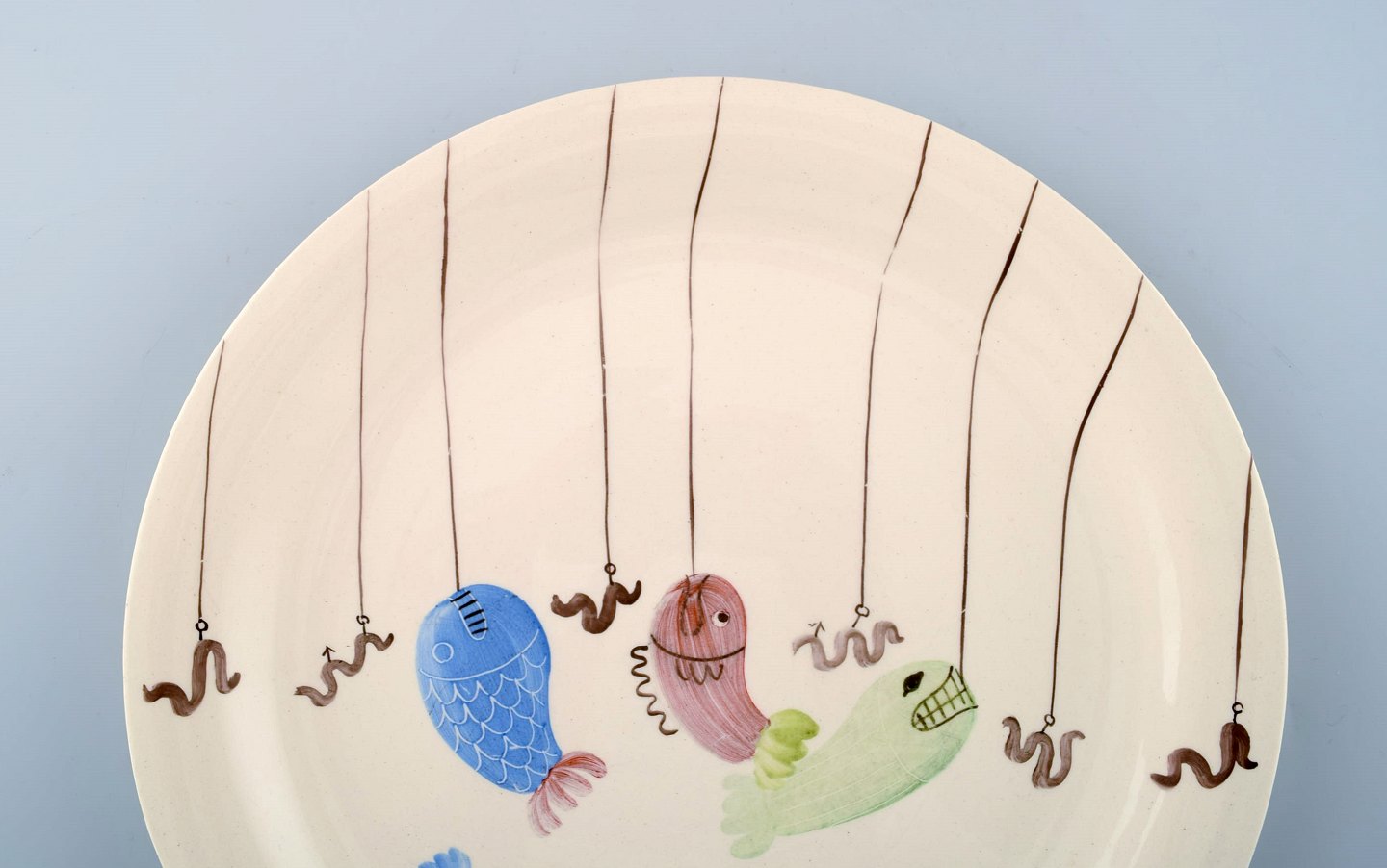 Stig Lindberg for Gustavsberg. "Löja" tallerken. Håndmalet med fiskemotiver. 1950'erne. I perfekt stand. Måler: 24,5 cm. Signeret.