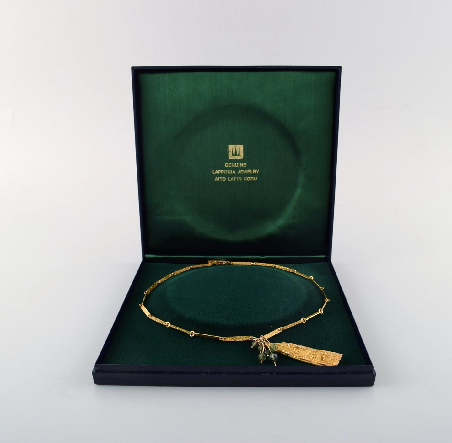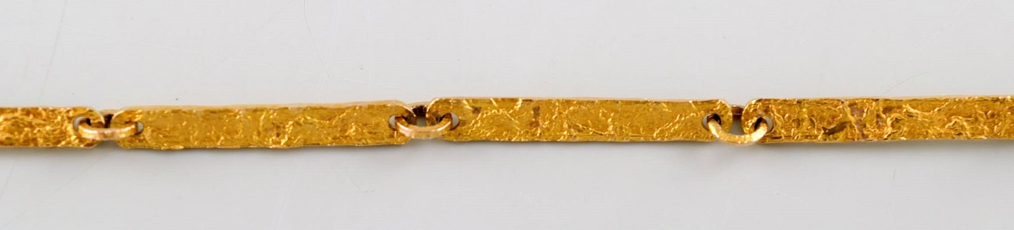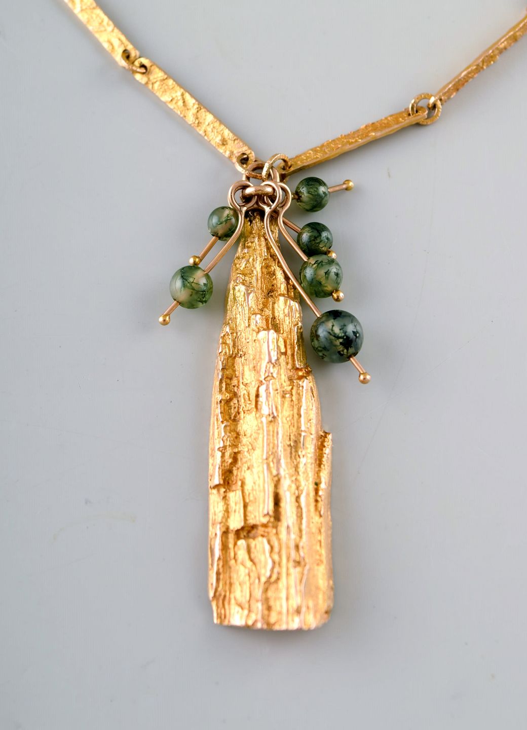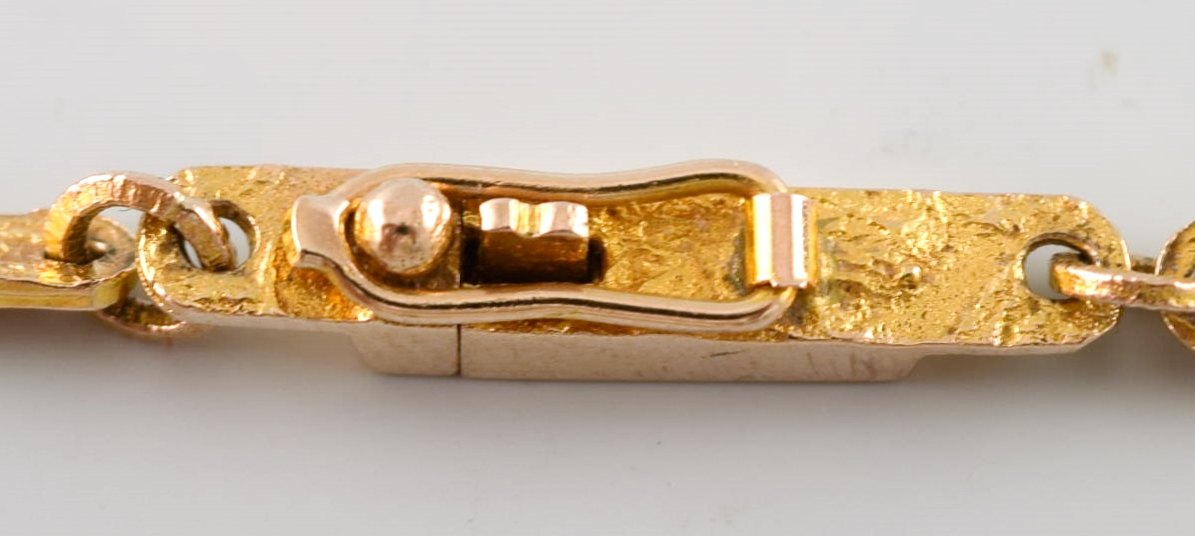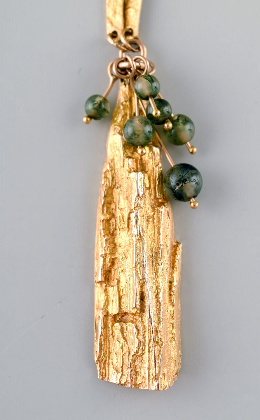 Björn Weckström for Lapponia. "Golden tree" halskæde af 14 karat guld. Vedhæng behængt med fem runde perler af agat. Indskudslås med sikkerhedshasp. dateret 1972.