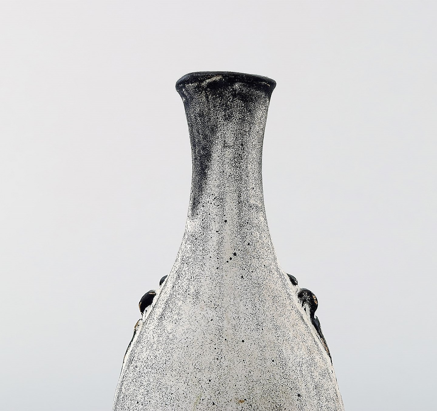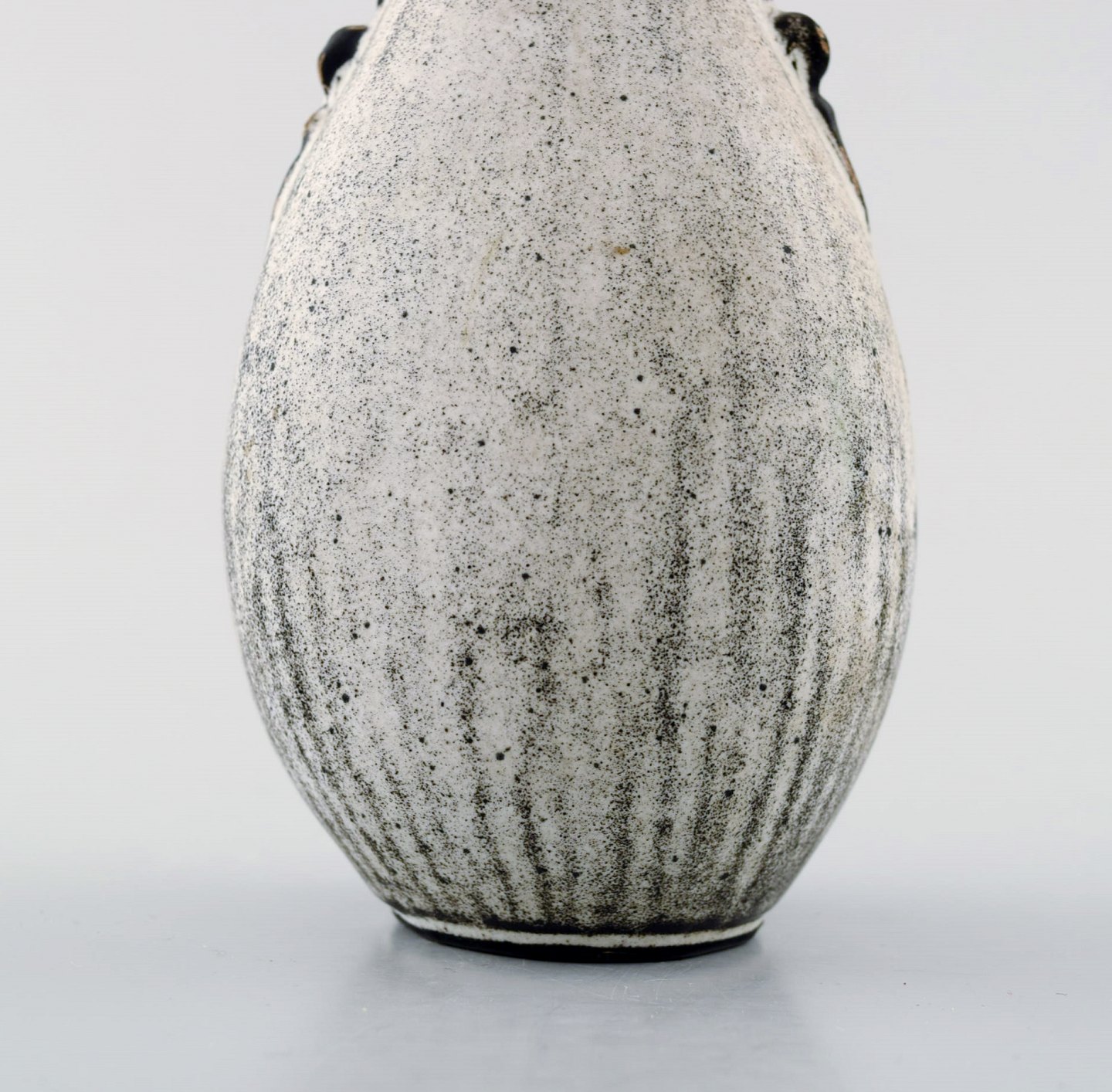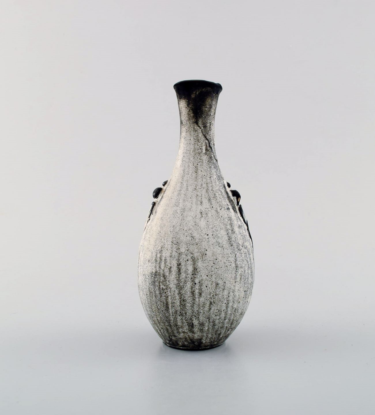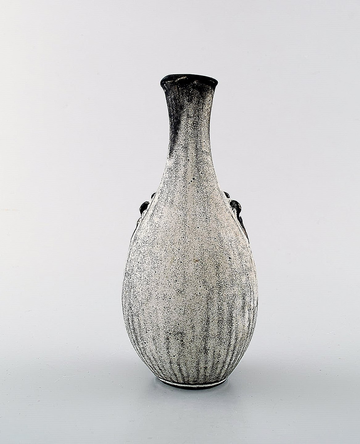 Kähler, HAK, glaseret stentøjsvase, 1930'erne. Designet af Svend Hammershøi. Smuk gråsort dobbeltglasur. Måler : 15 x 7 cm. Stemplet. I perfekt stand.