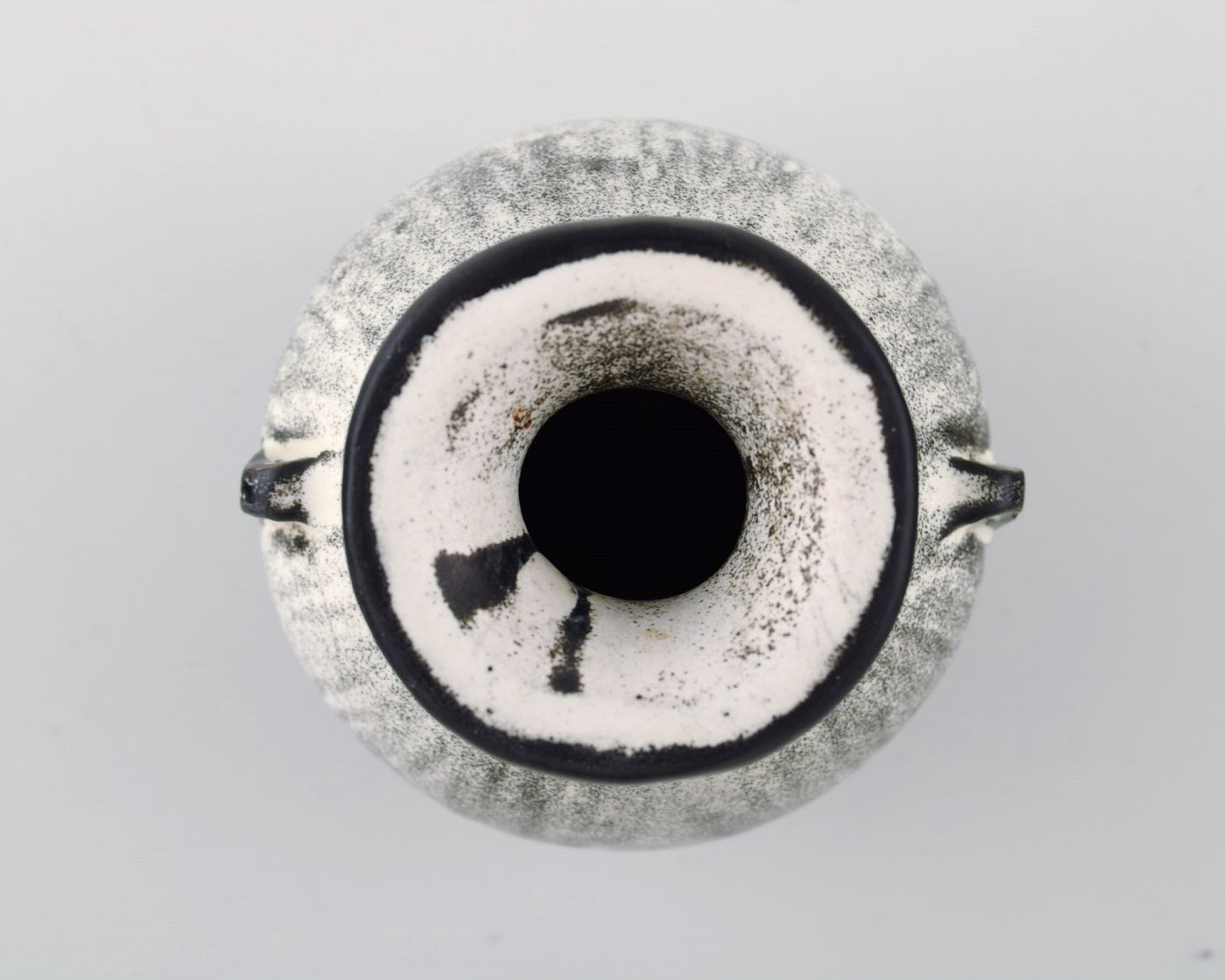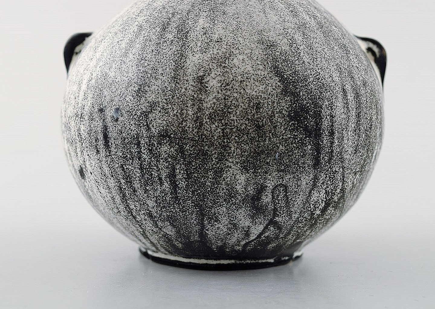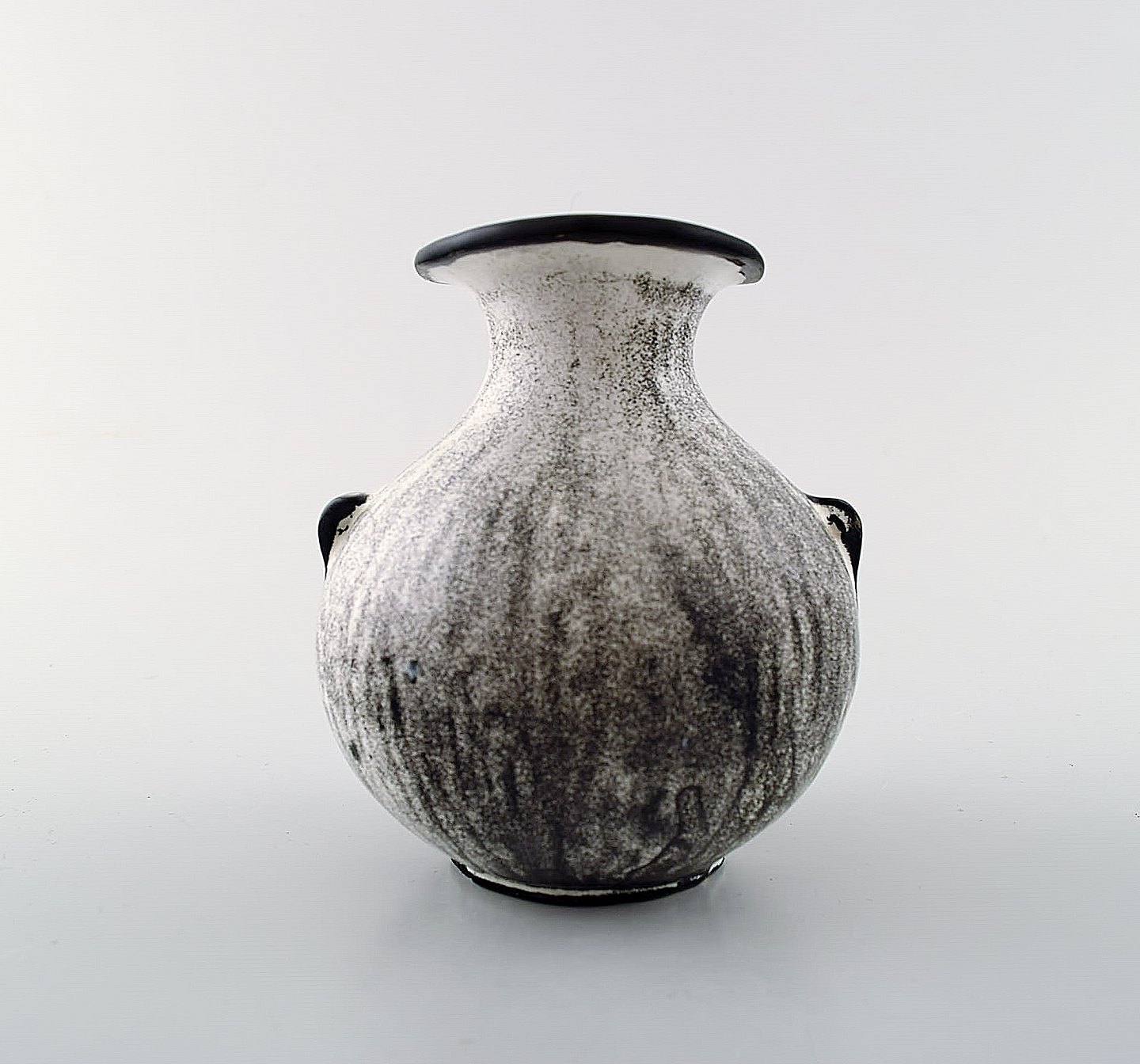 Kähler, HAK, glaseret stentøjsvase, 1930'erne. Designet af Svend Hammershøi. Smuk gråsort dobbeltglasur. Måler : 10 x 9,5 cm. Stemplet. I perfekt stand.