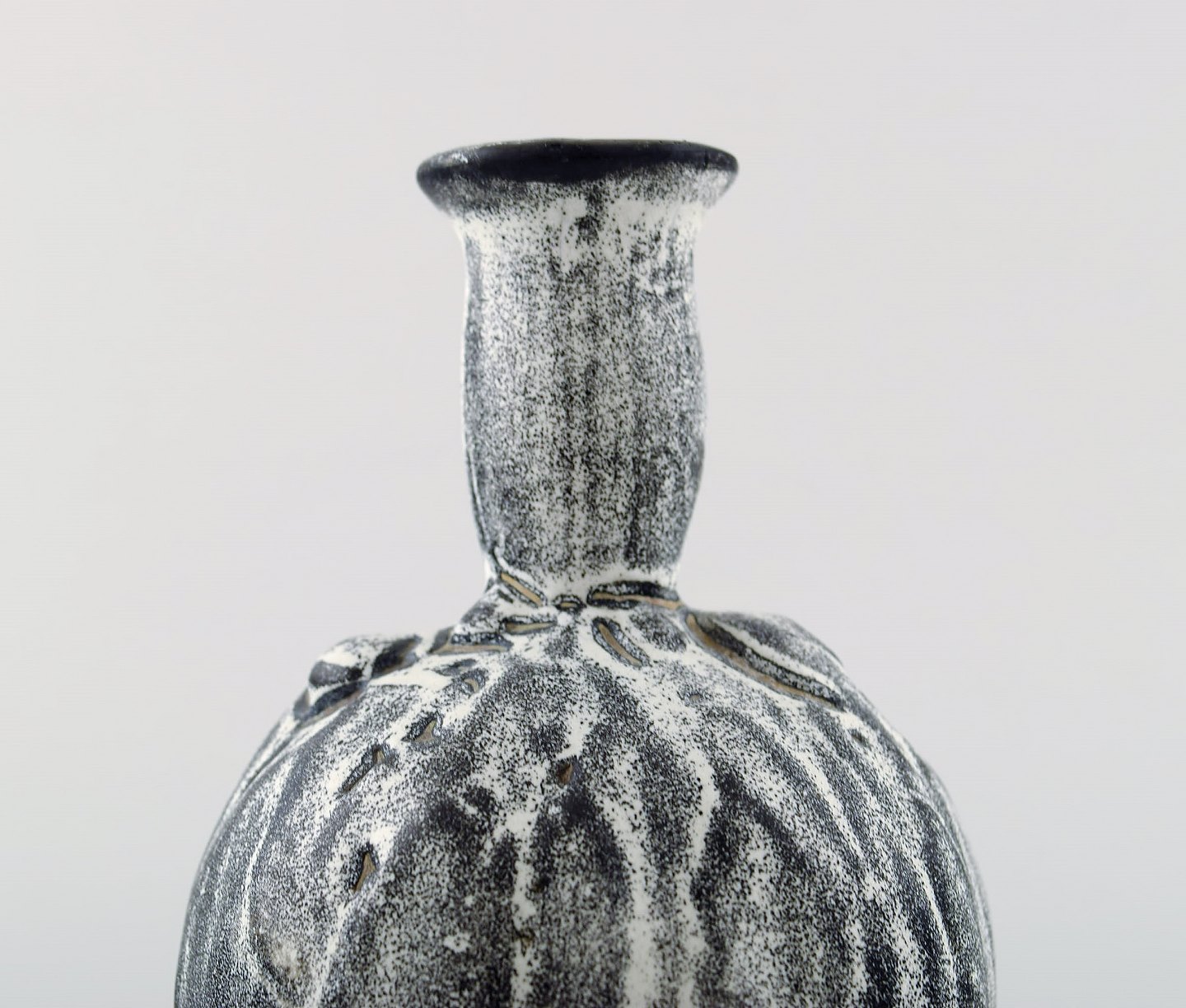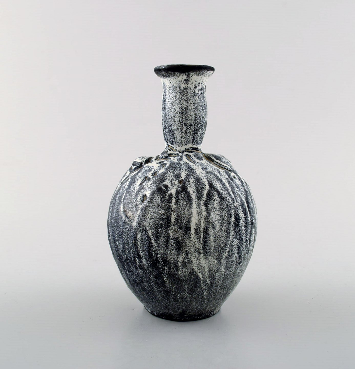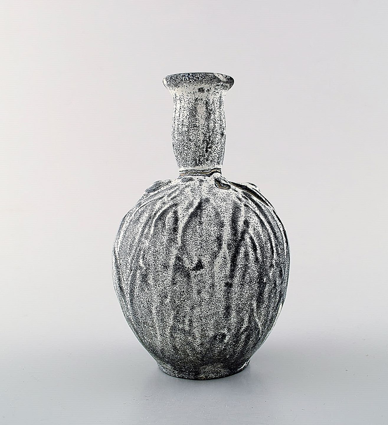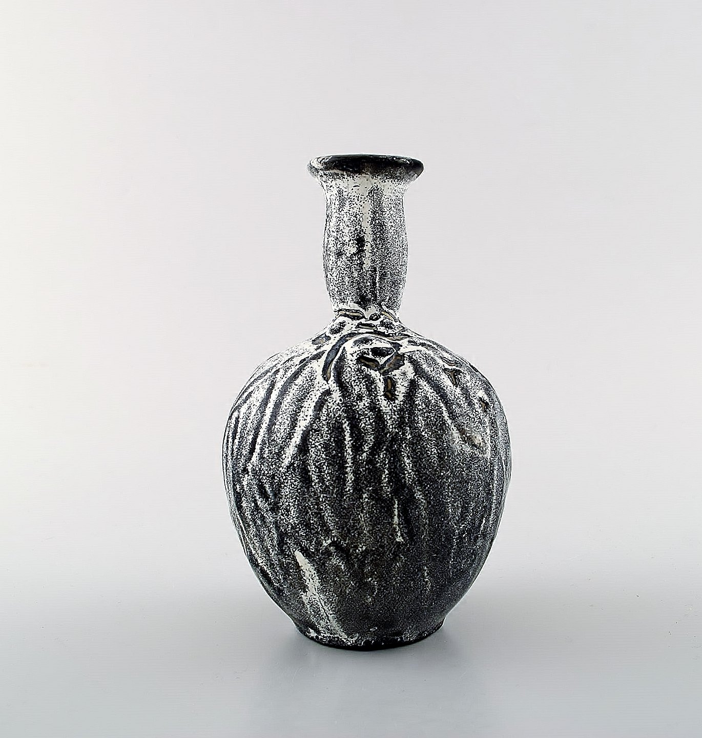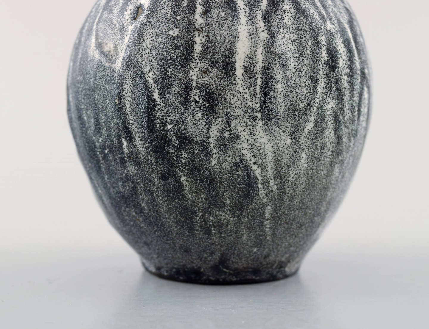 Kähler, HAK, glaseret stentøjsvase, 1930'erne. Designet af Svend Hammershøi. Smuk gråsort dobbeltglasur. Måler : 13,5 x 8,5 cm. Stemplet. I perfekt stand.
