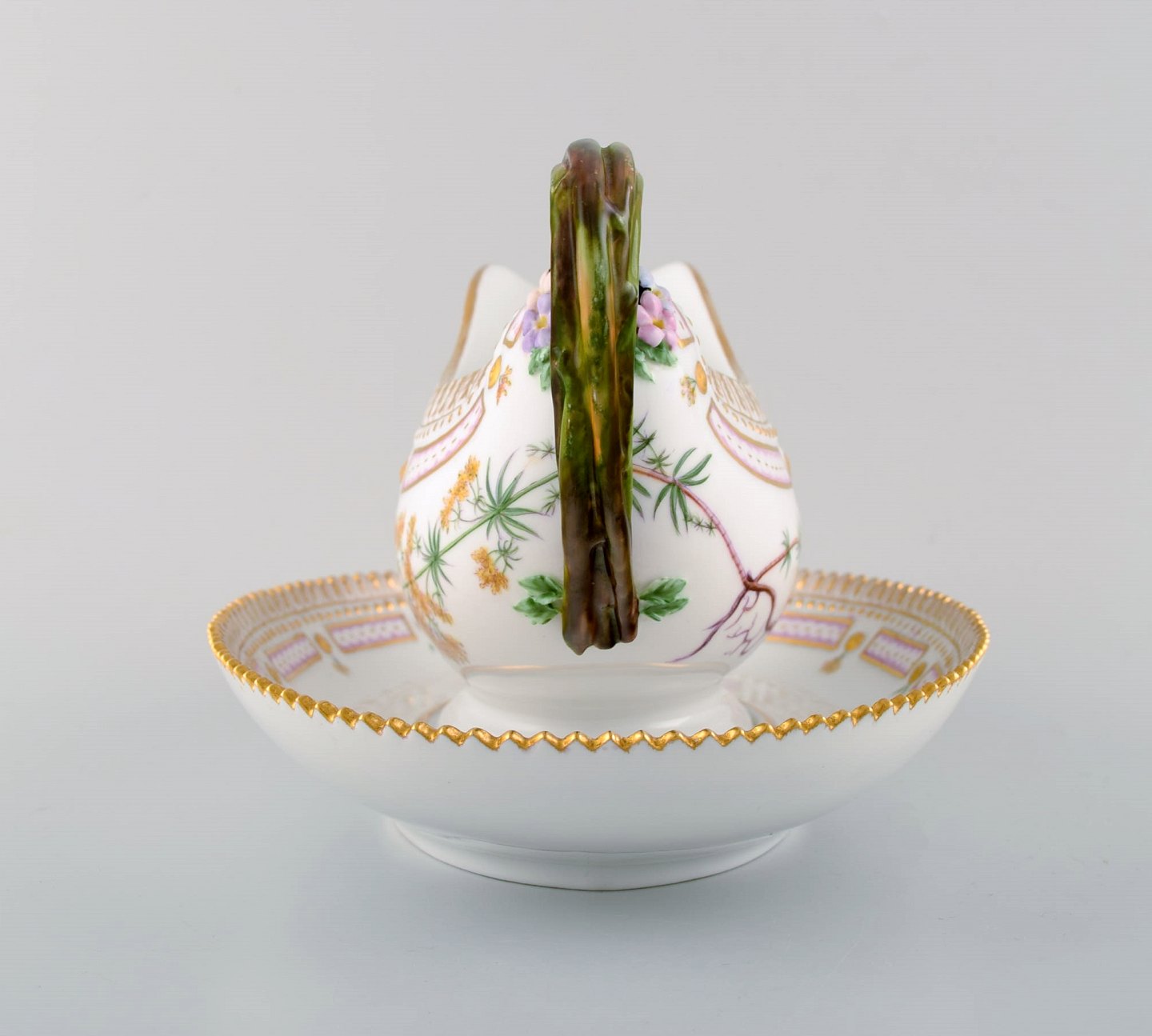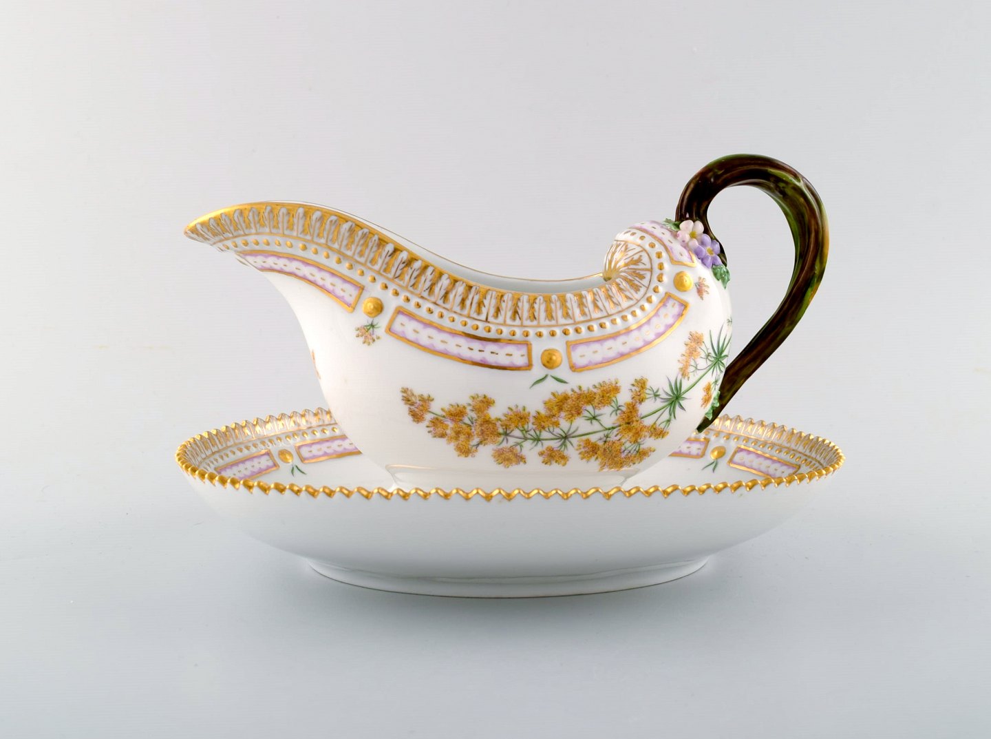 Royal Copenhagen Kongelig porcelæn Flora Danica saucekande/sovsekande, håndmalet med blomster. Måler: 24 x 18 x 15 cm I perfekt stand. 1. sortering. Modelnummer: 20/3556