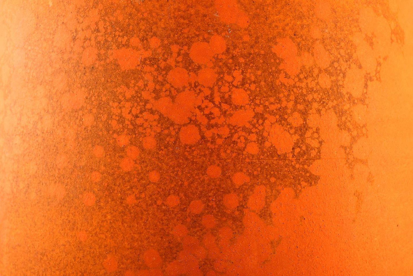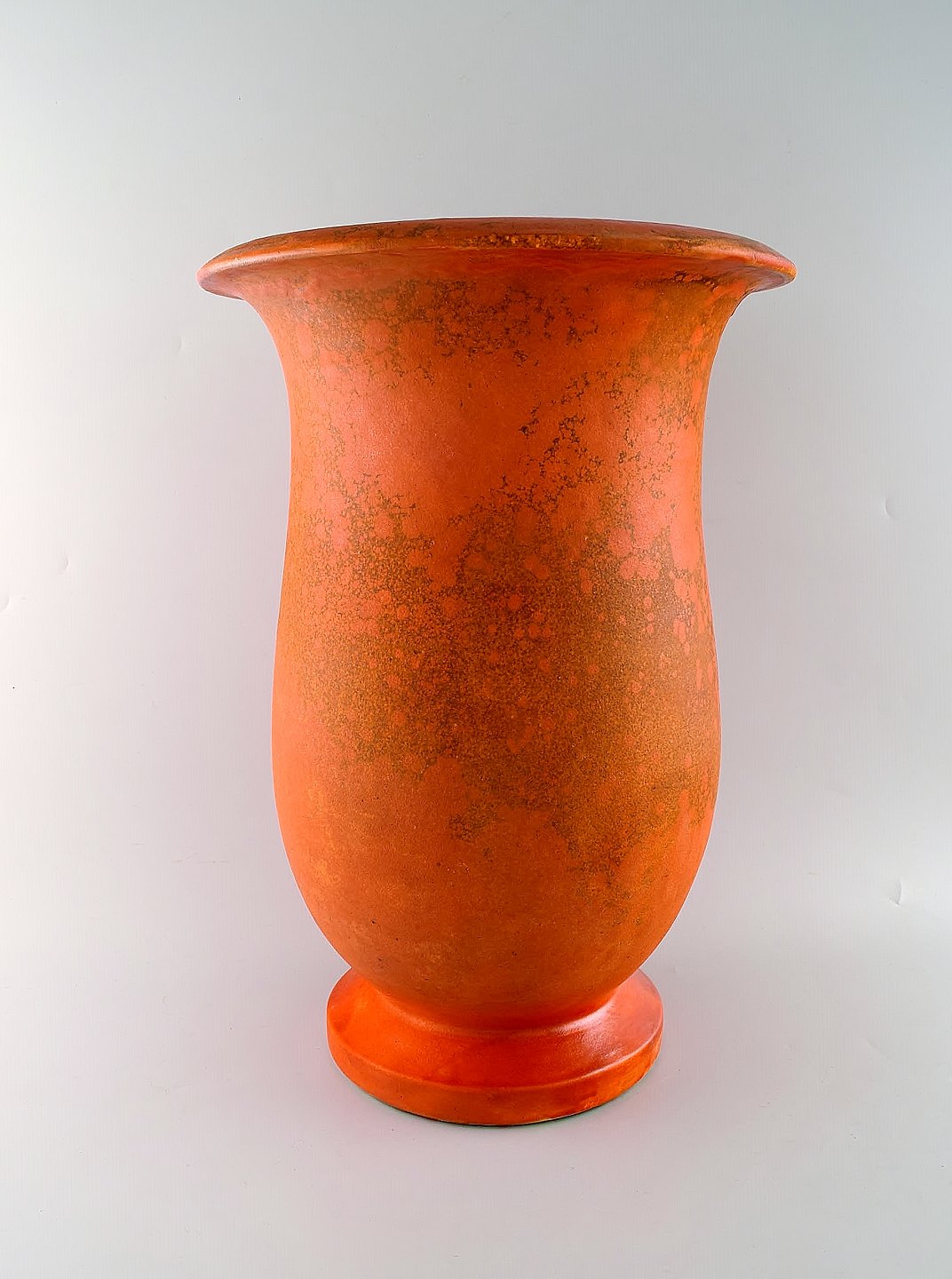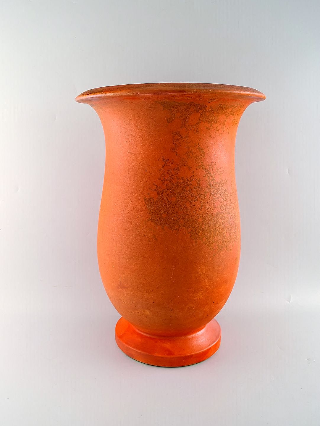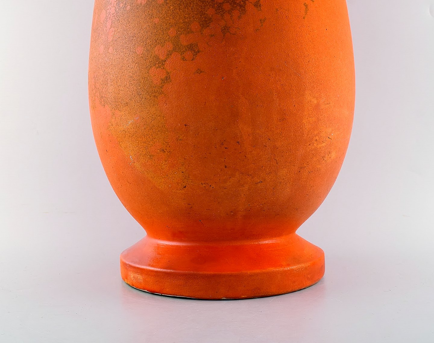 Svend Hammershøi for Kähler, HAK. Stor gulvvase i glaseret stentøj. Smuk orange uranglasur. 1930/40'erne. I flot stand. Stemplet. Måler 44,5 x 31 cm.