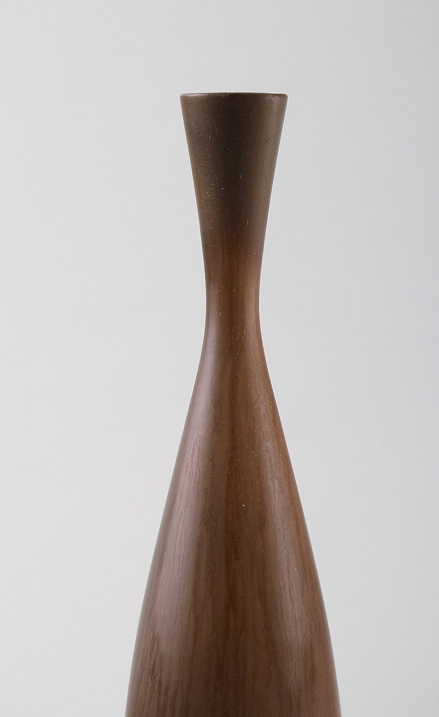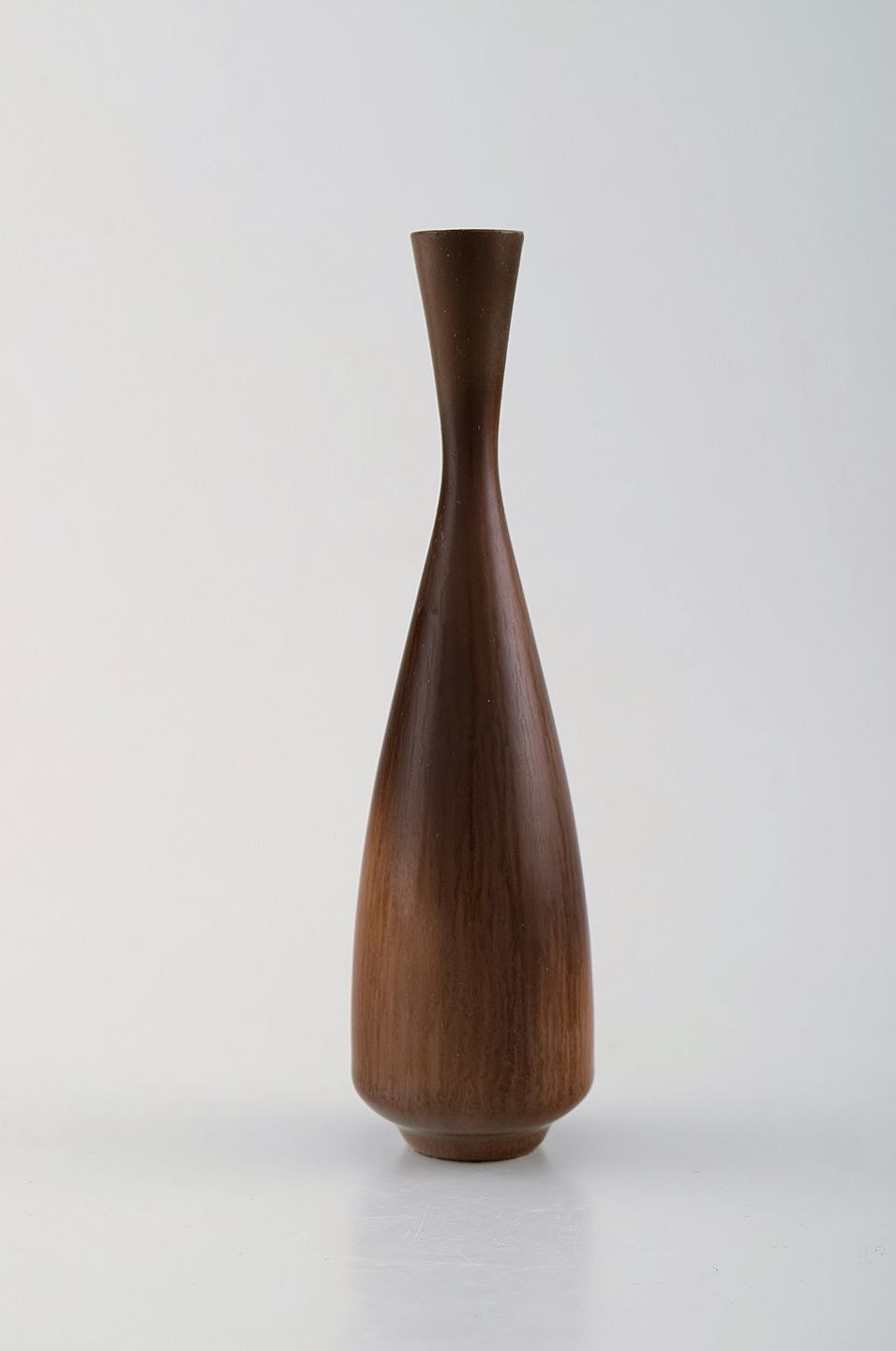 Berndt Friberg Studio keramikvase. Moderne svensk design. Unika, håndlavet. 1956. Stemplet. Fantastisk glasur i brune toner. Perfekt stand. 1. sortering. Måler: 17,5 cm. x 5 cm.