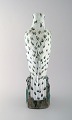 Islandsk falk af keramik dekoreret med grå, grønne, brune og hvid glasur.