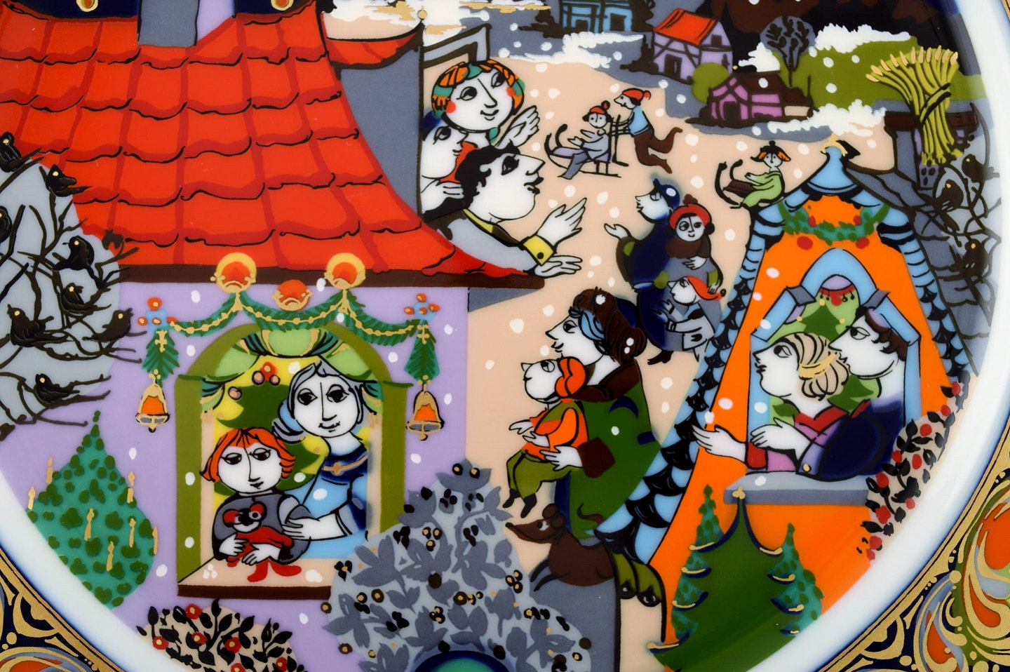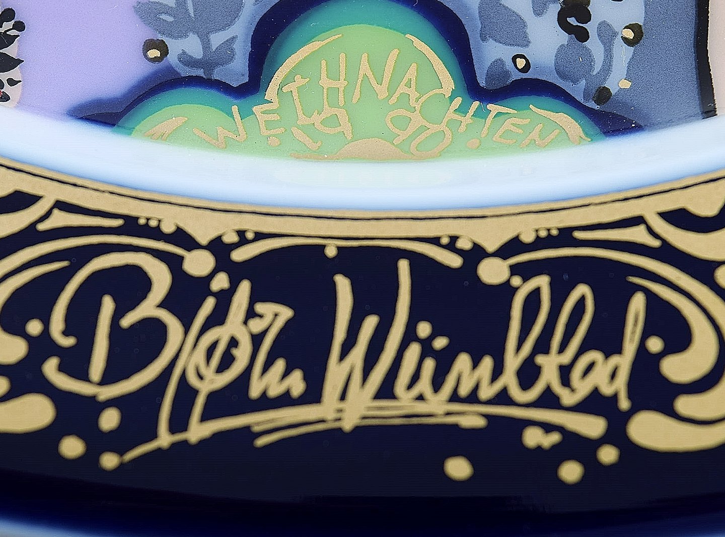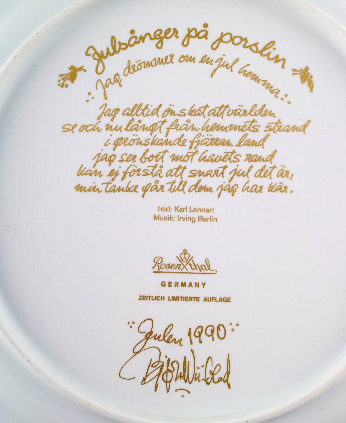 Bjørn Wiinblad for Rosenthal. Juleplatte i porcelæn fra 1990. I flot stand. Signeret. Diameter: 27 cm. begrænset oplag.
