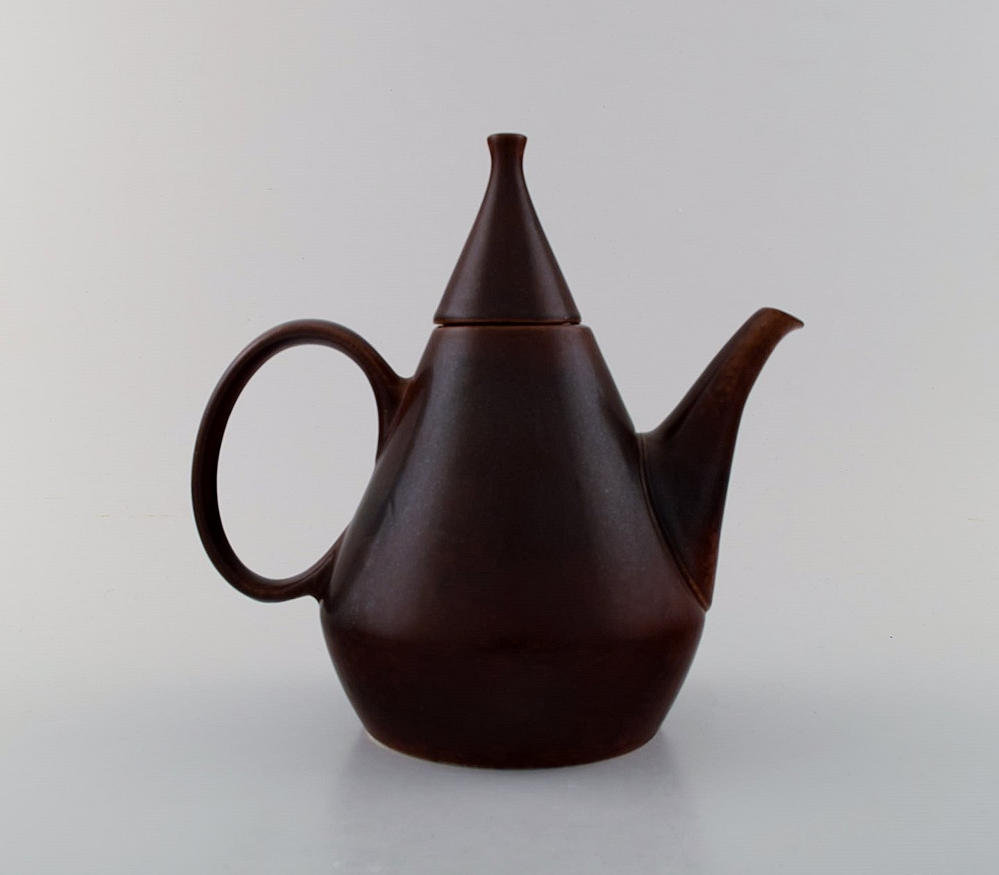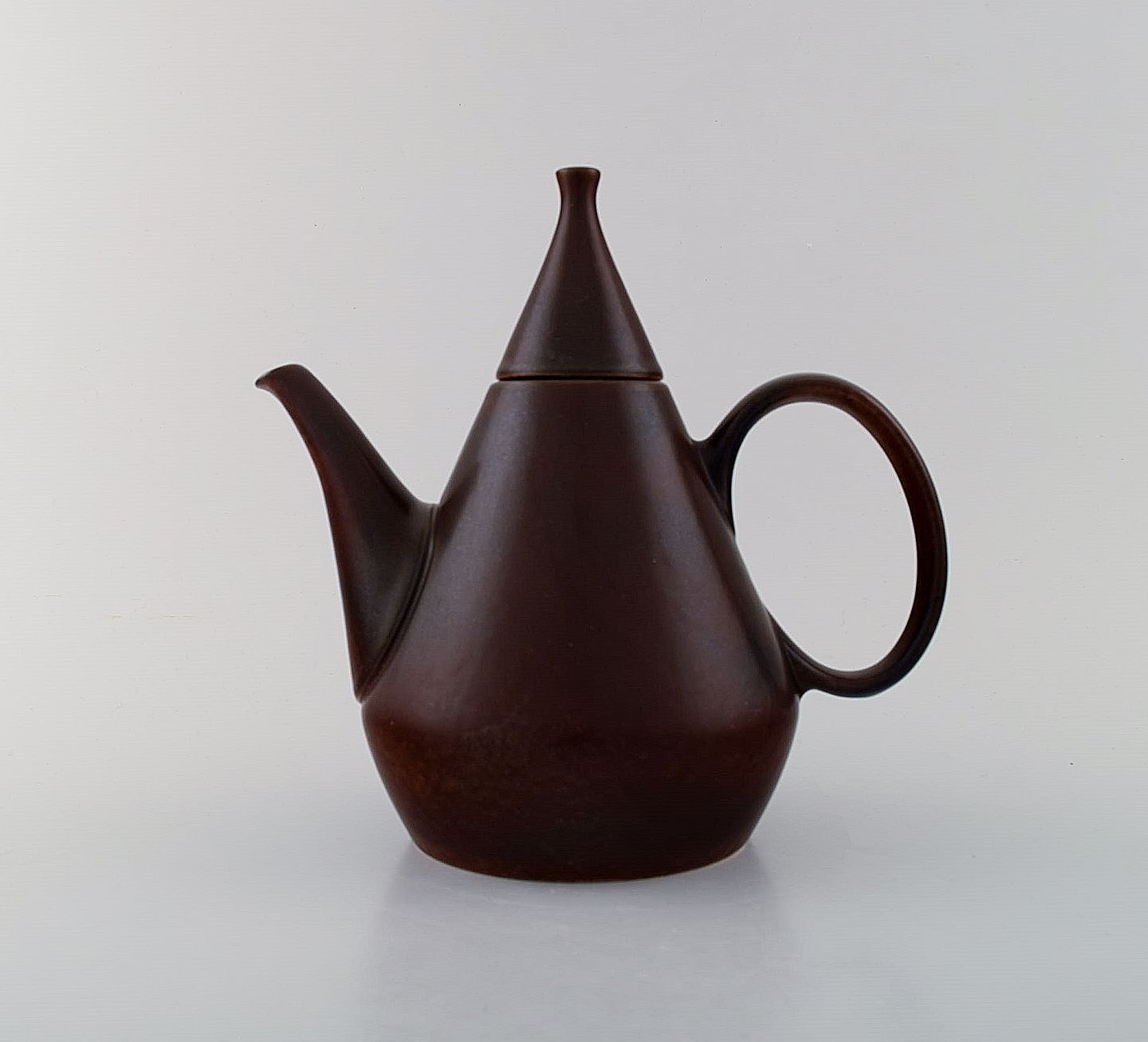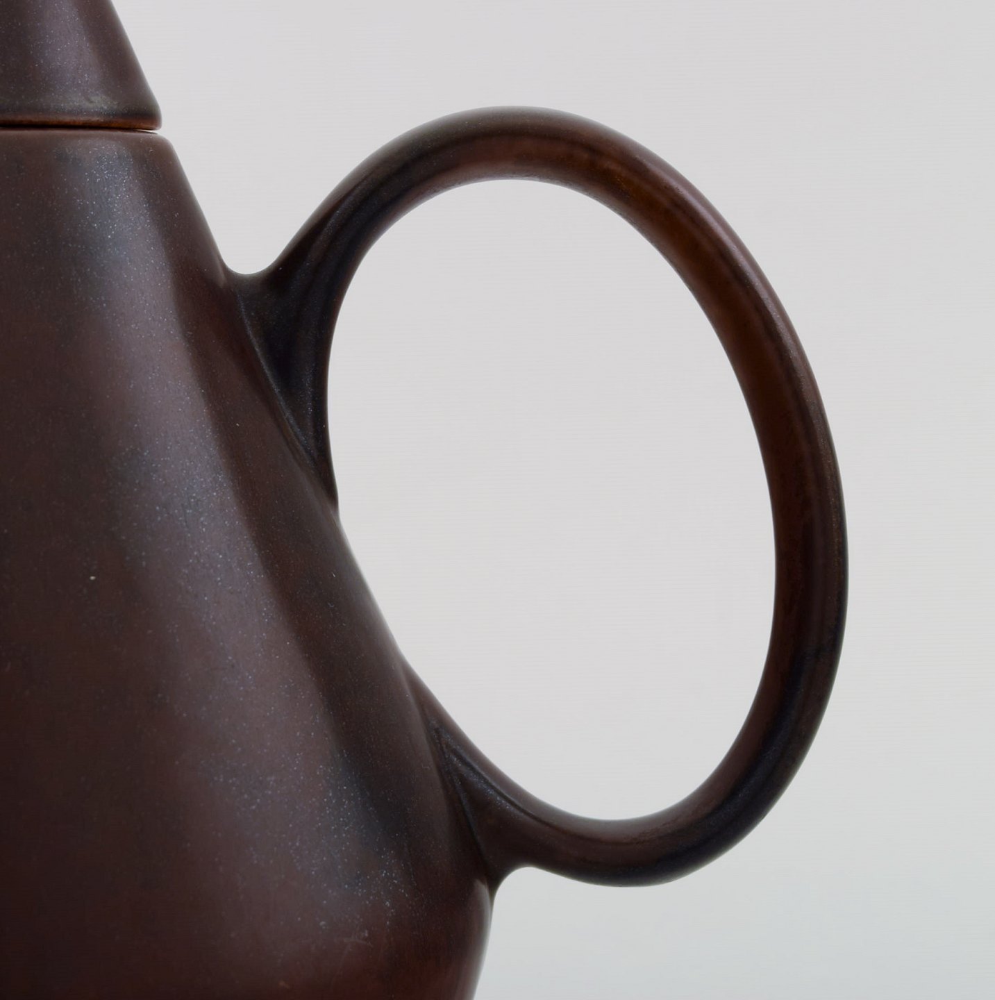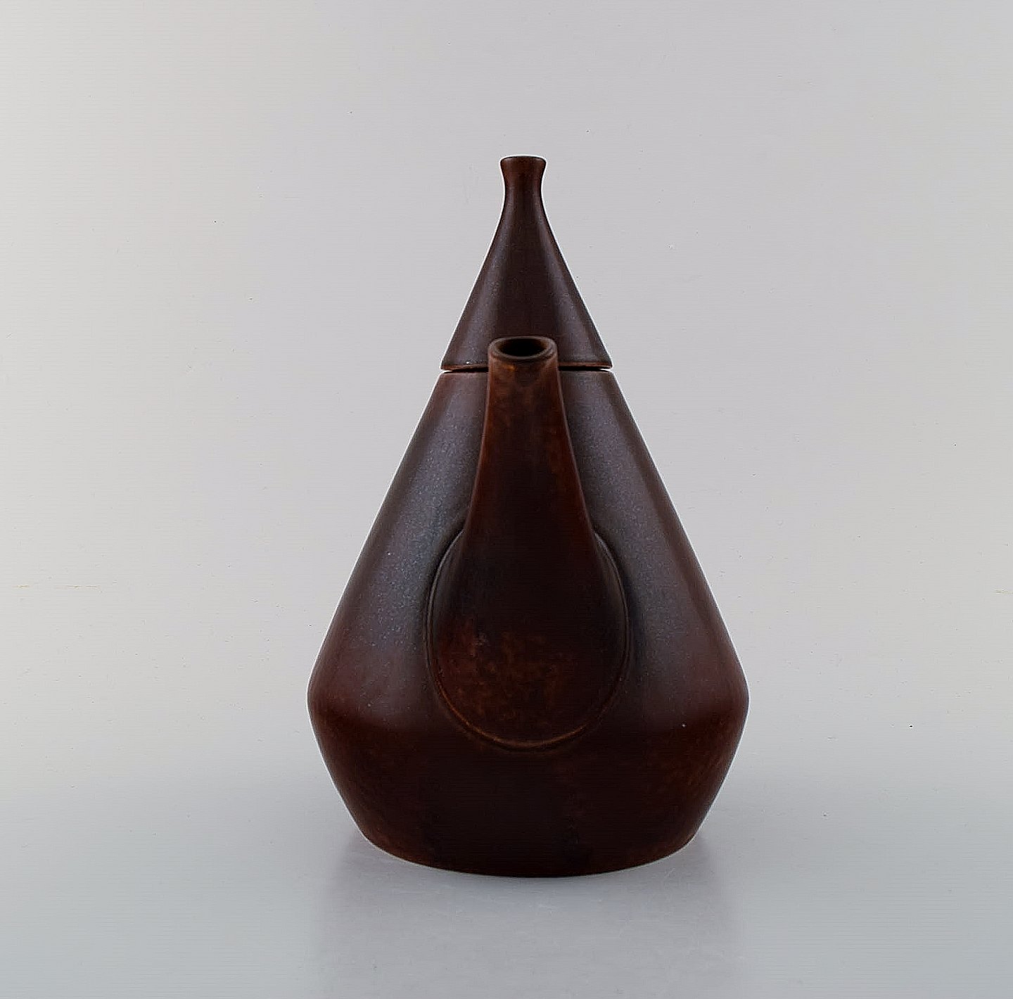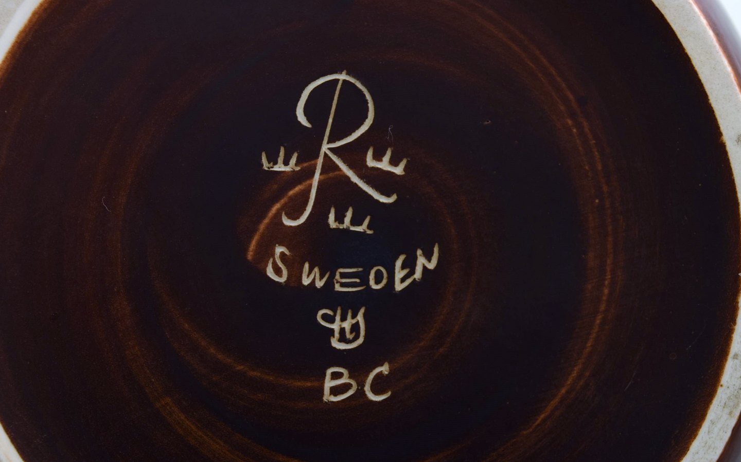 Carl Harry Stålhane for Rörstrand. Modernistisk tekande med låg i glaseret stentøj. Smuk glasur i brune nuancer. I flot stand. Måler: 22 x 22 cm. Stemplet.