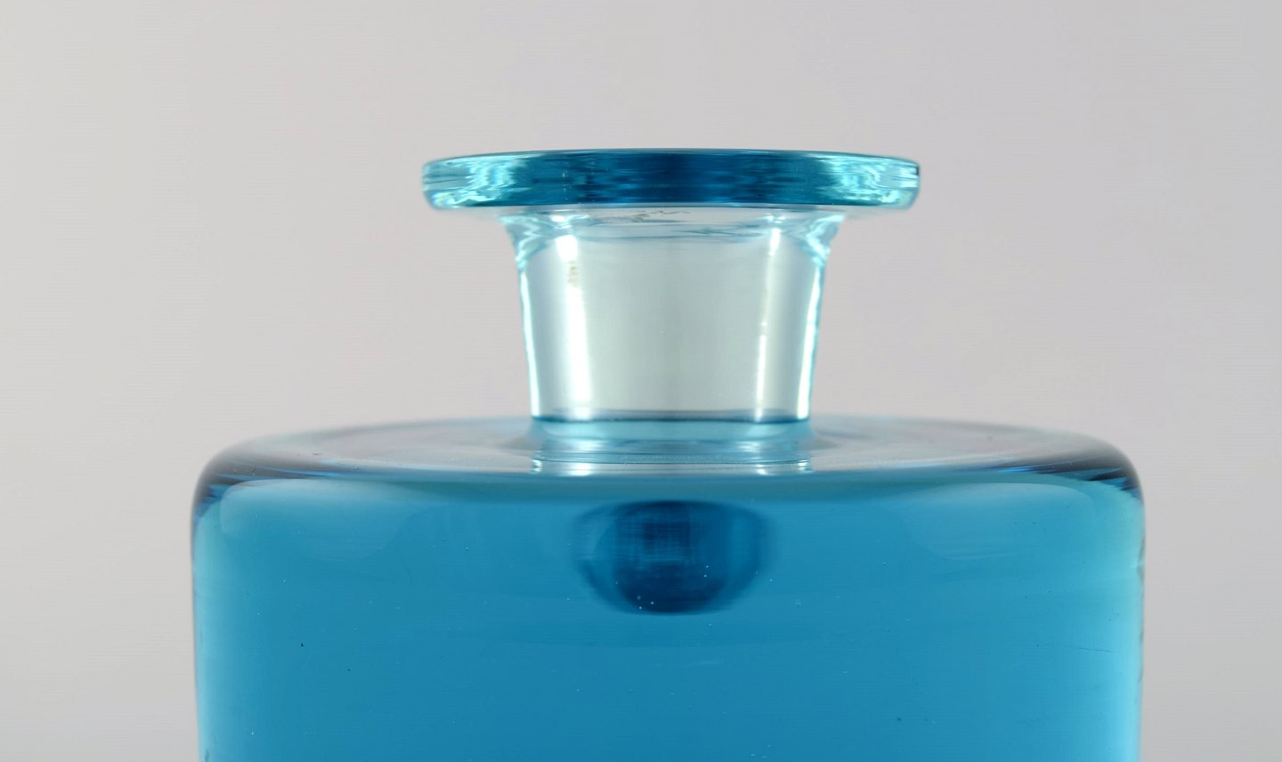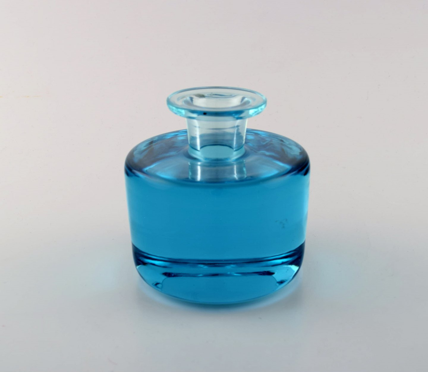 Per Lütken for Holmegaard. Vase i turkis kunstglas. Smuk vase af hřj kvalitet. Mĺler: 10,5 x 9,5 cm. Signeret. I perfekt stand.