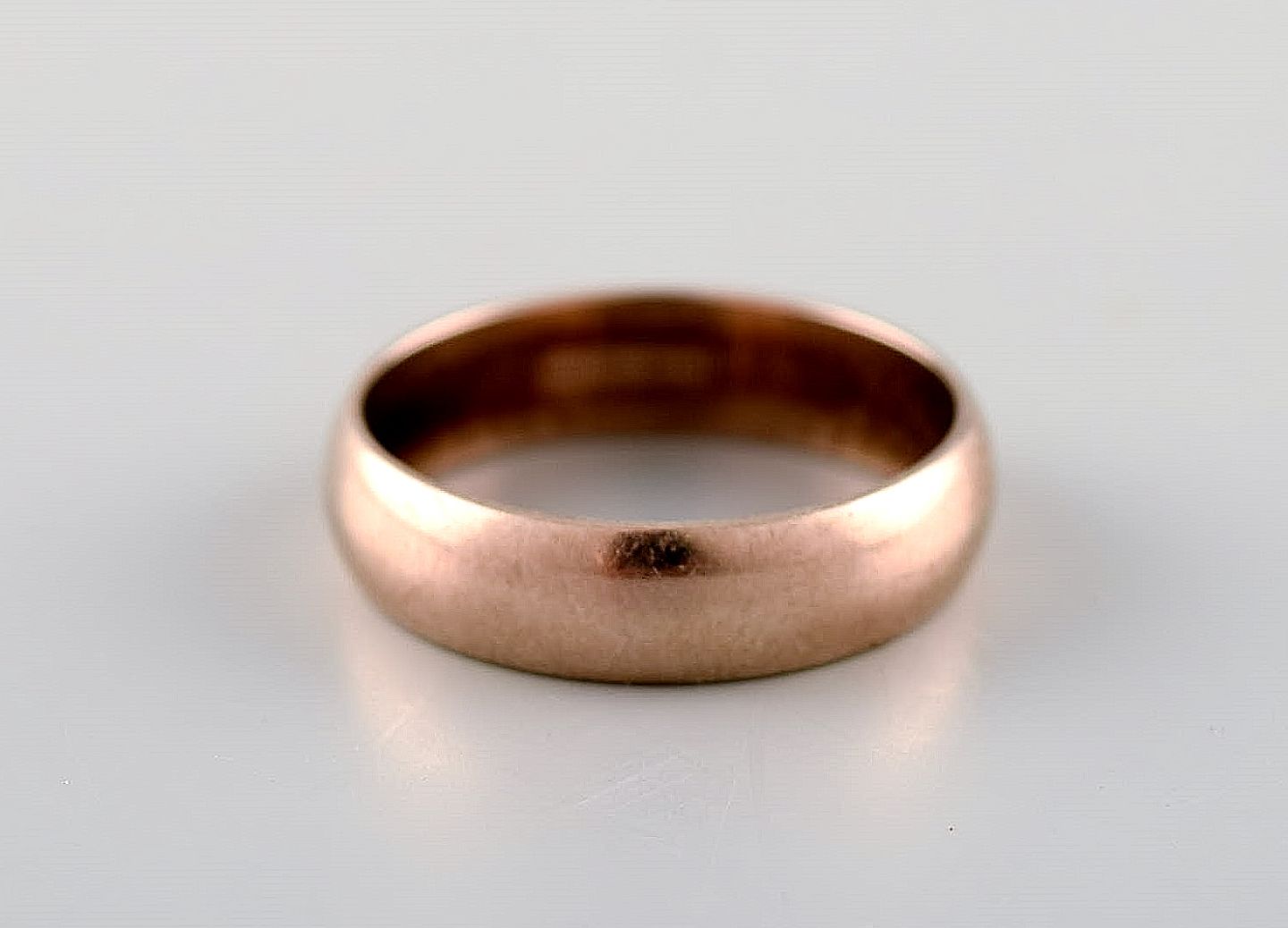 Dansk guldsmed. Klassisk guldring i stilrent design. Ca. 1950'erne. I flot stand. Stemplet. 8 karat. Måler: 18 mm. I de fleste tilfælde kan vi mod et gebyr (kr. 300) pr ring, få ændret størrelsen.