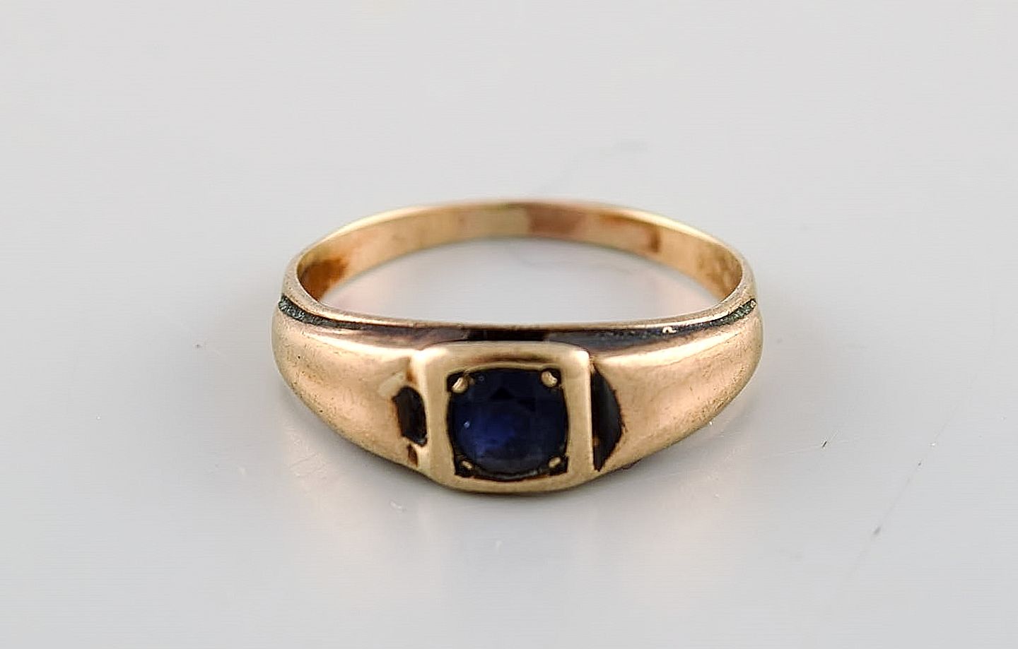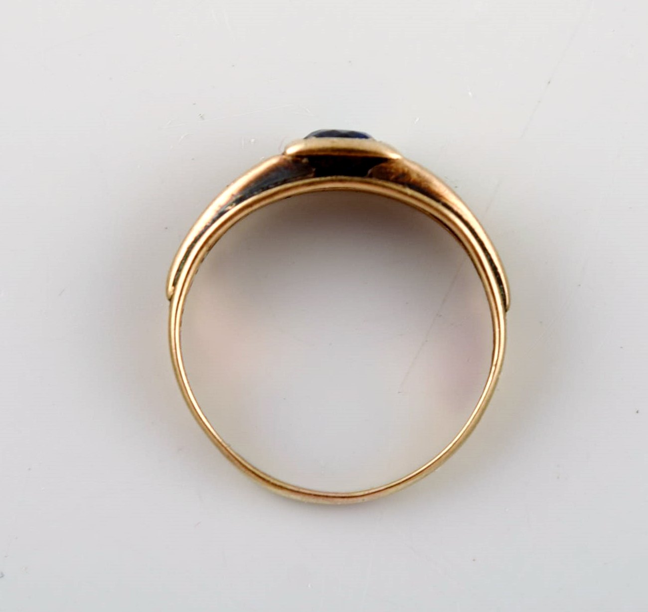 Dansk guldsmed. Art deco guldring med smuk blålig halvædelsten. 1930'erne.