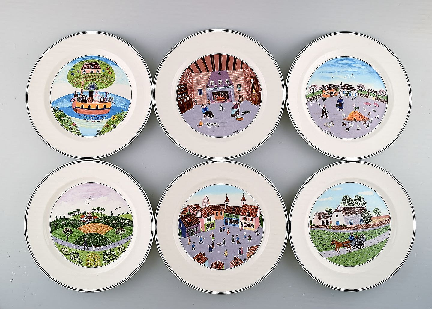 Villeroy & Boch Naif middagsservice i porcelæn. Et sæt på 6 middagstallerkener /dækketallerkener dekoreret med naivistiske motiver.