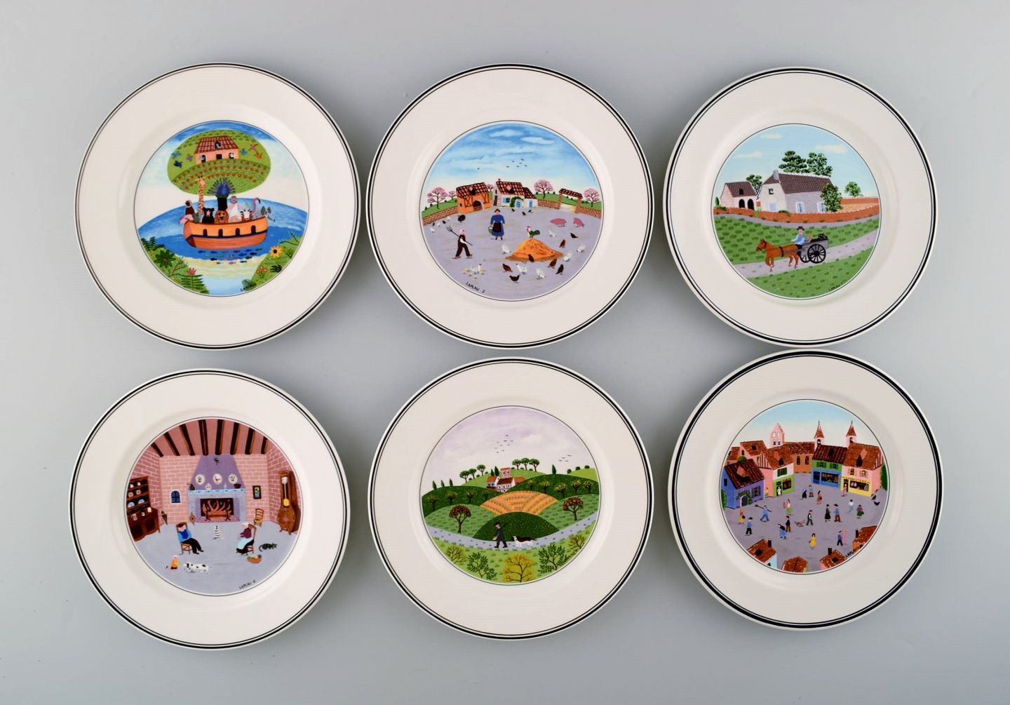 Villeroy & Boch Naif middagsservice i porcelæn. Et sæt på 6 frokosttallerkener dekoreret med naivistiske motiver.
