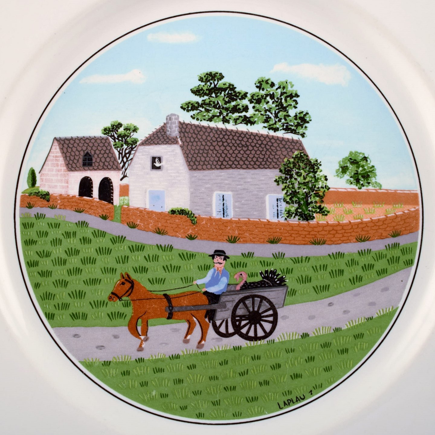 Designet af Gérard Laplau. Motiver af familier, landsbyer og bibelske scener i naivistisk stil.