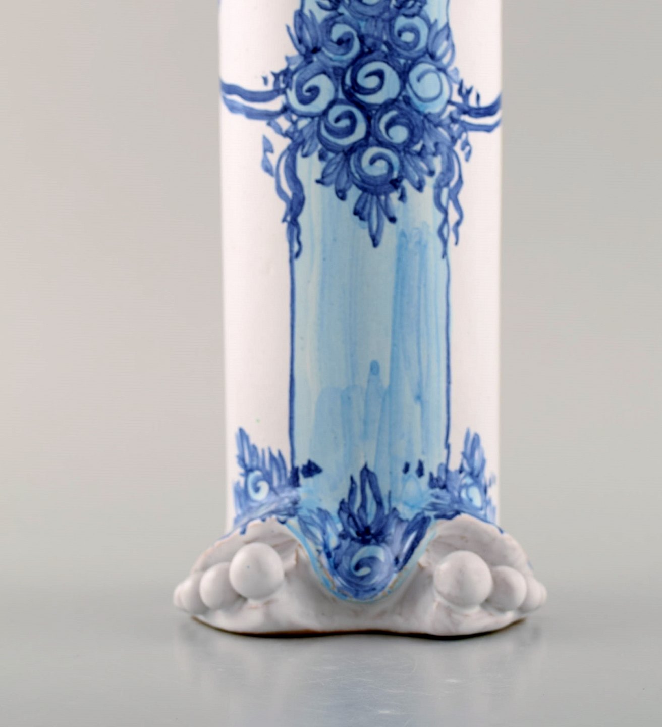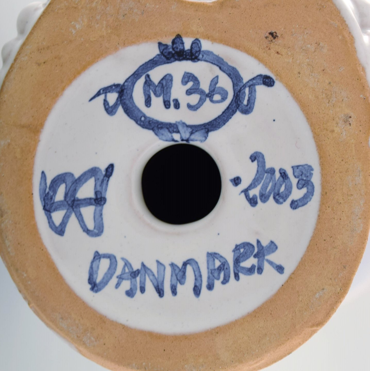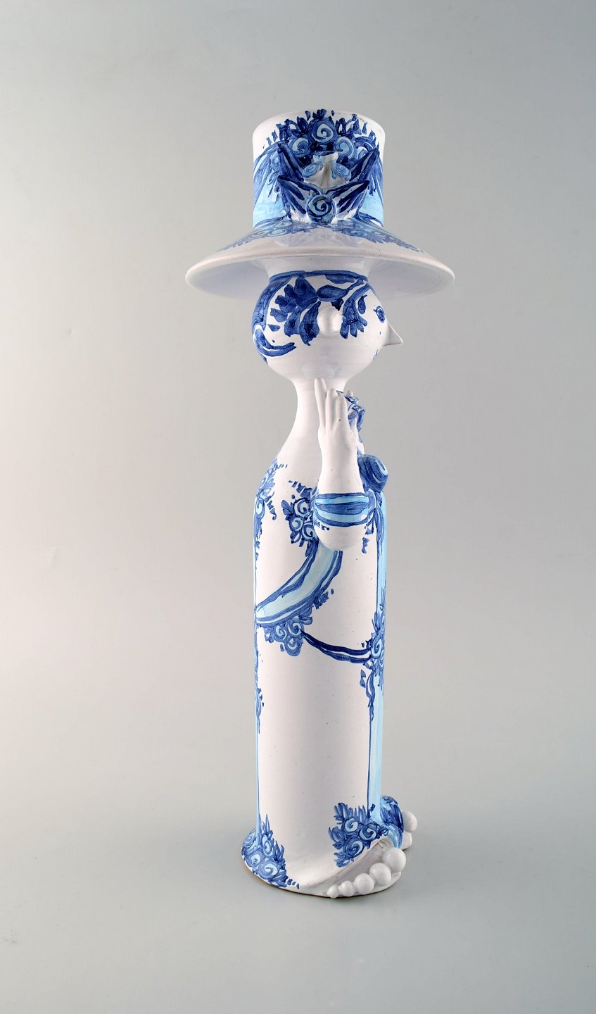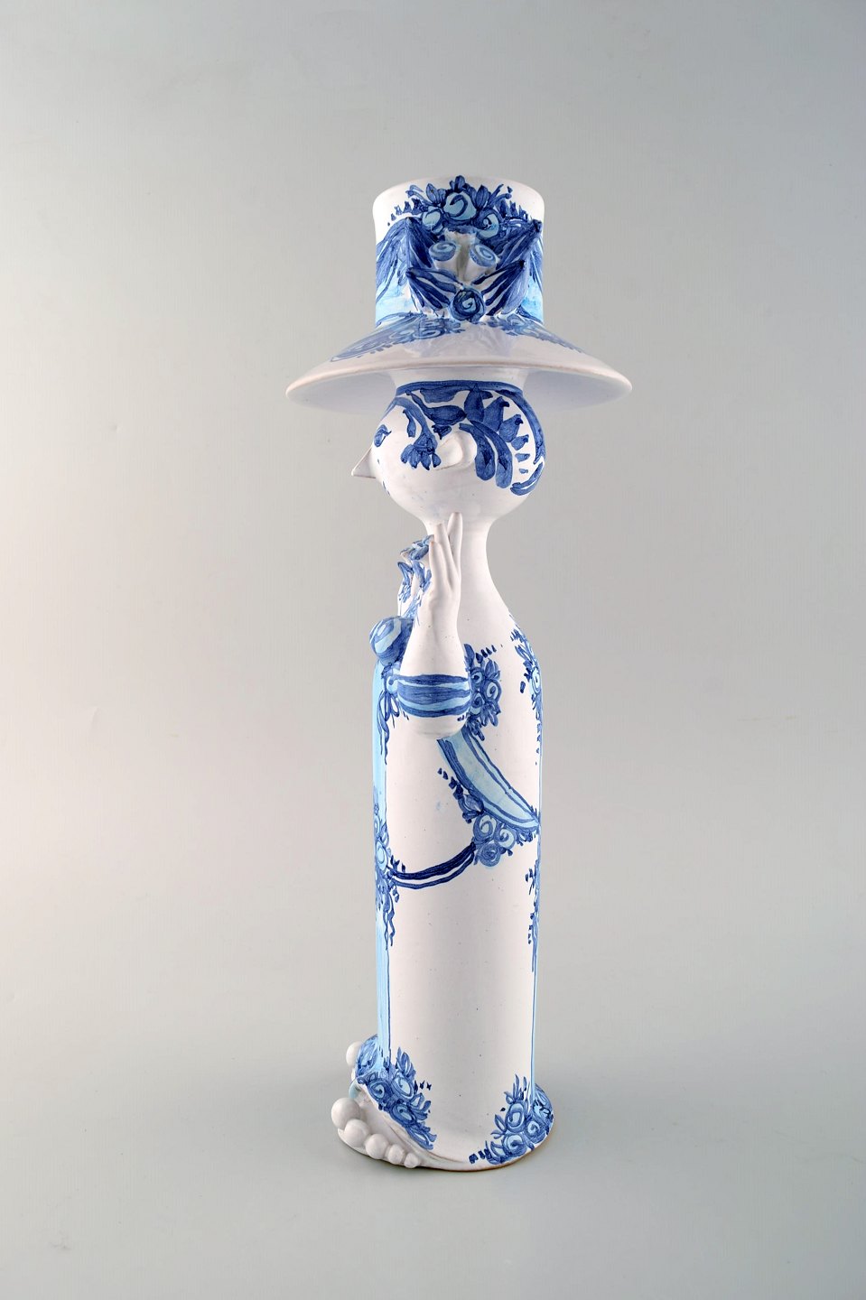 Bjørn Wiinblad keramik, blå dame med to fugle. Dekorationsnummer M36. Fra 2003. Højde 39 cm. Diameter 15 cm. I perfekt stand.
