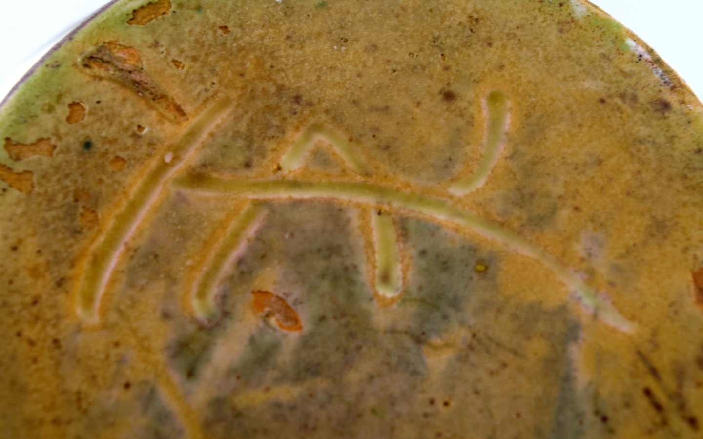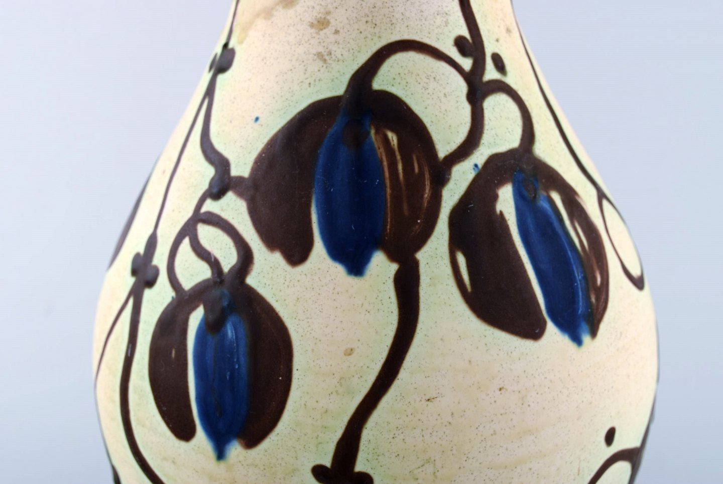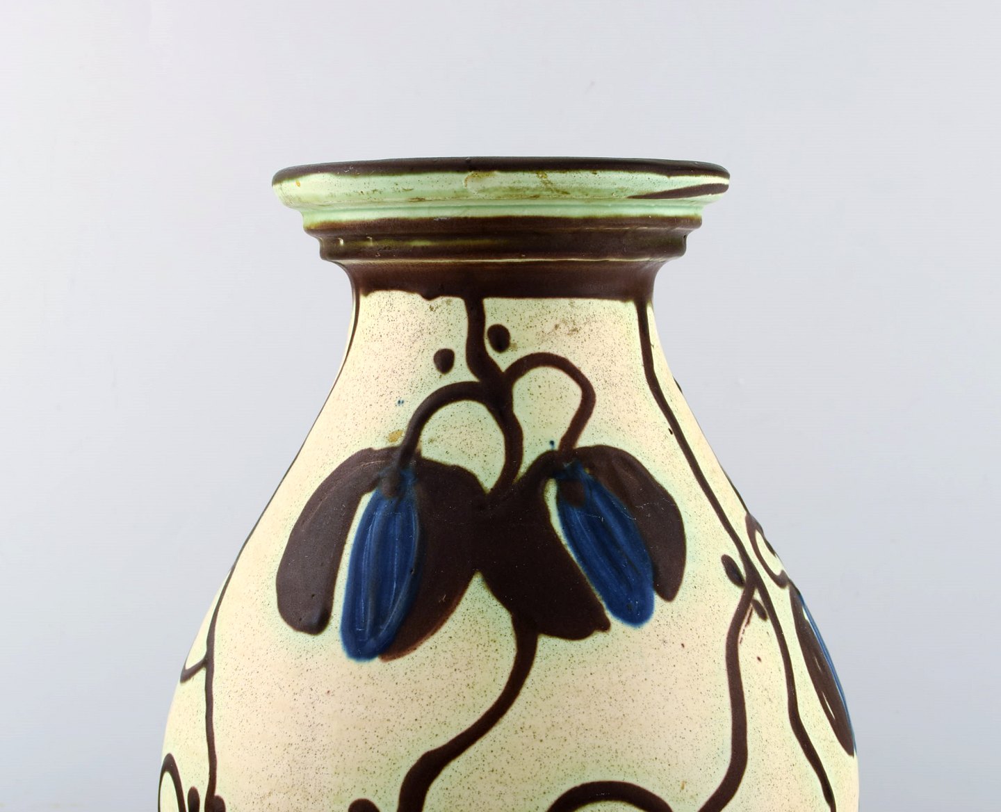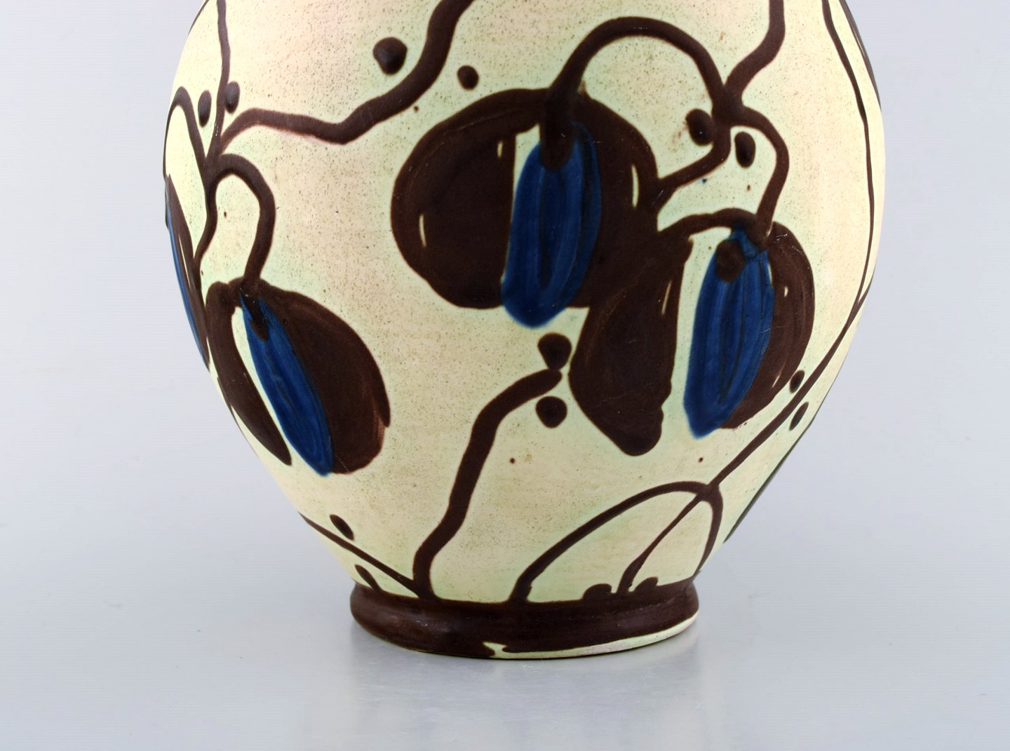Kähler, HAK, glaseret stentøjsvase i moderne design. 1930/40´erne. Kohornsteknik. Blå og brune blomster på lys baggrund. Stemplet. Måler : 31 x 21 cm. I flot stand.