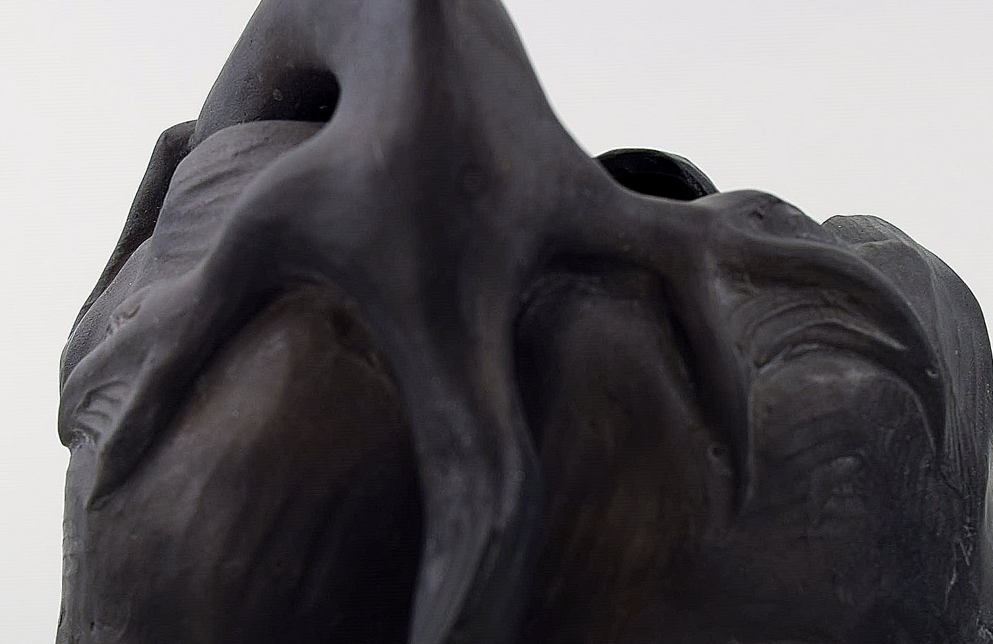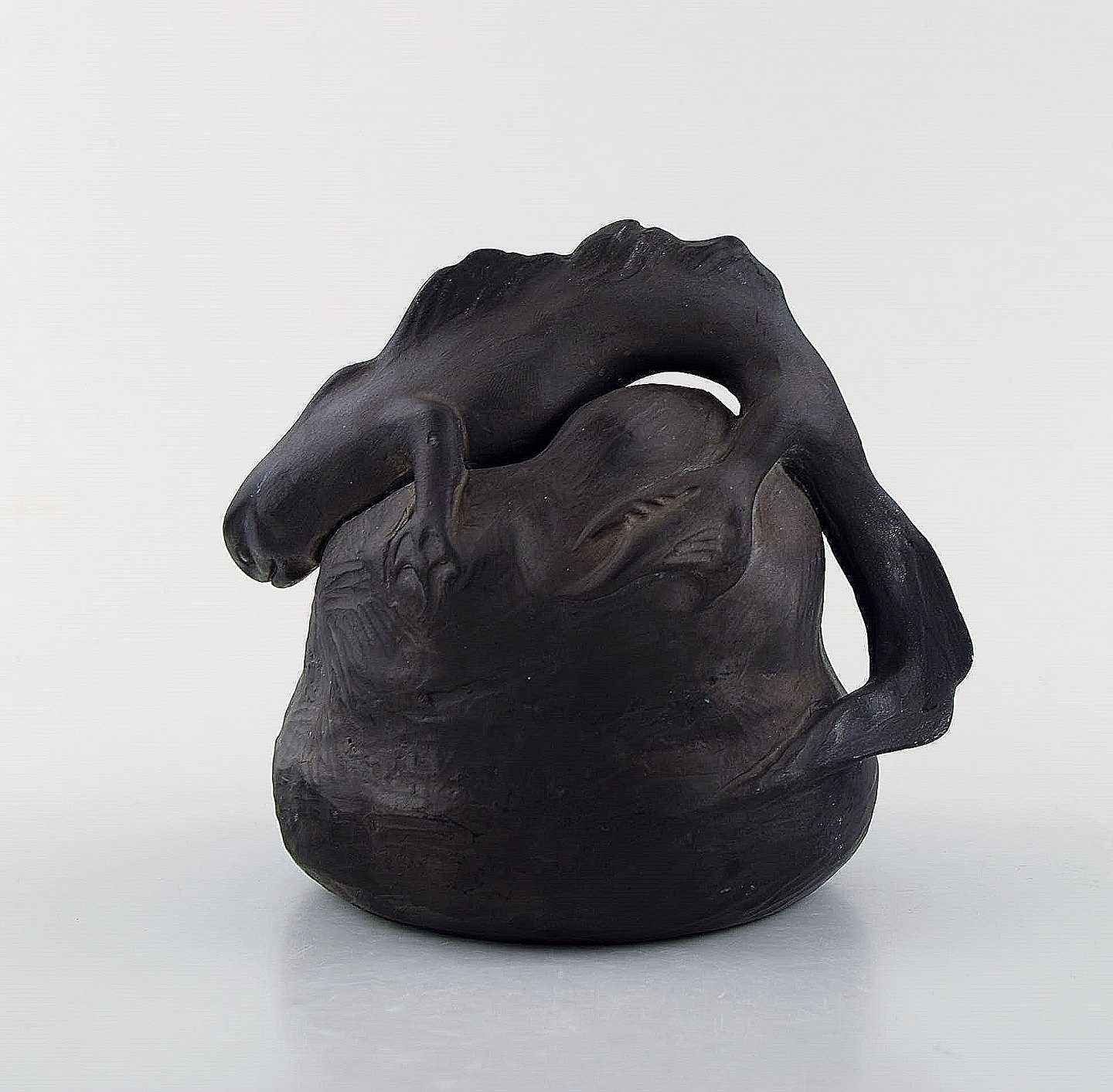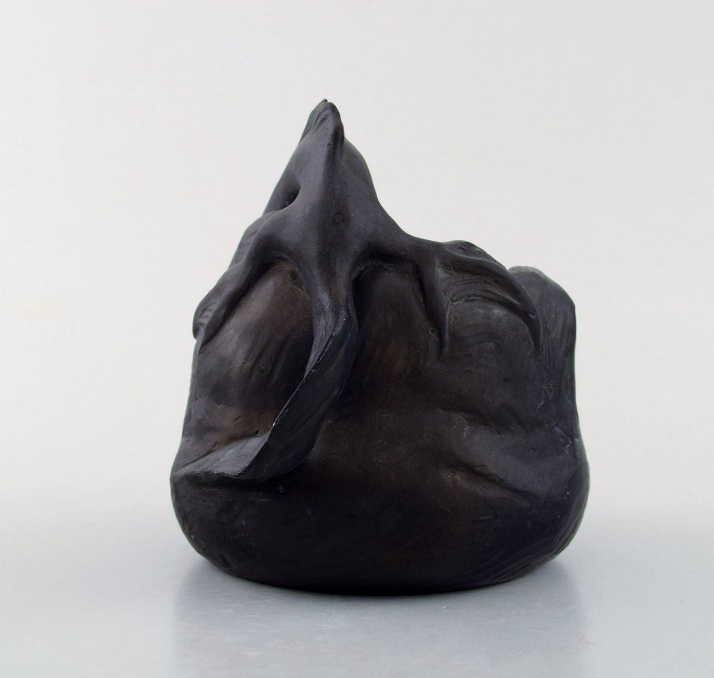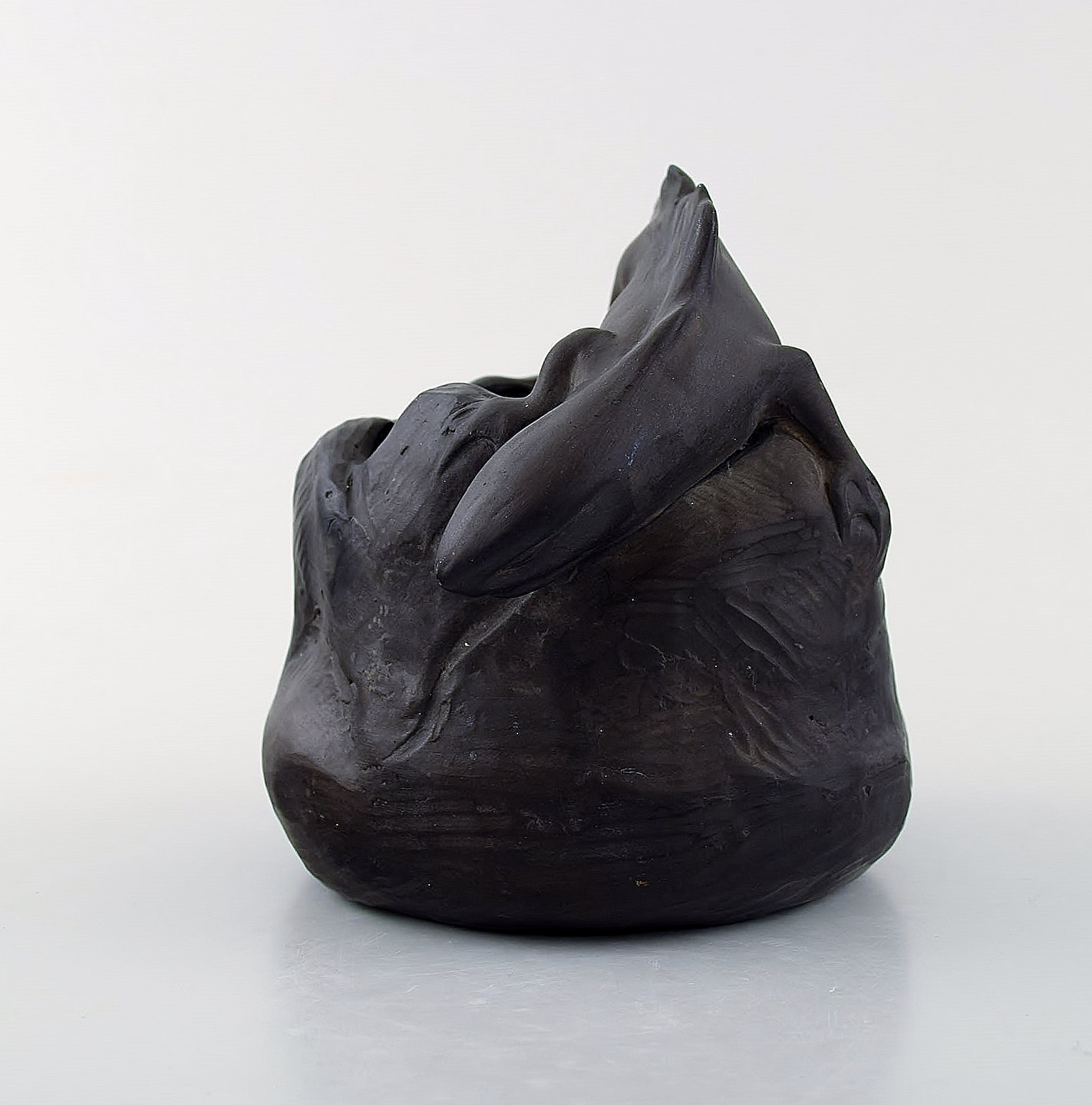 L. Hjorth, Bornholm. Art nouveau terracotta skål med salamander. Modelnummer 760. Ca. 1910. Måler: 14 x 12,5 cm. Stemplet. I perfekt stand.