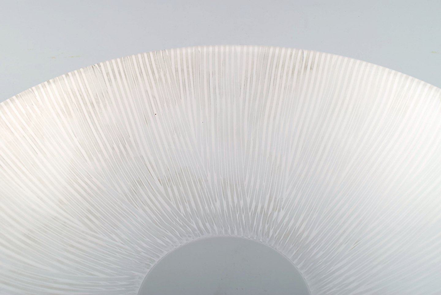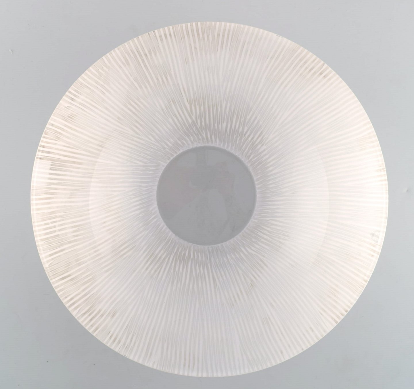 Ingegerd Råman for Orrefors. Stor "Savann" skål i mælkehvidt kunstglas. Sent 1900-tallet. I flot stand. Mærkat. Måler: 35,5 x 12 cm.