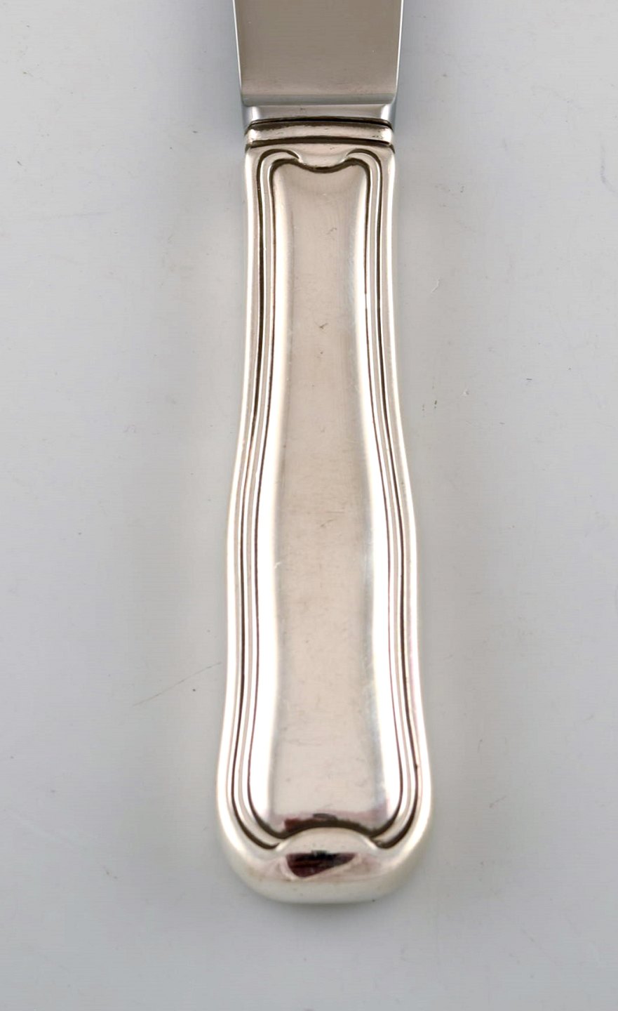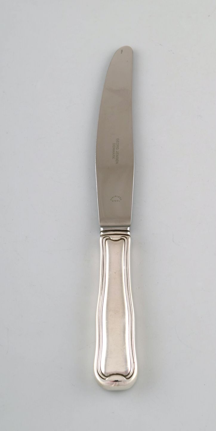 Georg Jensen Dobbeltriflet middagskniv i sterlingsølv. 6 stk. på lager. I flot stand. Måler: 22,5 cm. Stemplet. Stort udvalg af Georg Jensen Dobbeltriflet på lager.