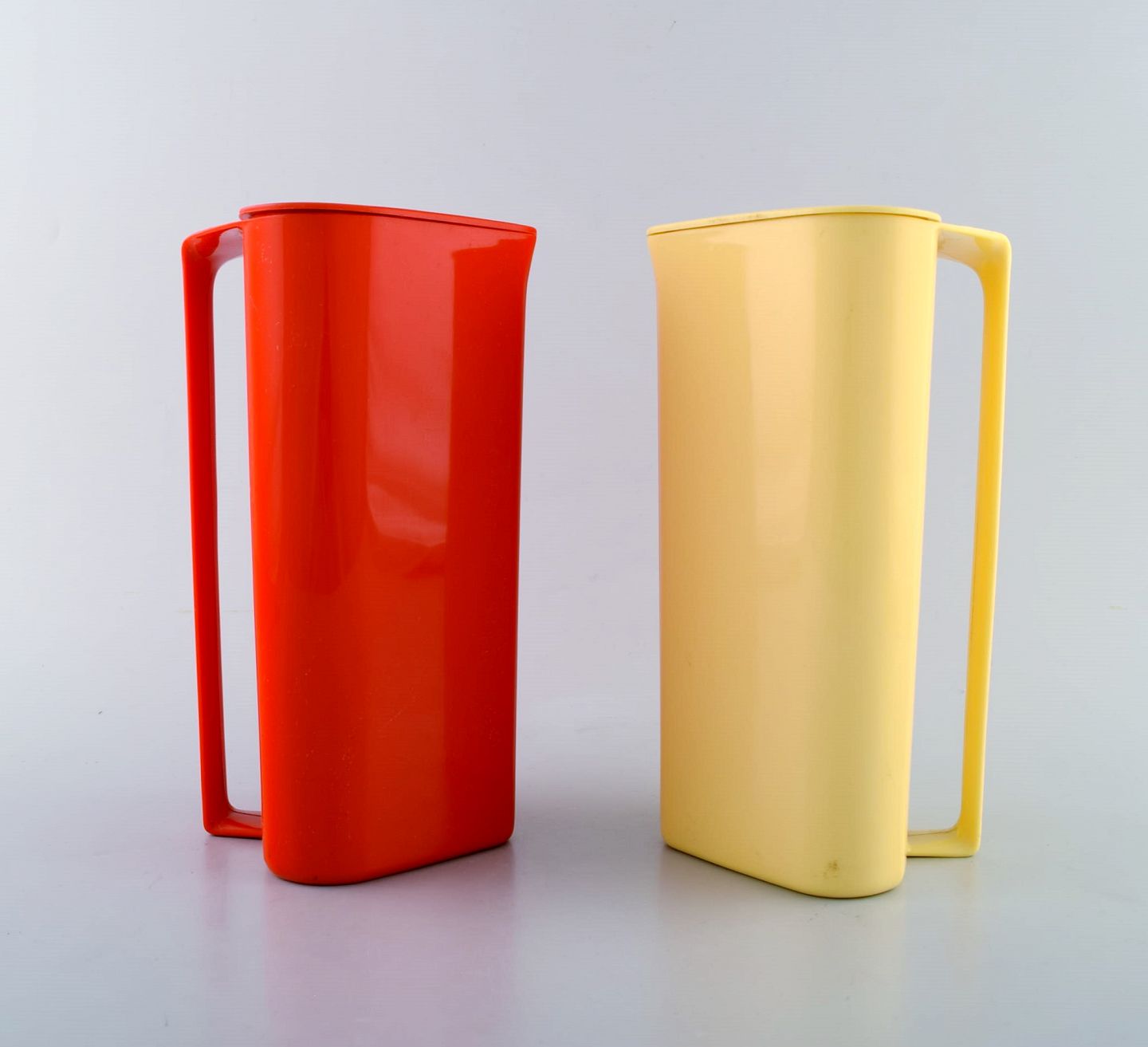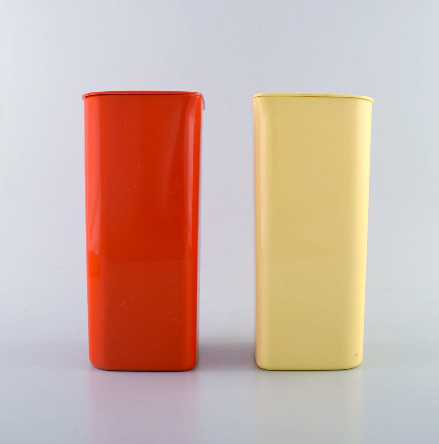 Sigvard Bernadotte for Husqvarna. Et par modernistiske kander i stilrent design. Rød og creme farvet plast. 1970'erne. I flot stand. Stemplet. Måler: 21 x 12 cm.